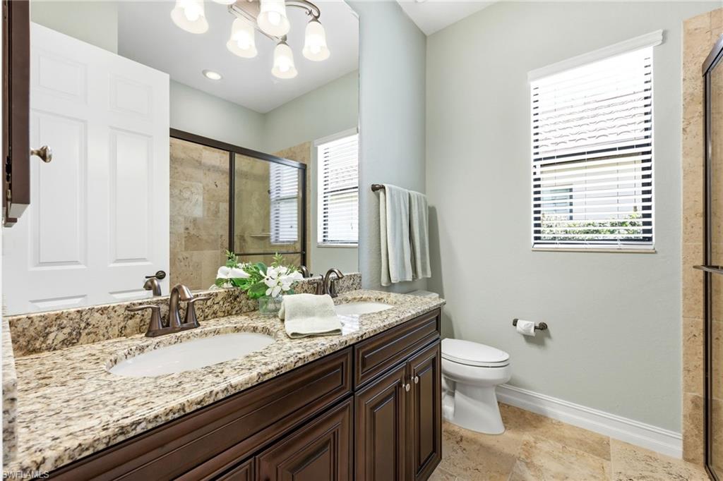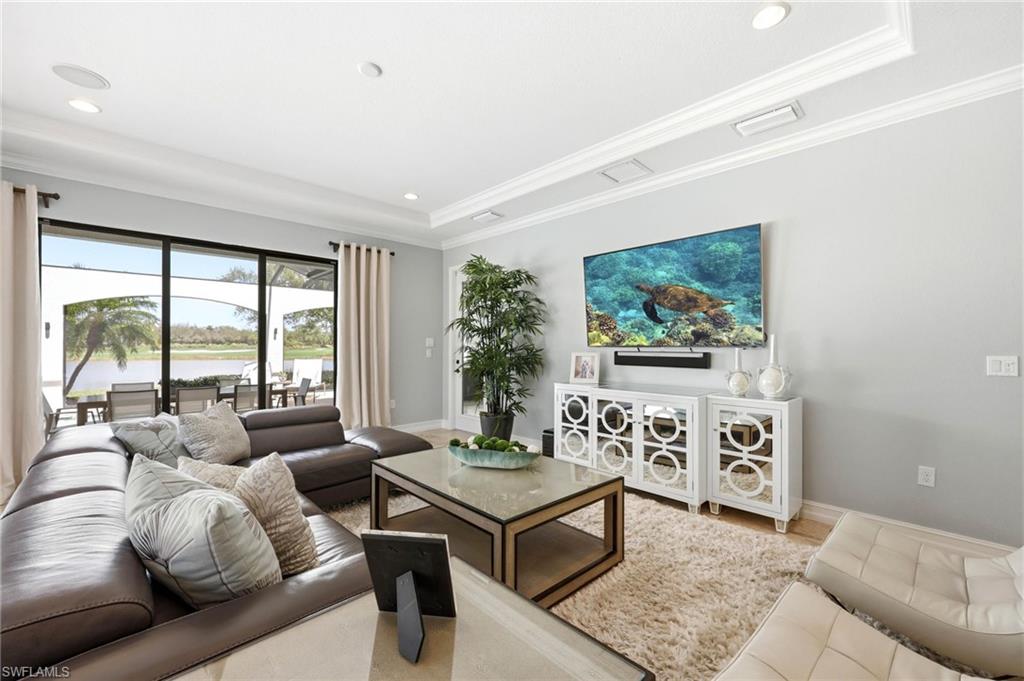 Classic Mediterranean architecture meets modern Florida coastal design in this beautifully updated home located on Runaway Bay in the highly desirable Fiddler’s Creek community. Enjoy stunning long water and golf course views from the home’s expansive lanai, perfectly positioned with a northeast rear exposure offering soft morning light and beautiful evening sky colors. This light-filled residence features over 3,600 square feet of living space with 4 bedrooms + den and 4 full baths, thoughtfully designed for both everyday living and entertaining. The newly remodeled chef’s kitchen showcases a Wolf range, high-end stainless steel appliances, custom cabinetry with oversized drawers, reverse osmosis water filtration, under-cabinet lighting, and striking quartzite countertops that continue seamlessly into the backsplash for a clean, sophisticated look. Step outside to the expanded resort-style lanai featuring salt water pool with newer heater and pump featuring water falls and sun shelf, spa, and a fully equipped outdoor kitchen with gas grill, dual refrigerators, bar seating, and custom cabinetry—creating exceptional outdoor entertaining space. Additional features include mosquito misting system, hurricane shutters and impact windows and doors. A rare second-floor retreat adds incredible flexibility with a wood staircase leading to a private, spacious living area or 4th bedroom featuring a balcony with water and golf views, full bath, and wet bar with mini refrigerator. The primary suite enjoys peaceful water views and includes dual closets, a large walk-in shower, soaking tub, and dual vanities. Additional highlights include designer lighting, custom window coverings, surround sound, central vacuum, tray ceilings, extensive moldings and trim throughout and new HVAC system (2024). Even the three-car garage is immaculate, complete with custom storage, sink, insulated garage doors, and AC mini split. A perfect blend of timeless architecture, modern updates, and spectacular views in one of Naples’ most sought-after communities. Fiddler's Creek, is an award-winning private community that offers luxury residences and resort-style amenities amidst a beautiful tropical backdrop. The 54,000 sq ft Club & Spa features two on-site restaurants, pools, a fitness center, as well as tennis, pickleball, and bocce courts. Optional memberships for golf, beach, and boating are also available. Conveniently located just minutes from the beaches of Marco Island, 5th Avenue, and a myriad of shopping and dining choices.