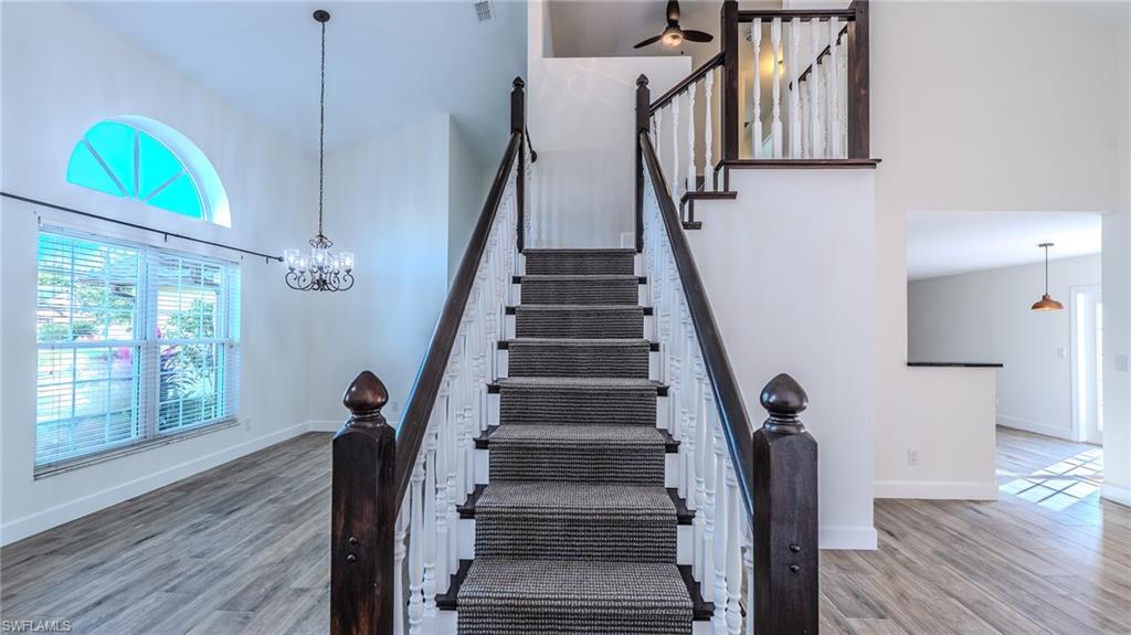 NEW ROOF 2023, NEW PLUMBING 2026, POOL CAGE 2023, HURRICANE WINDOWS and SHUTTERS 2020, KITCHEN REMODELED 2020. Welcome to this exceptional two-story pool home located in the highly desirable community of Fountain Lakes in the heart of Estero. Perfectly situated on an oversized lot, this unique residence offers approximately 2,300 square feet of living space and features a one-of-a-kind floor plan that is truly unlike any other home in the neighborhood. From the moment you enter, you are greeted by soaring volume ceilings and an abundance of natural light that create a bright, open, and inviting atmosphere. The spacious layout offers a comfortable flow for both everyday living and entertaining, while the two-story design provides a wonderful sense of openness and architectural character rarely found in this community. The home features a private pool area ideal for relaxing, entertaining guests, or enjoying the Florida lifestyle year-round. The oversized lot provides extra space and privacy, creating a peaceful outdoor setting with plenty of room to enjoy the sunshine. One of the most appealing aspects of this property is its incredible location. Fountain Lakes is centrally located in Estero just seconds from Coconut Point, offering convenient access to shopping, dining, entertainment, and everyday conveniences. The community also provides easy access to Southwest Florida International Airport, beautiful Gulf beaches, and major roadways. Fountain Lakes is known for its outstanding amenities and exceptional value with very low HOA fees. Residents enjoy access to a community golf course, clubhouse, swimming pool, fitness center, tennis courts, and additional recreational facilities. The neighborhood also offers boat and RV storage, a rare and valuable convenience. Importantly, this property experienced no water damage from any hurricane, offering added peace of mind for future homeowners. Whether you are searching for a primary residence, seasonal getaway, or investment property, this home presents a fantastic opportunity to own a spacious pool home with a distinctive floor plan in one of Estero’s most conveniently located communities. Homes with this much character, space, and location rarely become available in Fountain Lakes.