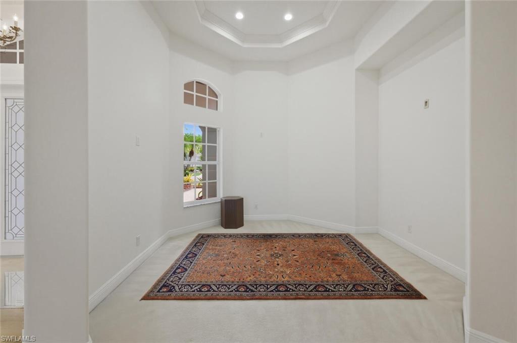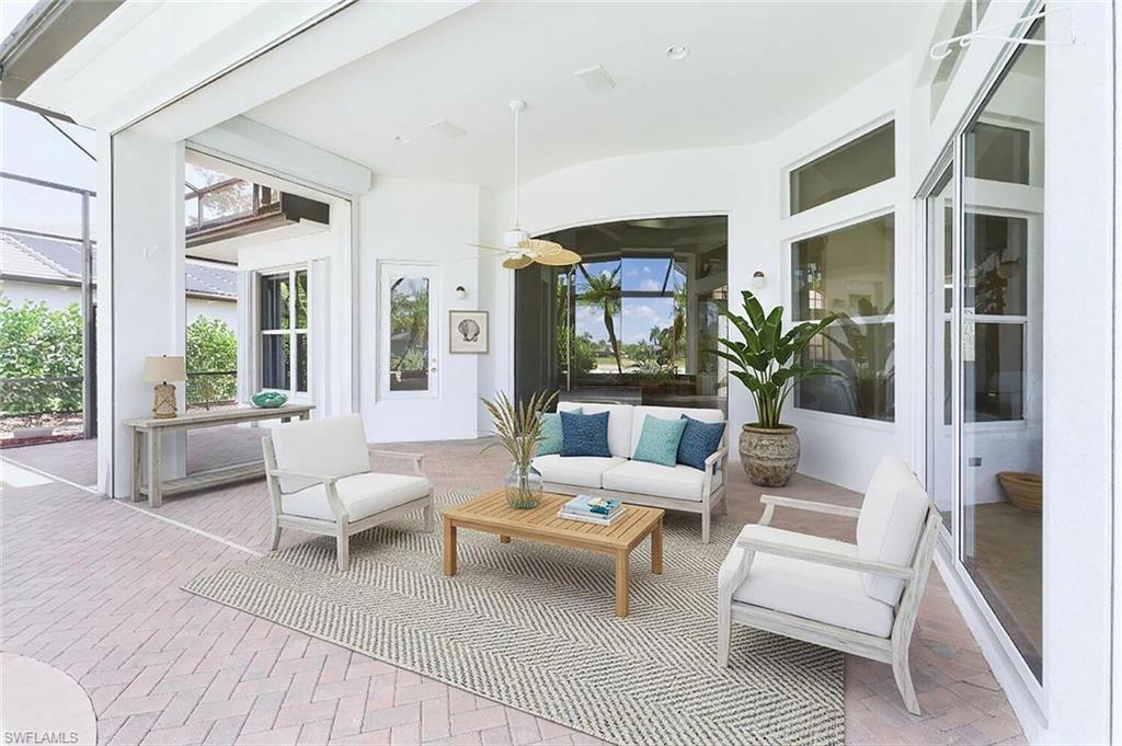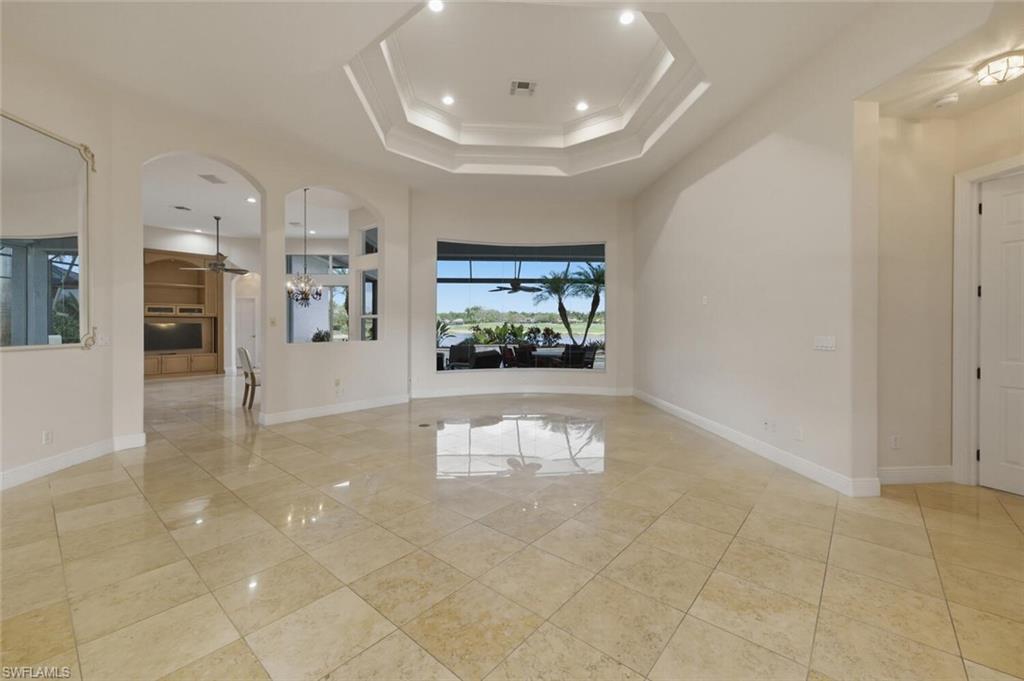 One or more photo(s) has been virtually staged, AI generated or rendered. Experience exceptional living in this magnificent estate home in the award-winning bundled-golf community of Naples Lakes Country Club. Perfectly positioned to capture breathtaking water and golf course views, this elegant residence offers 3,136 square feet under air with a spacious open floor plan designed for both comfortable living and effortless entertaining. This beautifully appointed home features three bedrooms, three and one-half baths, a private study, formal dining room, and an inviting family room. Luxurious finishes are found throughout, including polished marble flooring, soaring ceilings, and detailed tray ceilings that enhance the light-filled interiors. The generous primary suite (20’ x 16’) offers a private retreat with dual vanities, walk-in California closets, and a spacious bath designed for comfort and style. Guests are welcomed with their own luxury en-suite bedroom featuring a walk-in closet and private bath. A standout feature of the home is the custom-designed study, complete with a full wall library and 12-foot ceilings, creating an impressive and functional workspace. Outdoor living is equally impressive. The extended lanai features a freeform pool and spa, surrounded by lush landscaping and expansive seating areas—perfect for relaxing while enjoying the tranquil lake and golf course views and desirable northern exposure. Additional highlights include a three-car garage with extensive storage and shelving, generous entertaining spaces, and a seamless indoor-outdoor lifestyle. Residents of Naples Lakes enjoy bundled golf on the Arnold Palmer Signature Course, along with tennis, pickleball, fitness center, dining, and vibrant social amenities—all just minutes from the beaches, shopping, and dining that make Naples world.