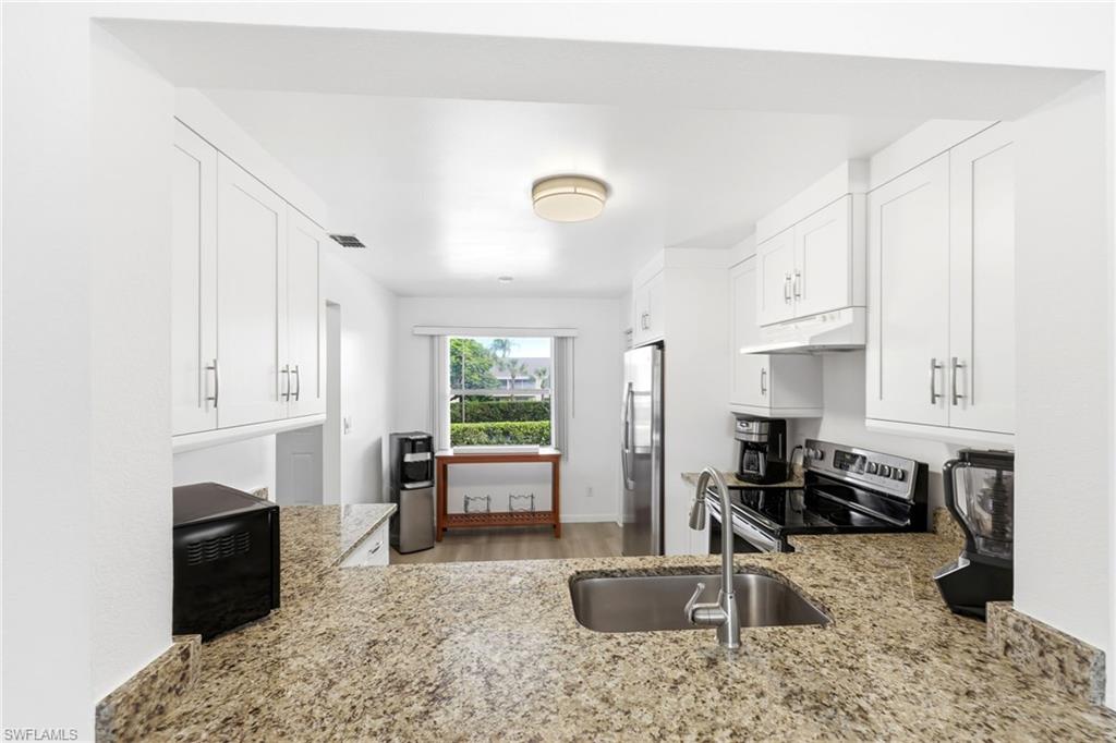 If you’ve been trying to find something in Naples that feels clean, updated, and actually easy to move into… this is one to see. This 2-bedroom, 2-bath second-floor condo in Canterbury Village at Berkshire Village is being sold turnkey, making it a great option whether you’re looking for a full-time residence or a seasonal place without the extra work. Inside, you’ll find a light, open layout with vaulted ceilings and a comfortable flow from the living and dining space out to your private screened lanai—perfect for morning coffee or winding down in the evening. The kitchen was updated in 2016 and offers granite countertops along with plenty of cabinetry and workspace. Recent improvements throughout the condo include new luxury vinyl plank flooring installed in December 2025 and fresh interior paint, giving the home a clean, updated feel the moment you walk in. The split-bedroom floor plan provides privacy, with a spacious primary suite featuring generous closet space and its own en-suite bath. There’s also a full-size in-residence laundry room—something that adds real everyday convenience. Just outside your door, you’ll enjoy beautifully maintained grounds and a community pool, making it easy to enjoy the Naples lifestyle without a lot of upkeep. The location is one of the biggest advantages here. You’re minutes to Berkshire Commons with Publix, dining, and daily essentials, have easy access to I-75, and you’re about a 15-minute drive to Downtown Naples and the beaches. If you’ve been waiting for something that feels move-in ready, well-located, and makes sense in today’s market, this is absolutely worth a look.