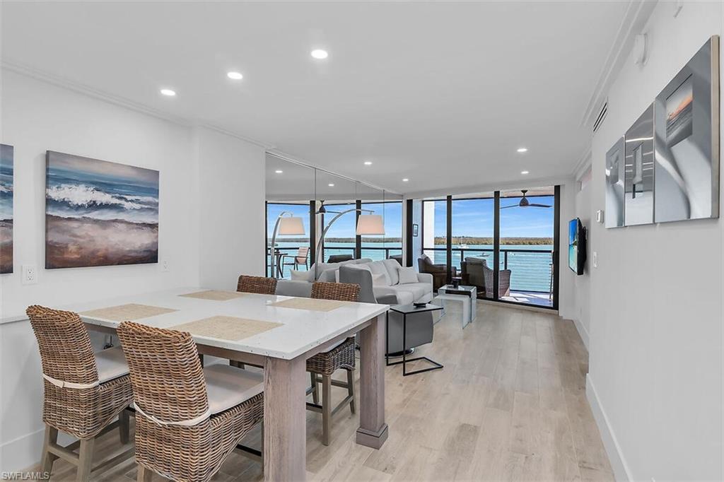 Own a Piece of Paradise! COMPLETELY RENOVATED by Seacoast Construction! IMPECCABLE Marco Island Waterfront Luxury Condominium with 2 Bedrooms and 2 full Baths! Direct Gulf Access! Seller Never Rented! Newer Samsung appliances 2019 , New AC condenser 2025, IMPACT windows and sliders. Interior electric shades and shutters.High quality "soft close" kitchen cabinetry and bath vanities, wood look tile throughout, Stackable Bosch Washer/Dryer. Insurance, water and electric INCLUDED in Maintenance fees! BRIGHT and LIGHT COASTAL style FURNISHED and PRIVATE with STUNNING VIEWS of the Marco River! There is pride of ownership seen in every inch of this condo! See the sunrise each morning! The Riverside Club has some of Marco Island's most magnificent views! Relax at one of two waterfront pools and spas as you take in the Gulf breezes. Enjoy a cocktail, or read a book after a day at the beach! Take a stroll over Marco's famous Judge Jolly Bridge! Riverside is a Resort-style community many amenities including 2 pools, spas, boat slips available for owners to lease at $400.00 annually! No waiting list! Also included are two tennis courts, pickleball, fishing pier, marina and clubhouse, Barbeque gilling areas and more! Beautiful walkway along the Marco River to enjoy boaters, dolphins, manatees, tropical birds, passing by! This is an amazing boating community. Great location close to Esplanade shops. Bike and boat rentals, restaurants and the quaint, historic Old Marco Village just steps away!