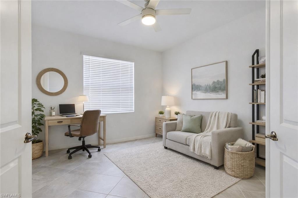Welcome to the Orchid Villa in the highly desirable community of Orange Blossom Ranch! This well-maintained 2-bedroom + large den home offers a versatile layout, with the den featuring elegant French doors—perfect for a home office, guest space, or flex room. The home includes 2 full bathrooms and an open-concept kitchen complete with a breakfast bar, ideal for casual dining and entertaining. The expansive living and dining areas showcase soaring ceilings and are filled with abundant natural light, creating a bright and inviting atmosphere throughout the home. The spacious owner’s suite boasts a private bath and a generous walk-in closet, providing both comfort and functionality. Step outside to your private, fully screened lanai, where you can relax and enjoy tranquil lake views with no rear neighbors. Additional highlights include a 2-car garage and a prime location on a quiet cul-de-sac, offering added privacy and minimal traffic. Whether you're an investor or a first-time homebuyer, this property presents an excellent opportunity to own in a growing, amenity-rich community.