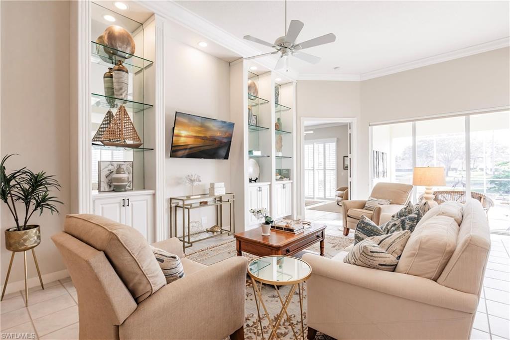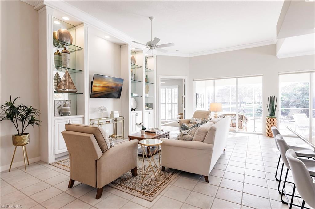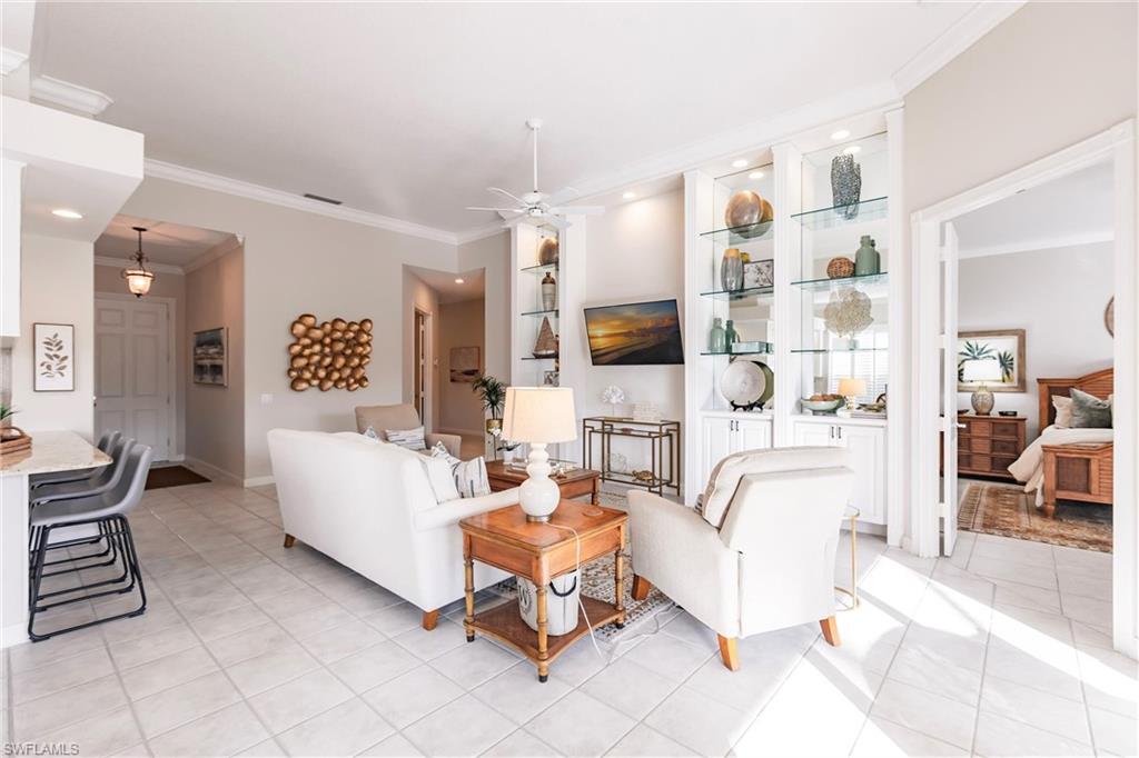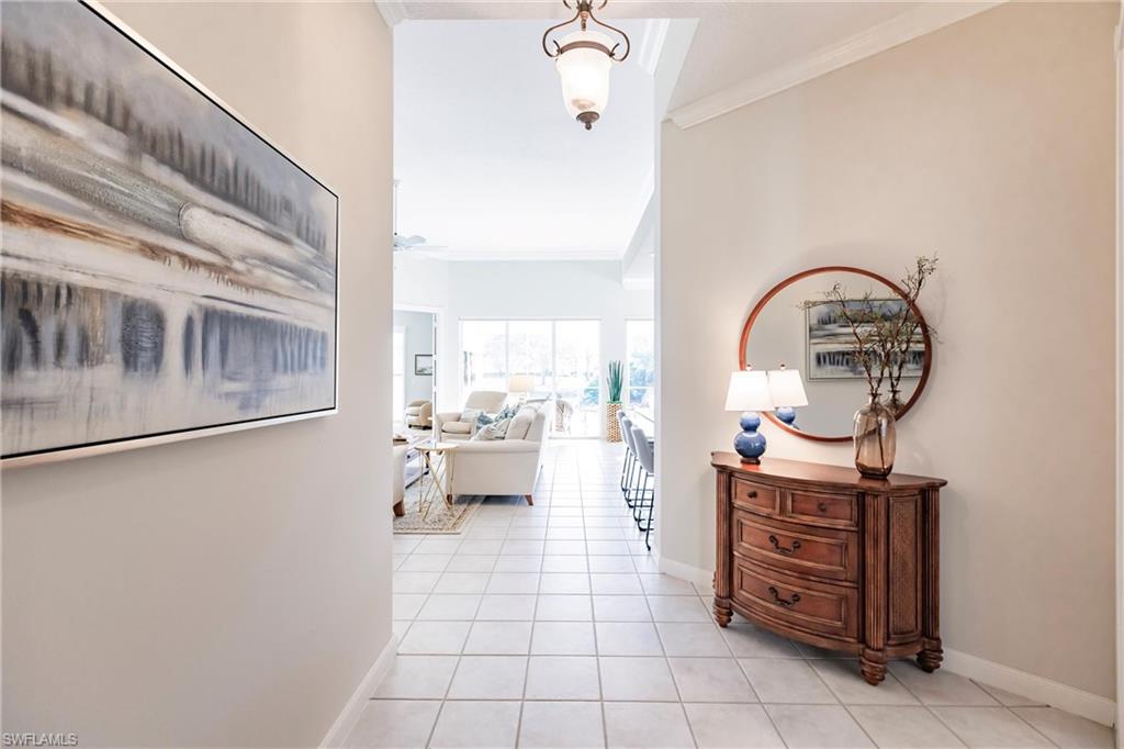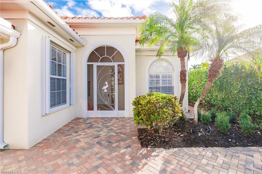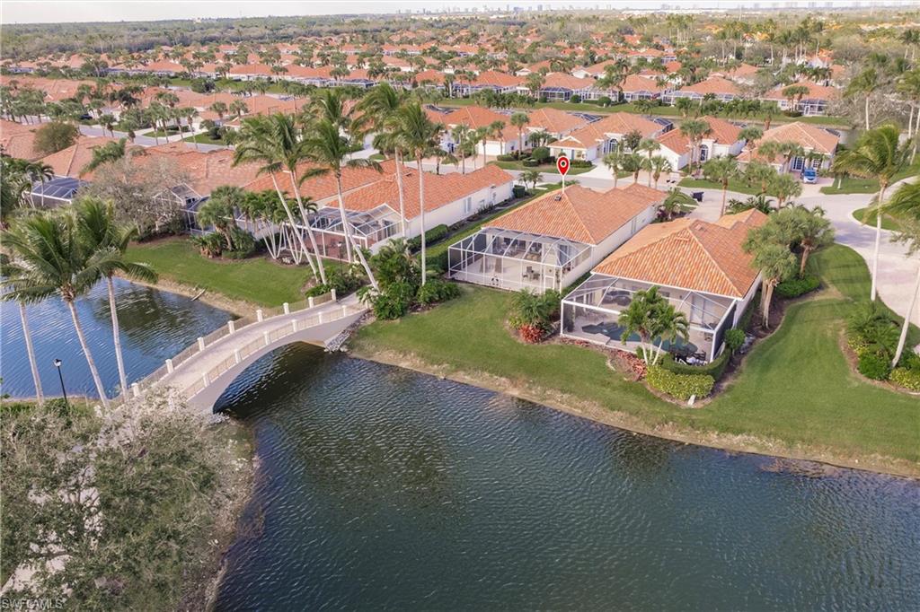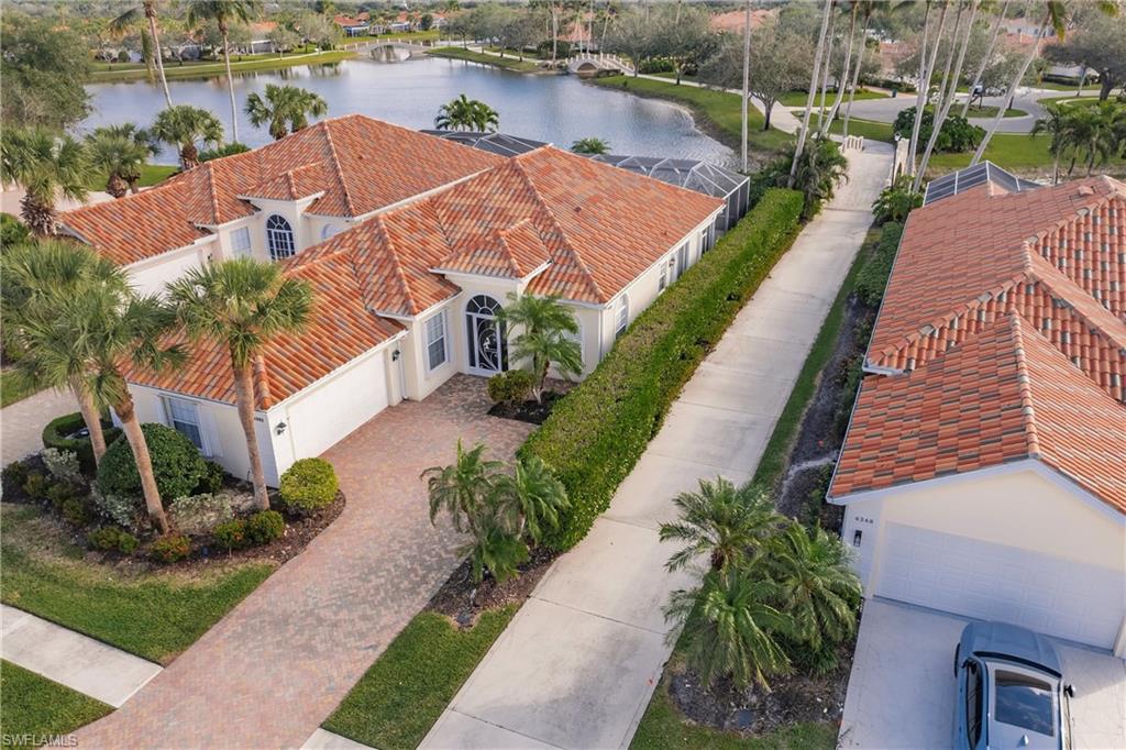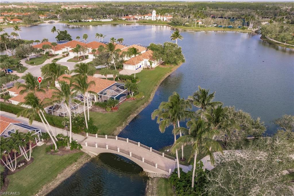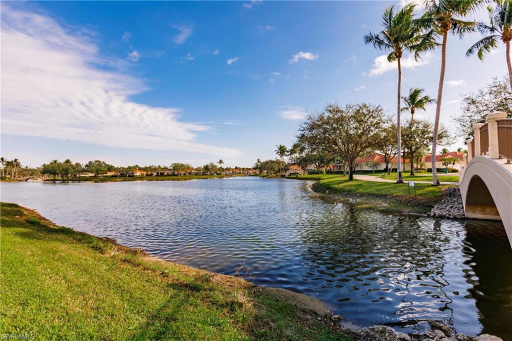 Big lake views with multiple Venetian bridges within sight! Pleasant walk to community amenities and on-site restaurant. The Oakmont floor plan offers 3 bedrooms, den or home office, 2 bathrooms, 2 car garage, and huge screened patio. Features include; 2018 roof, long brick paver driveway and sidewalks, screened front entry, modified great room wall unit, remodeled guest bathroom, hurricane protection, and middle of the community location. Village Walk is miles from Vanderbilt beach and 4 miles to the shopping and dining gem - Mercato! Amenities for everyone, including tennis, pickleball, bocce, gym with lap pool, 2 heated resort pools, restaurant with scenic outdoor seating, and so much more!