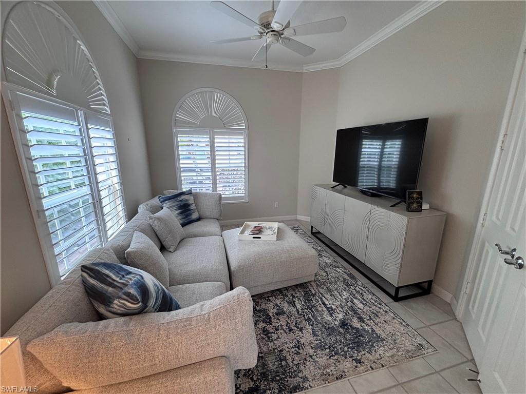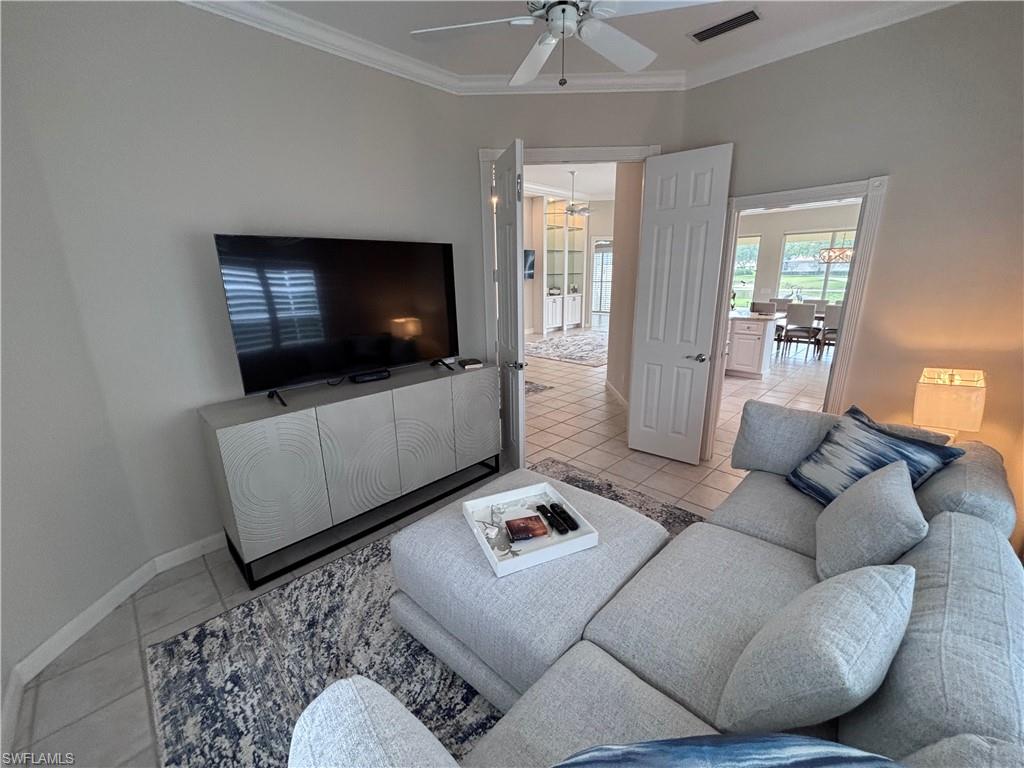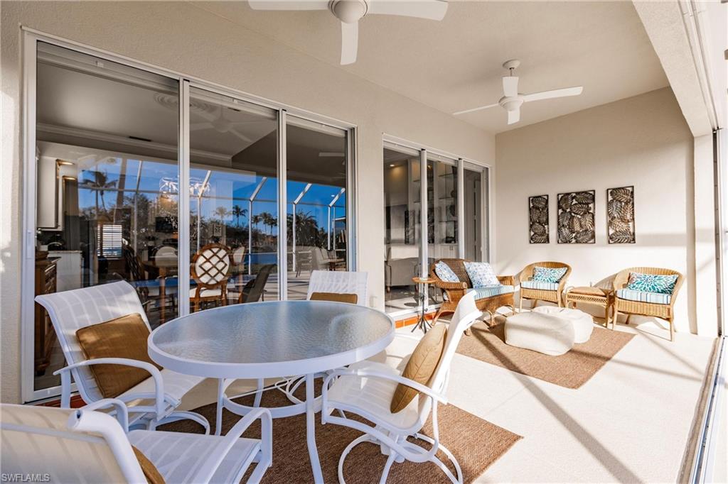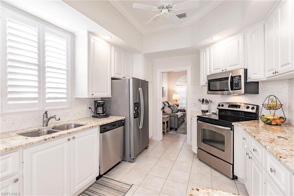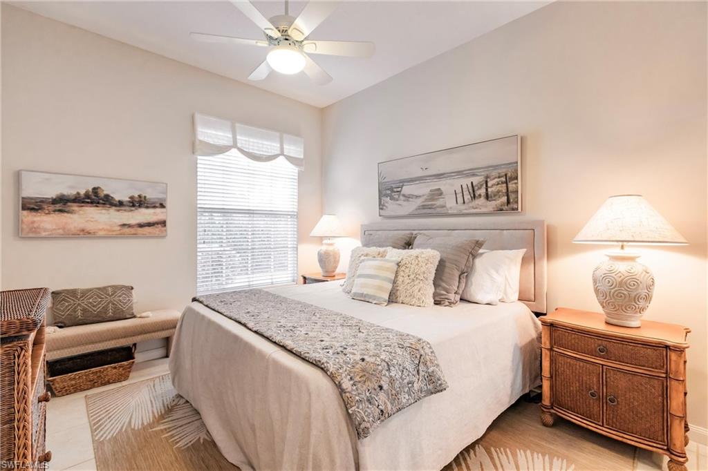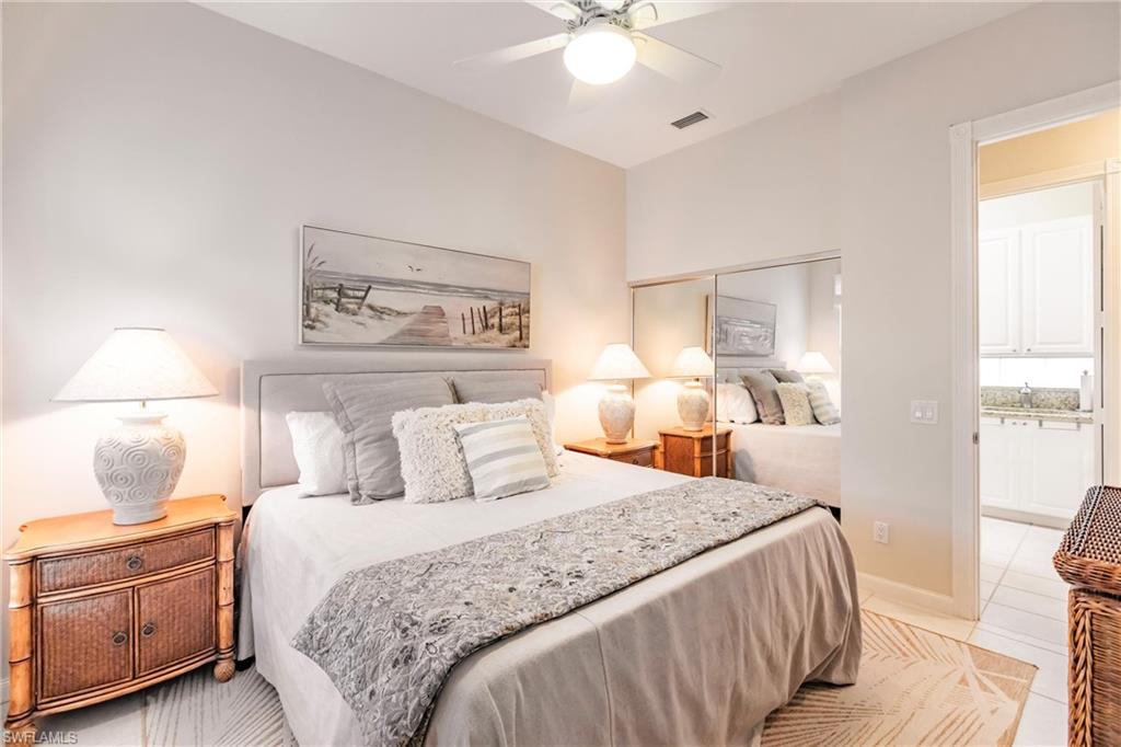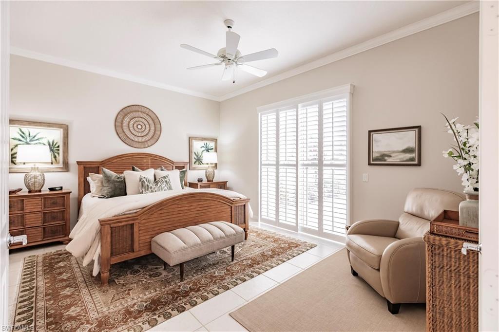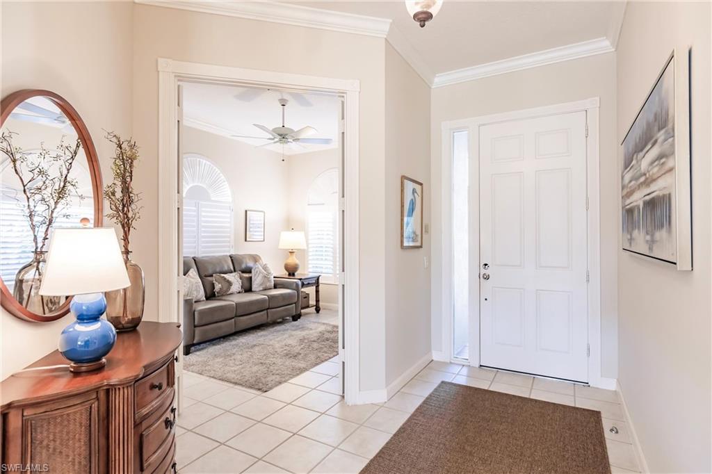 Big lake views with multiple Venetian bridges within sight! Pleasant walk to community amenities and on-site restaurant. The Oakmont floor plan offers 3 bedrooms, den or home office, 2 bathrooms, 2 car garage, and huge screened patio. Features include; 2018 roof, long brick paver driveway and sidewalks, screened front entry, modified great room wall unit, remodeled guest bathroom, hurricane protection, and middle of the community location. Village Walk is miles from Vanderbilt beach and 4 miles to the shopping and dining gem - Mercato! Amenities for everyone, including tennis, pickleball, bocce, gym with lap pool, 2 heated resort pools, restaurant with scenic outdoor seating, and so much more!