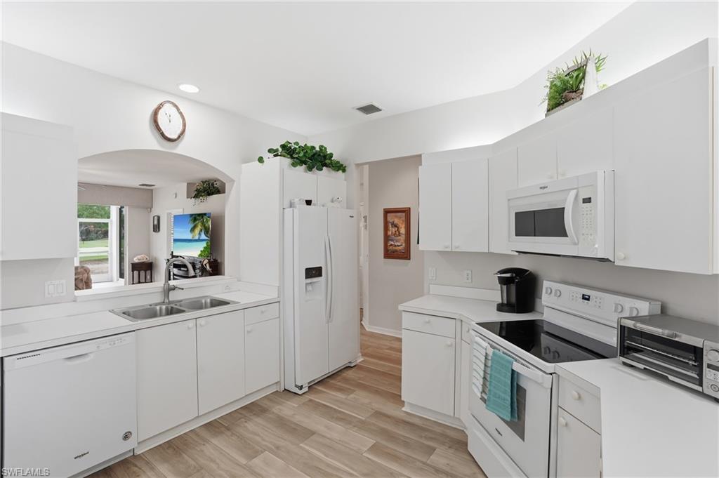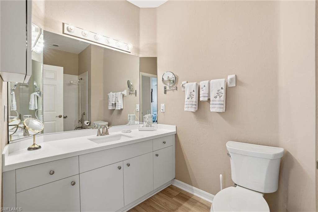 Experience elevated coastal living in this beautifully appointed 2-bedroom, 2-bath carriage home nestled within the prestigious Strand community in North Naples. Perfectly positioned to capture serene lake and golf course views, this light-filled residence offers an elegant open-concept layout designed for both comfort and effortless entertaining. Stylish wood-look flooring flows throughout the living spaces, while expansive sliding glass doors lead to a private screened lanai, creating the ideal setting to relax and enjoy breathtaking Florida sunsets. The spacious primary suite provides a tranquil retreat with picturesque water views and a well-appointed ensuite bath. A generous guest bedroom ensures comfort for visitors, while the thoughtful layout offers both privacy and functionality. Complete with a private one-car garage, this home combines convenience with refined living. Residents of The Strand enjoy access to exceptional resort-style amenities, including championship golf, a clubhouse, fitness center, tennis, and beautifully landscaped grounds—all within a gated community. Ideally located just minutes from Naples’ world-renowned beaches, upscale shopping, and fine dining, this residence offers the perfect blend of luxury, lifestyle, and location.