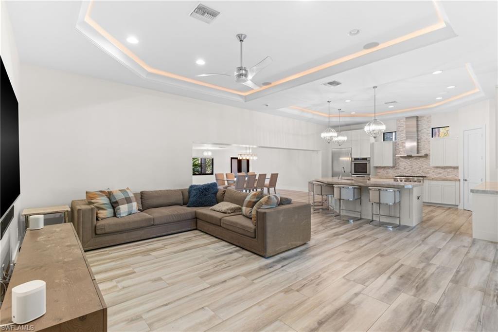 Experience a new level of private luxury living on 2.27 acres in highly desirable North Naples, reminiscent of Pine Ridge Estates or Livingston Woods—yet offered at a fraction of the price. A grand circular driveway framed by lush tropical landscaping welcomes you to this exceptional estate and provides ample parking for guests. The 3,731 sq ft residence offers 5 bedrooms + den and 4.5 baths, showcasing exquisite craftsmanship and high-end finishes throughout. The property is offered unfurnished, allowing the next owner to create their own custom interior vision. The chef’s kitchen is designed to impress, featuring Thermador appliances, gas cooking, custom cabinetry, a large island with wine cooler, and striking double-edge Taj Mahal granite countertops—perfect for entertaining and everyday luxury living. Seamlessly blending indoor and outdoor living, the expansive covered lanai extends the living area outdoors and includes a summer kitchen, fireplace, TV, and remote-controlled screens, creating the ideal setting for year-round enjoyment. Step into your private resort-style backyard. The fully fenced property offers exceptional privacy and features a secluded pool, oversized spa, and a tranquil gazebo designed for relaxation, yoga, or meditation. Landscape architects have thoughtfully designed the grounds as a private park, complete with walking paths, exercise areas, a basketball court, and elegant landscape lighting. A whole-house reverse osmosis system provides drinking-quality water throughout the home, supporting a healthy lifestyle. The neighborhood is undergoing a remarkable transformation, with several newly constructed luxury estates—including three recently built mega homes on the same street—signaling strong growth and long-term value for this property. Whether you are searching for a private estate, a multi-generational residence, the freedom of no HOA restrictions, or simply an unbeatable North Naples location close to shopping, dining, and the Gulf beaches—this property truly delivers. Showings are now available—schedule your appointment today and experience this remarkable estate firsthand.