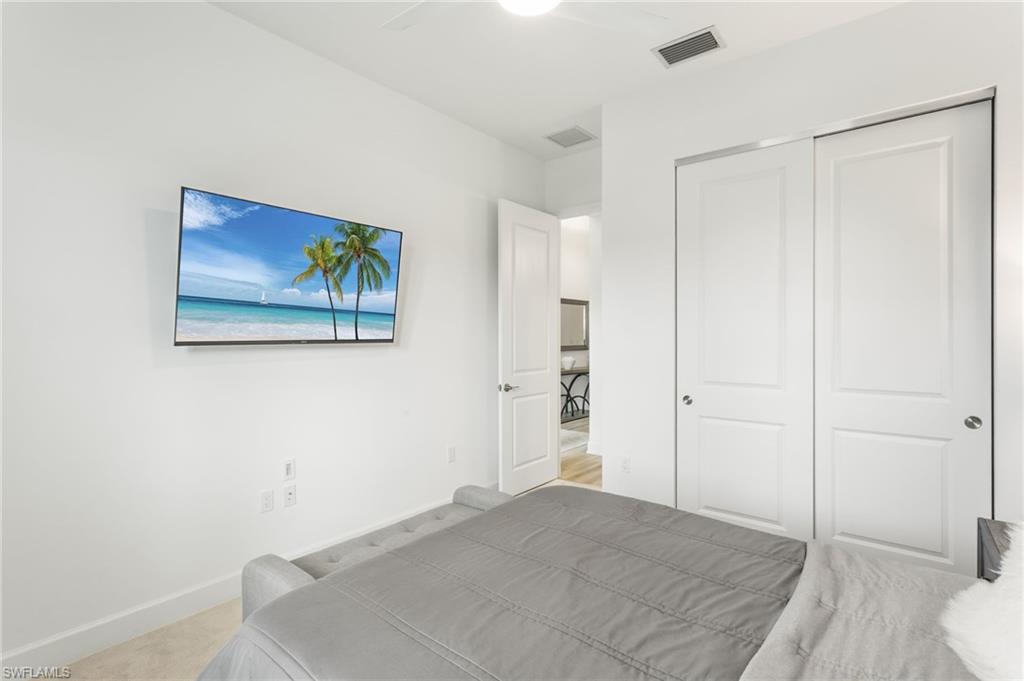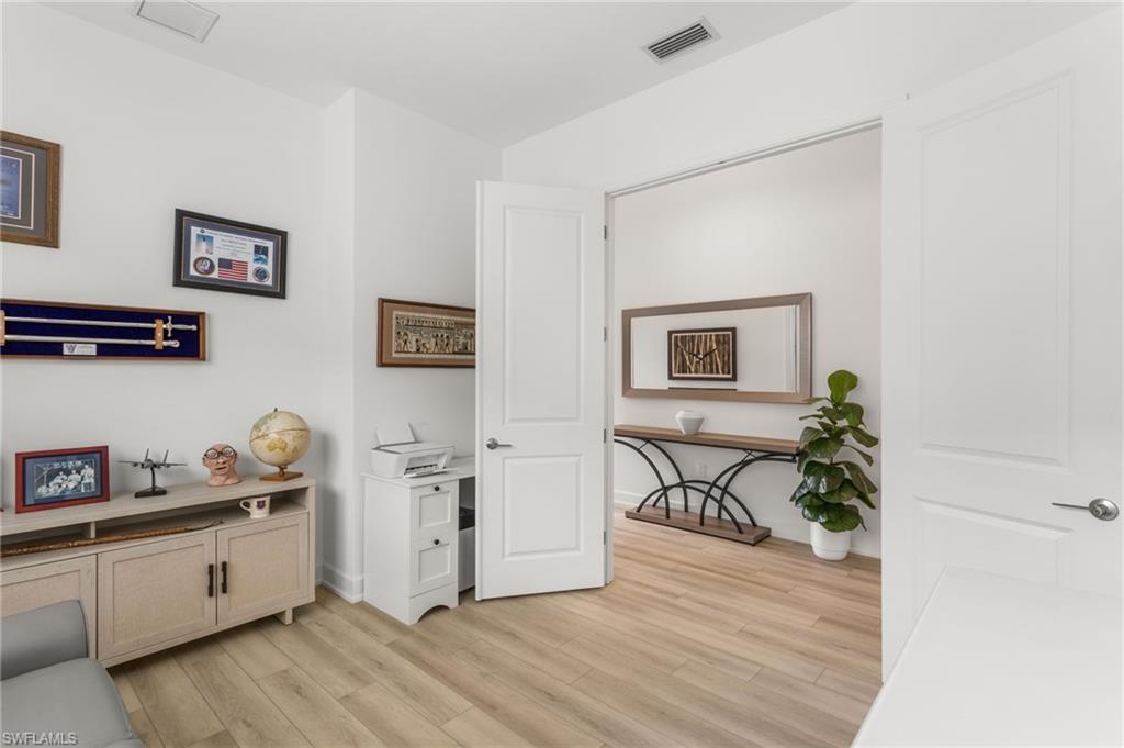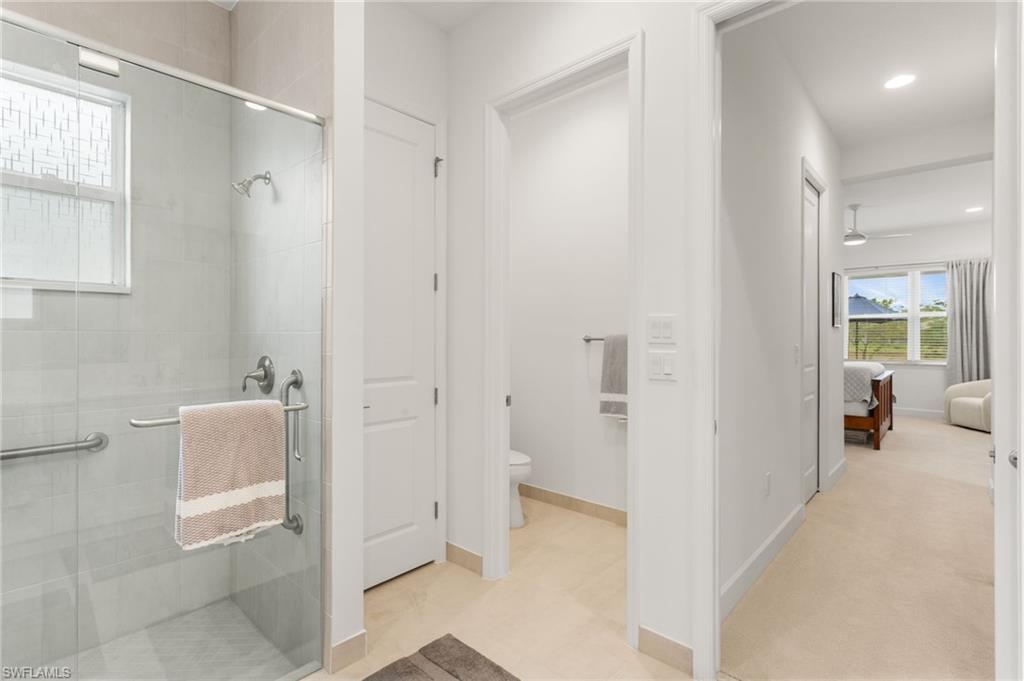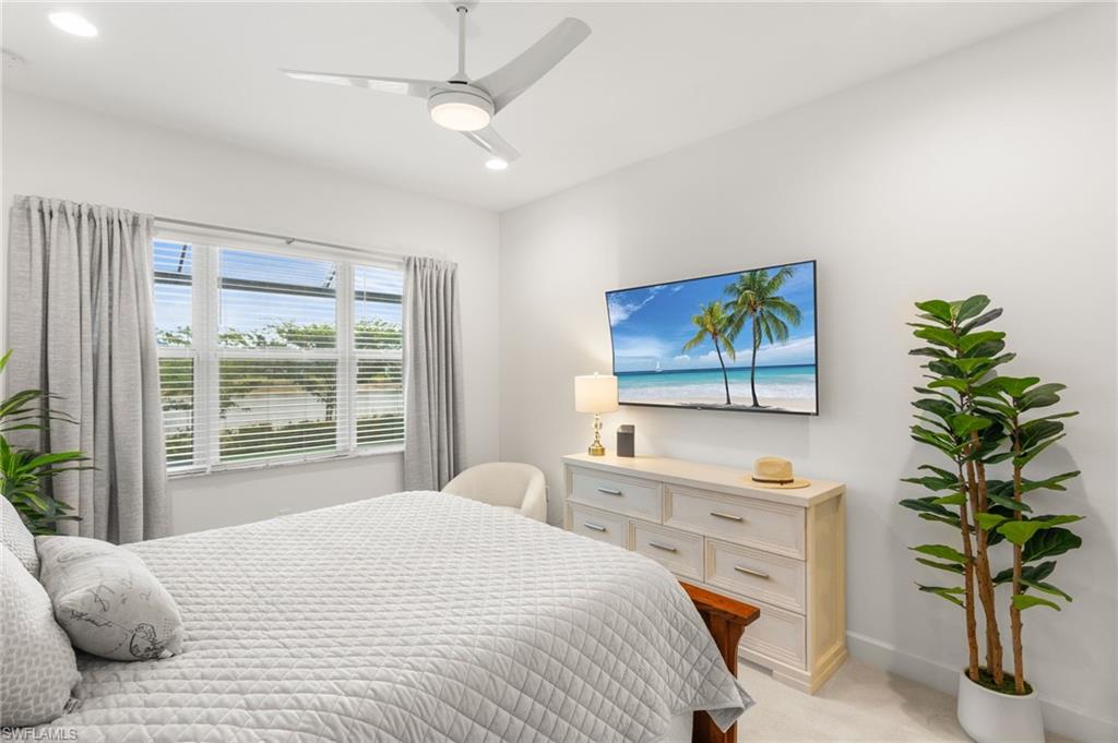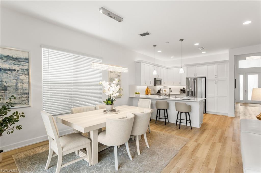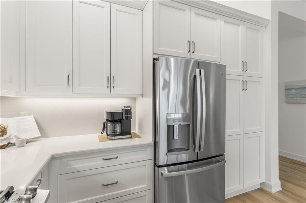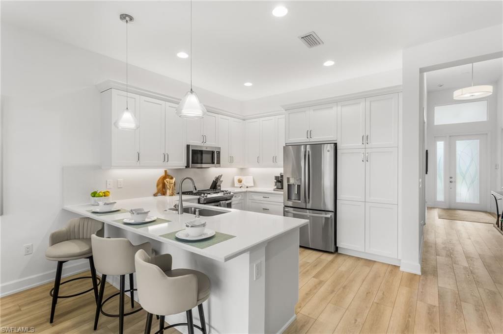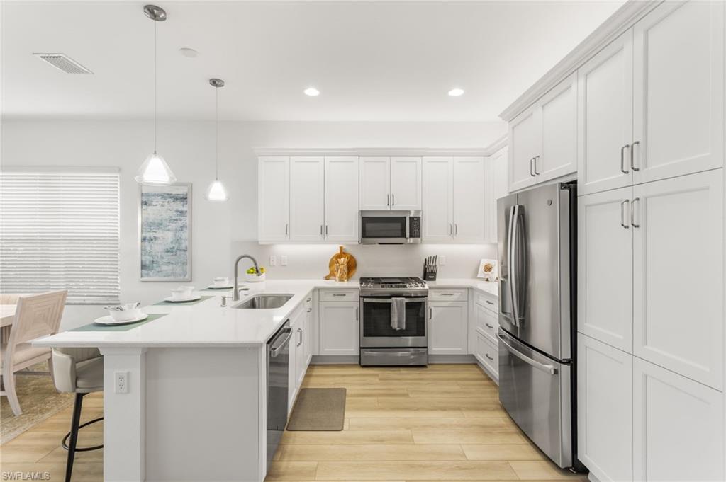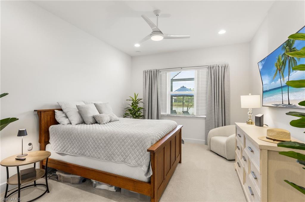 Welcome to this upgraded Pelican model, a residence that redefines luxury living with sophistication. The experience begins the moment you enter through the 14-foot foyer, where the soaring ceiling height and expansive sight lines immediately set a tone. Step into the heart of the home, an impressive chef’s kitchen crafted for both culinary inspiration and effortless entertaining. Here, sleek quartz countertops extend into a fully integrated matching backsplash, creating a clean, cohesive aesthetic. Premium stainless-steel appliances—including a natural-gas range- and soft-close cabinetry with refined molding exemplify thoughtful design. Soft ambient lighting from pendants and recessed LEDs casts a warm, inviting glow. As the main living area flows gracefully toward the outdoors, sliding impact glass doors draw your eye to the home’s outdoor oasis. Step outside to find a heated pool and spa, enveloped by a panoramic no-see-um screen enclosure that allows uninterrupted views of the lake. Inside, the elevated upgrades continue with premium flooring that flows harmoniously throughout the main areas, and cozy carpeting in the bedrooms ensures both style and comfort, enhancing the home’s sophisticated appeal. Impact-resistant windows and doors offer peace of mind and energy efficiency. Beyond the home itself, Valencia Trails elevates the lifestyle even further with active, social, and wellness-focused living. The impressive 43,000-square-foot clubhouse serves as the centerpiece of the community, offering a full-service restaurant and bar, a state-of-the-art fitness facility, a luxurious salon and spa, card and game rooms, art studios, and a fully appointed demonstration kitchen. Outdoors, residents enjoy a resort-style pool, lap and resistance pools, six tennis courts, eight pickleball courts, and miles of beautifully landscaped walking and biking trails. Even four-legged residents are thoughtfully accommodated with two private dog parks. Opportunities to own a home of this caliber—combining privacy, premium upgrades, and an outstanding location, within one of Naples’ most vibrant and prestigious 55+ communities.