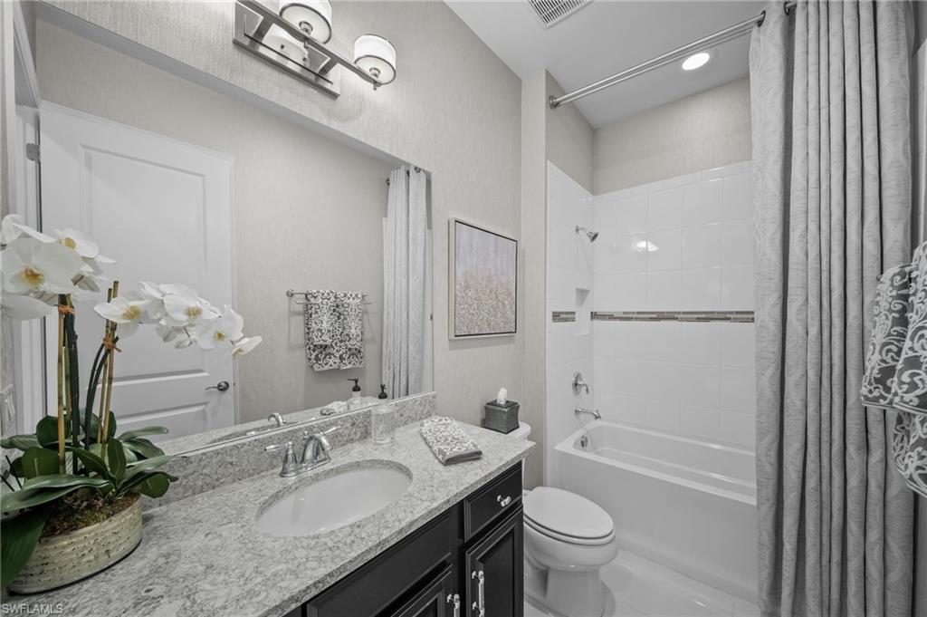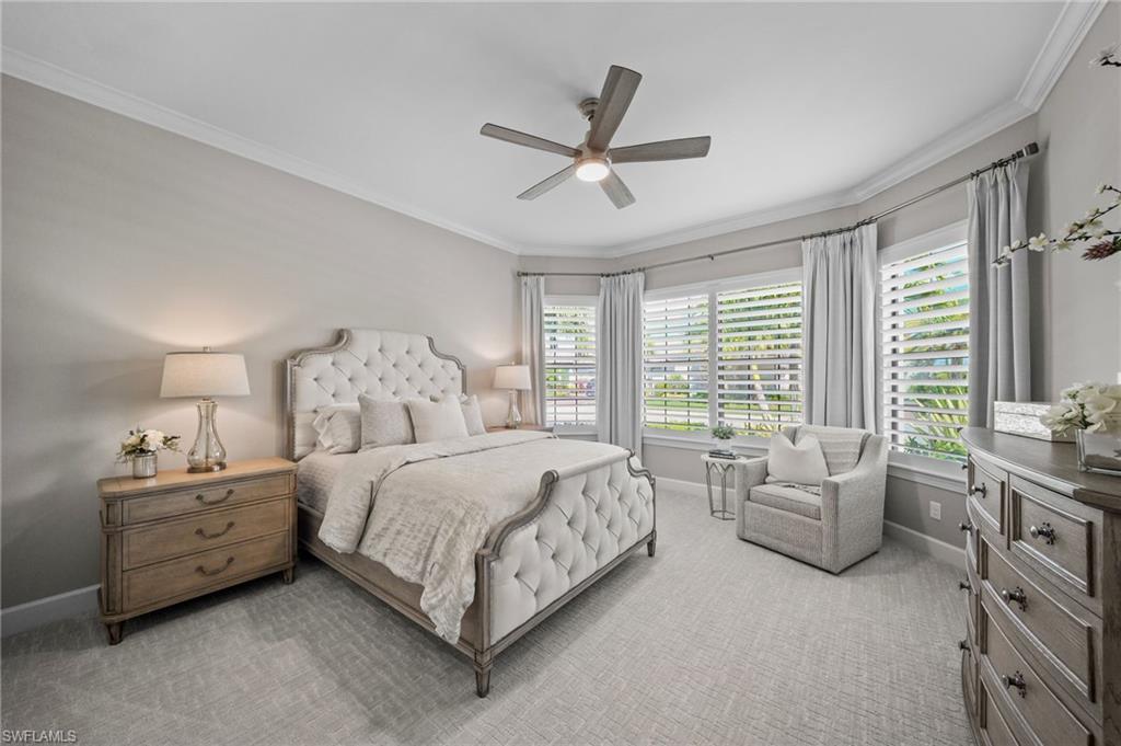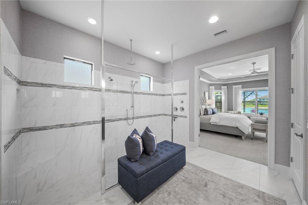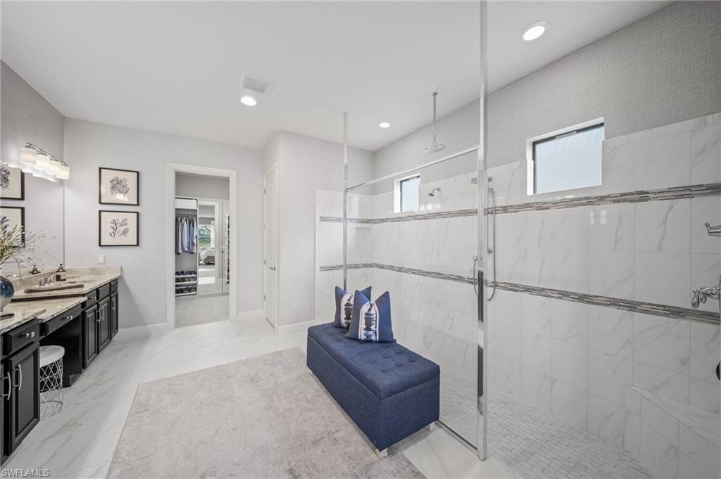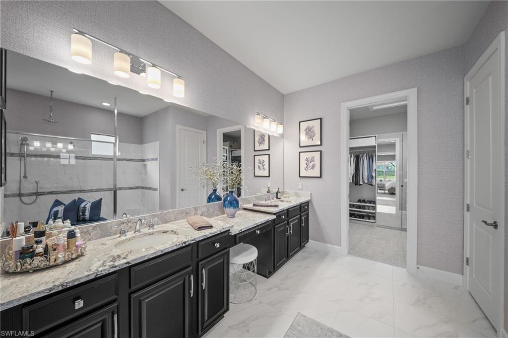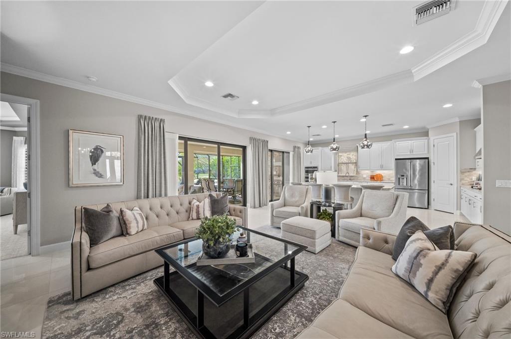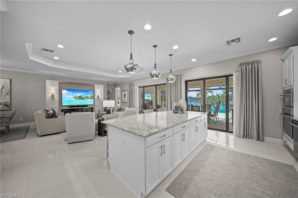 LIVE A VACATION LIFESTYLE IN ESPLANADE! FULL GOLF MEMBERSHIP INCLUDED! Opportunity is knocking! This rarely available 4 BEDROOM+DEN, 3 full bath “Palazzio” offers 3,180 sq ft under air and is situated a premium lakefront lot with long water views and rear west facing exposure. From the moment you step inside this elegant home you are greeted with oversized 24”x24” porcelain tile floors that flow throughout the common areas and oversized den. Oversized rooms and an open concept floorplan including two sets of pocketing sliding glass doors to the lanai is what makes this home so special. Enjoy al fresco dining and entertaining family & friends on the extended covered lanai complete with outdoor kitchen and salt water GAS heated pool/spa with travertine marble deck. A long list of luxury finishes include: HURRICANE IMPACT GLASS WINDOWS/DOORS; motorized roll down hurricane screens on the lanai; impact glass double front doors with matching sidelights; extended 2 car garage (23’x24’); custom great room feature wall with LED fireplace; expanded primary & front guest bedrooms with bay windows; luxurious baths with raised panel cabinetry, quartz countertops, and wallpaper detail; special order lights/chandeliers; custom master closet cabinets; crown molding & plantation shutters throughout; recessed lights in every room; spacious Laundry Room with cabinetry; tankless GAS hot water heater; extensive landscaping with landscaping lighting; NEW gas pool heater & automation system; and more! Esplanade Golf & Country Club of North Naples offers a true “Lifestyle Community” with world-class amenities, including a resort pool with cabanas and the popular “Bahama Bar,” tennis, pickleball, bocce, a 14-mile network of bike/walking trails, and an 18-hole private golf course. The impressive 15,000 Sq Ft clubhouse features a restaurant, bar, wine-tasting room, wine lockers, and a Starbucks-style café. Best of all, the property’s landscaping, irrigation, golf membership, and all community amenities are covered under a quarterly fee of just $3,768—no additional fees or memberships required! Don't miss your opportunity to own this exceptional home in one of Naples’ most sought-after communities. Schedule your tour of this stunning home and Esplanade Golf & Country Club today! NON FLOOD ZONE/NO FLOOD INSURANCE REQUIRED/ZONE X!
