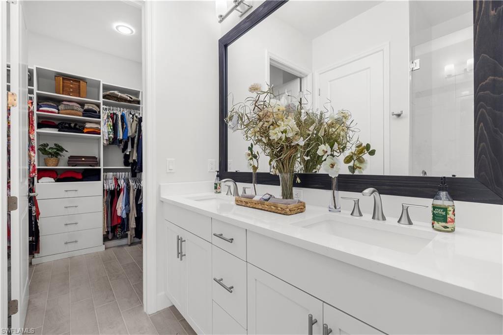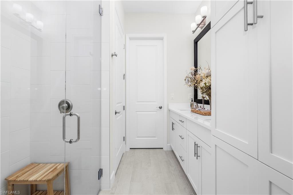 Embrace the vacation vibe every day in this exquisitly styled Marco cottage. Step into this tropical coastal cottage that exudes elegance with this turnkey home. It’s an inviting, quiet retreat featuring two bedrooms, two full bathrooms, and a spacious two-car garage that can double as a gym. the kush landscaping surrounding the cottages adds to the tropical feel of the community. Light color tile plank flooring flows throughout the home. The warm beige and sand tone create a seamless blend of comfort and tasteful coastal sophistication. The open gourmet kitchen boasts stunning white quartz countertops, stainless-steel appliances and rollout cabinets draws. The soaring ceilings with wood beams add to the open airy layout perfect for entertaining. Beyond the front gate, residents enjoy an unparalleled lifestyle within a secure, meticulously maintained gated community inspired by the developers award-winning coastal architecture. Indulge in resort-style amenities, including a state-of-the-art clubhouse, fitness center, heated resort and lap pools. Outdoor enthusiasts will love access to pickleball, tennis, kayaking, paddle boarding, and miles of scenic nature trails and waterways. After a day of adventure, unwind at the Overlook Bar & Grill Restaurant while taking in breathtaking sunset views. All of this is just minutes from the pristine Naples and Marco Island beaches, Fifth Avenue exceptional dining and shopping. This home offers the perfect blend of luxury, leisure, and convenience. This is serene and active nature preserve living without sacrifice.