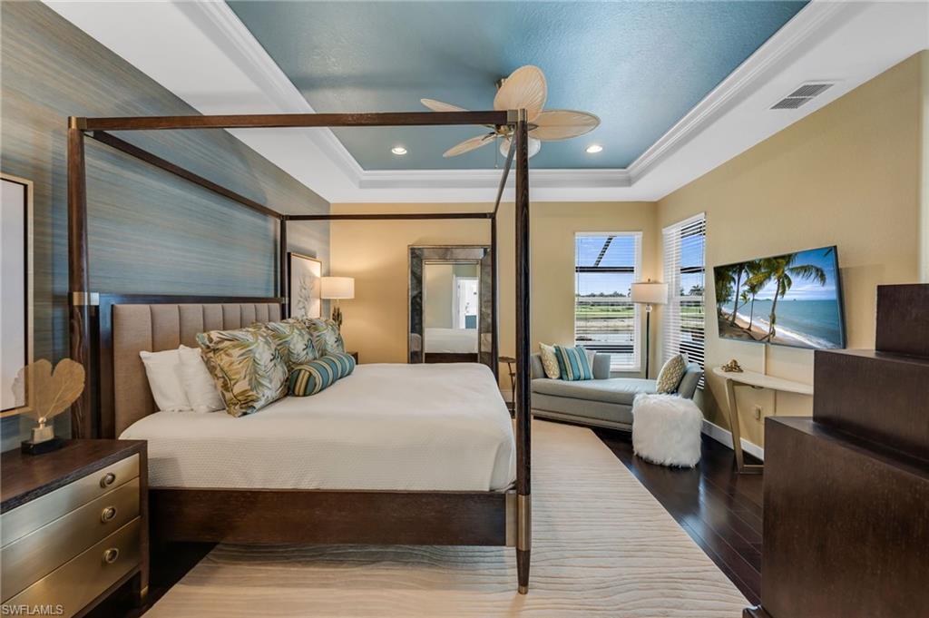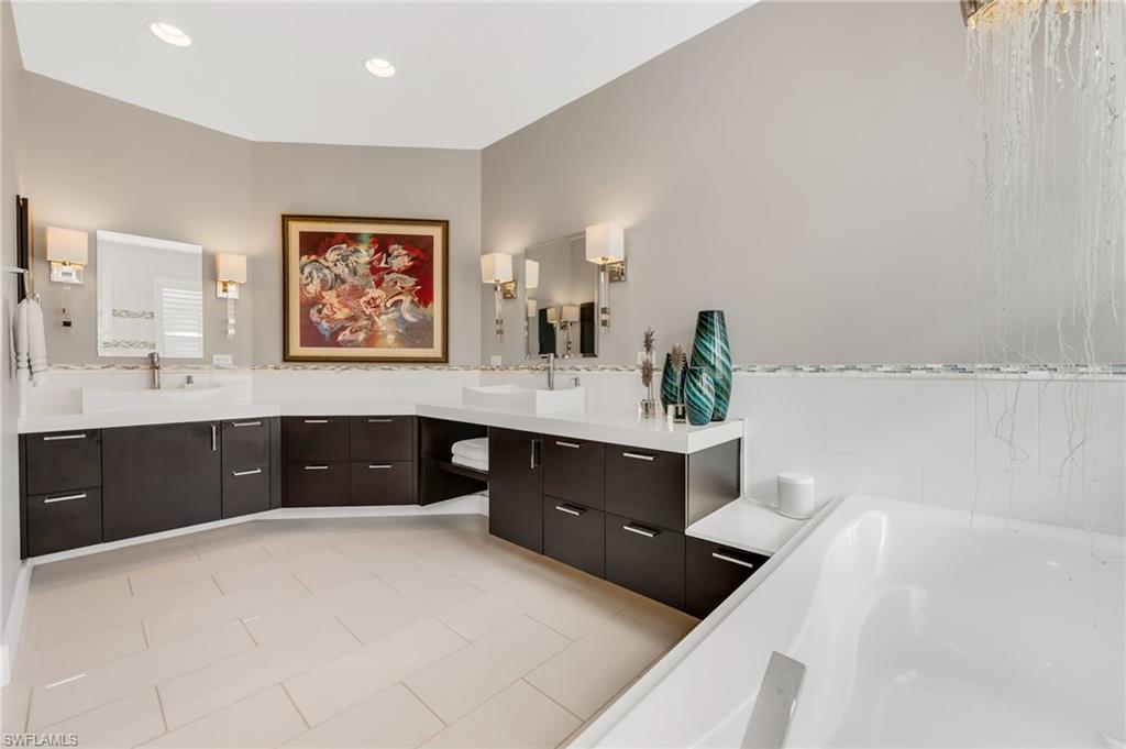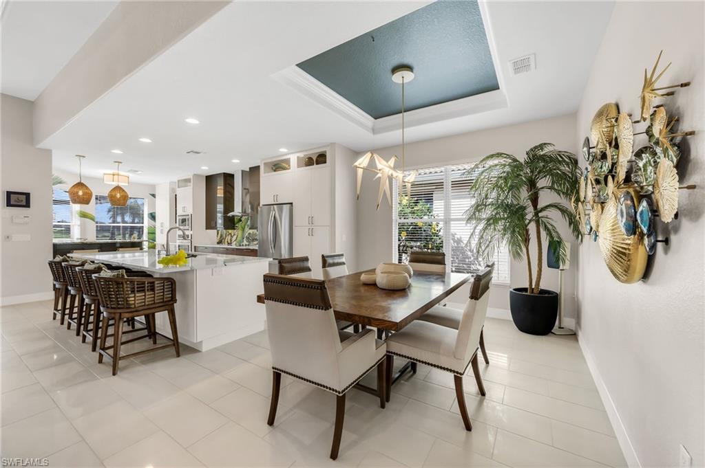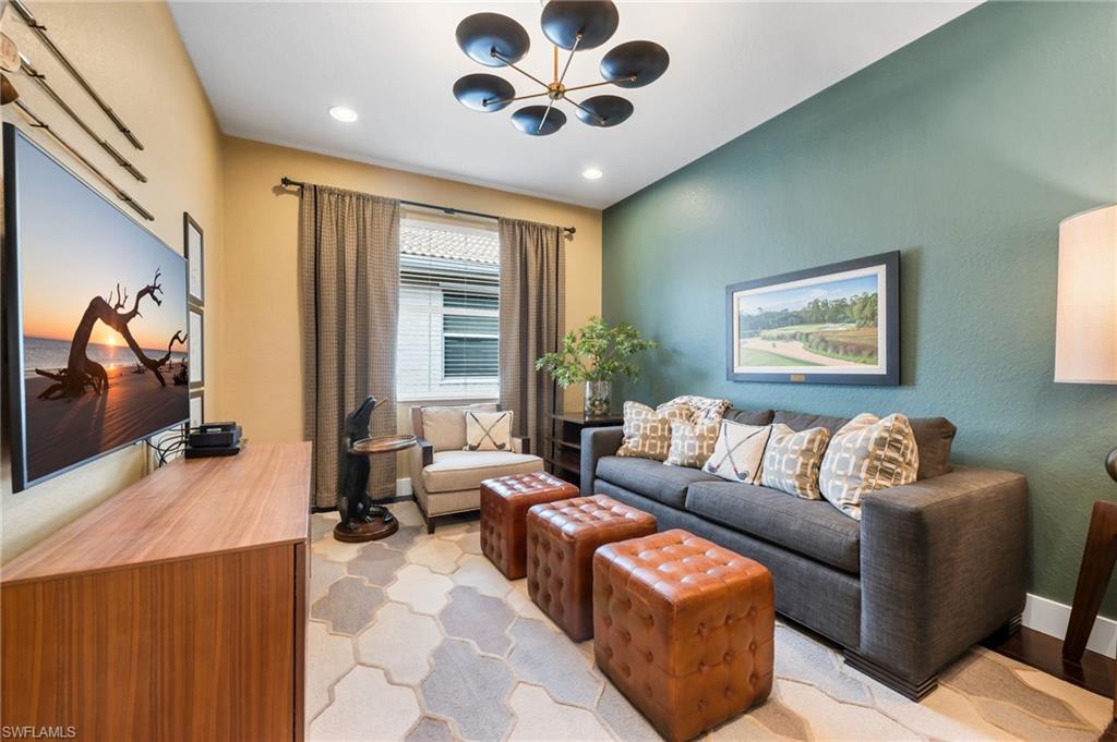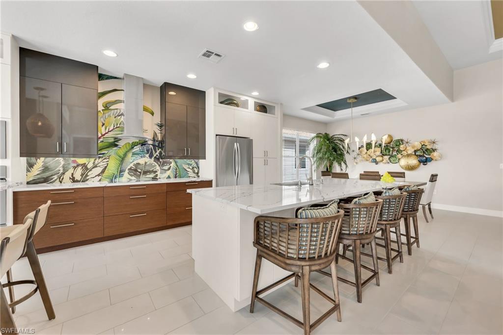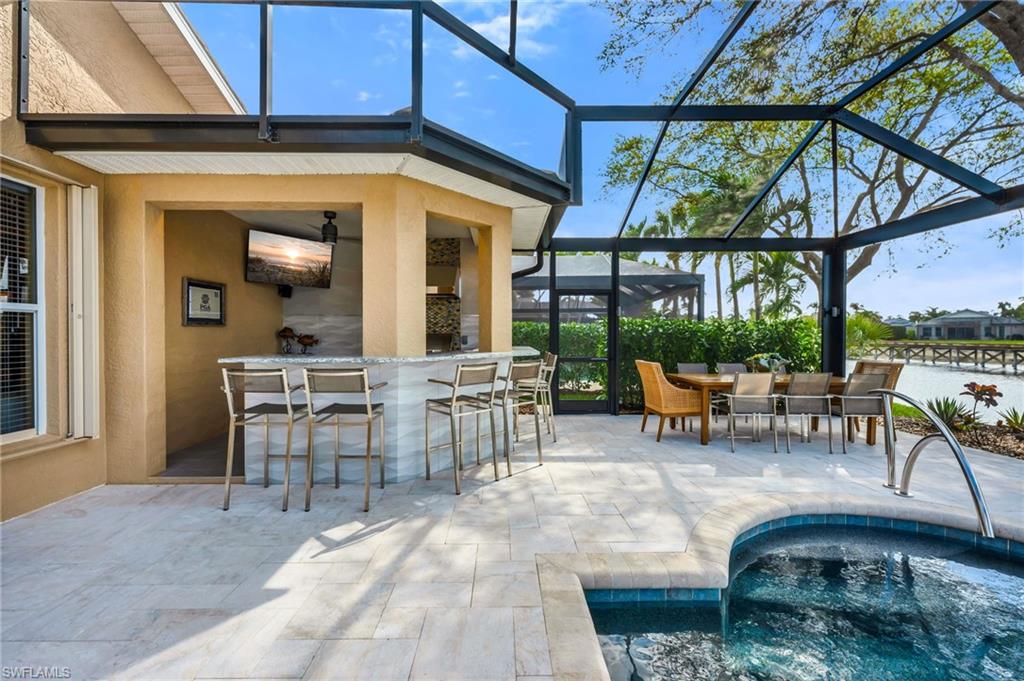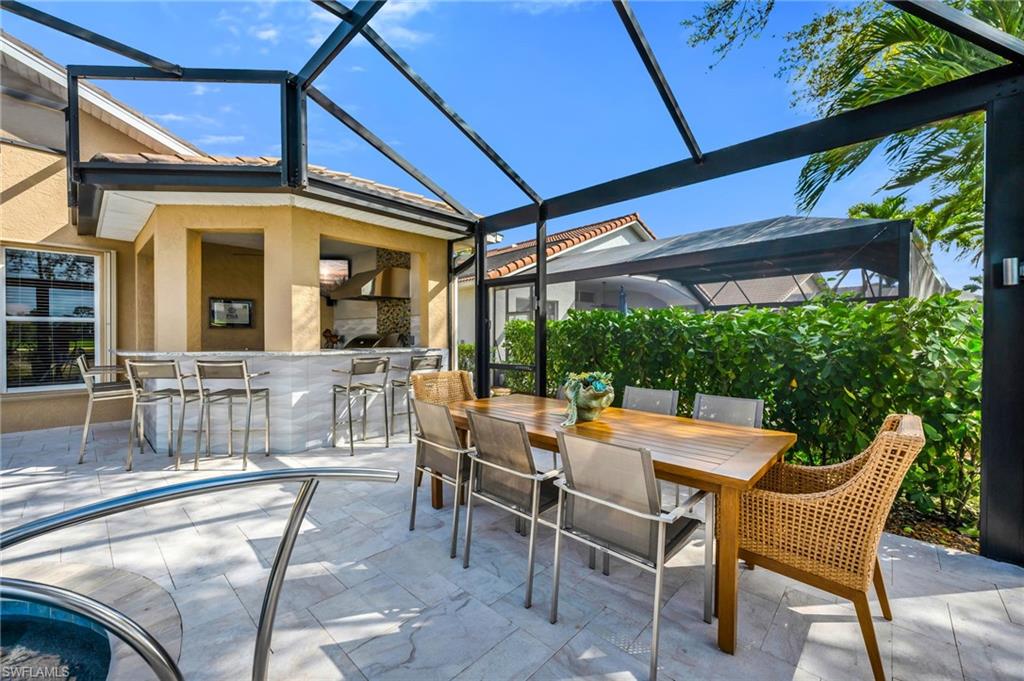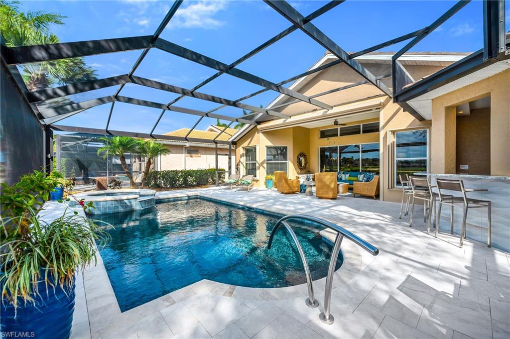 Experience the height of elegance and sophistication in this exceptional single-family Villa home located within the prestigious Naples Lakes Country Club community. This award-winning neighborhood offers world-class amenities amidst a luxurious setting. This fully redesigned furnished residence embodies luxury living with careful attention to detail and a design that seamlessly combines modern elegance with comfort and warmth. Step into the extraordinary lifestyle provided by this beautifully decorated 3-bedroom plus den, 2.5-bath home, featuring tasteful designer furnishings throughout. The open-concept layout is filled with natural light and offers relaxing golf course and southern lake views with sunrise and sunsets. The spacious lanai creates the perfect outdoor retreat, complete with a newly resurfaced pool, spa, and an impressive covered outdoor kitchen/bar area. The landscaping provides privacy without obstructing the view. Inside, the home boasts new flooring throughout, a generous great room, and a stunning open kitchen with custom bar area fitted with top-of-the-line appliances, quartz countertops, a large island, custom cabinets, additional storage, and decorative lighting. The owner’s suite serves as a private sanctuary, with dual vanities, a soaking tub, an oversized walk-in shower and upgraded cabinetry. The well-appointed laundry room includes white shaker cabinets, a utility sink, and a newer washer and dryer. Residents enjoy access to an impressive range of amenities, including fitness facilities, tennis, pickleball, bocce, ping pong, fire pits, a steam room, casual and fine dining options (both indoor and outdoor), and a resort-style pool. Most notably, buyers can enjoy immediate access to the 18-hole Arnold Palmer Signature golf course at Naples Lakes Country Club. This premier bundled golf community in Southeast Naples is ideally situated just minutes from Fifth Avenue South, beautiful Gulf beaches, and world-class dining and shopping.