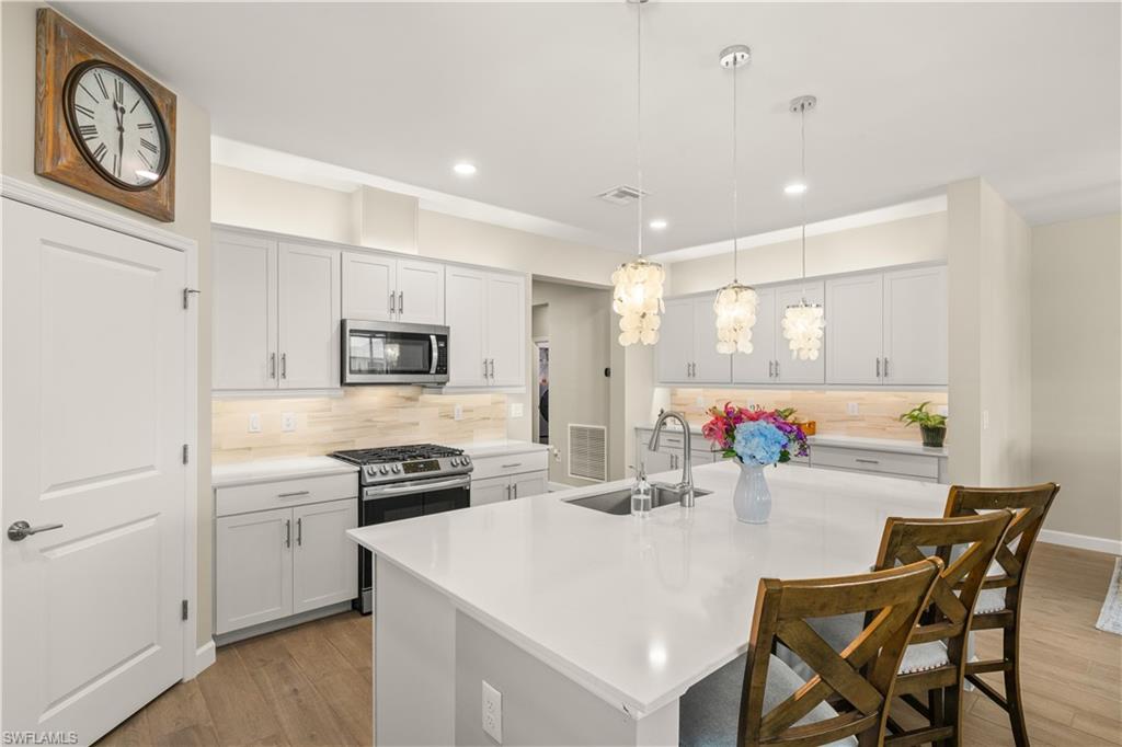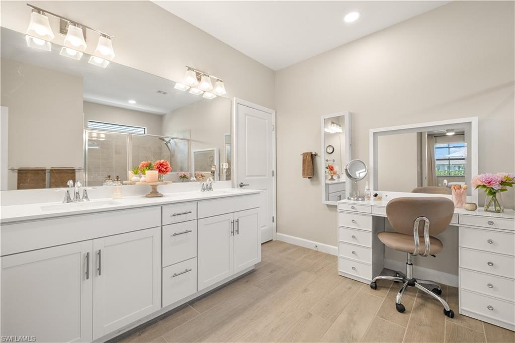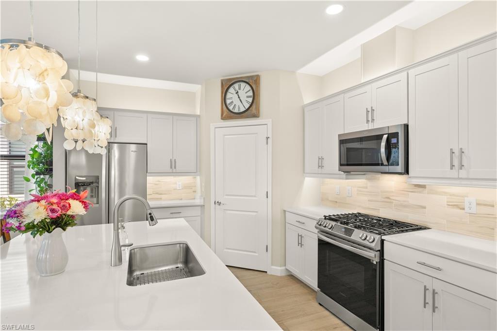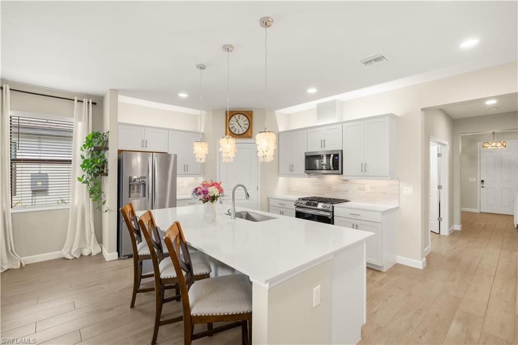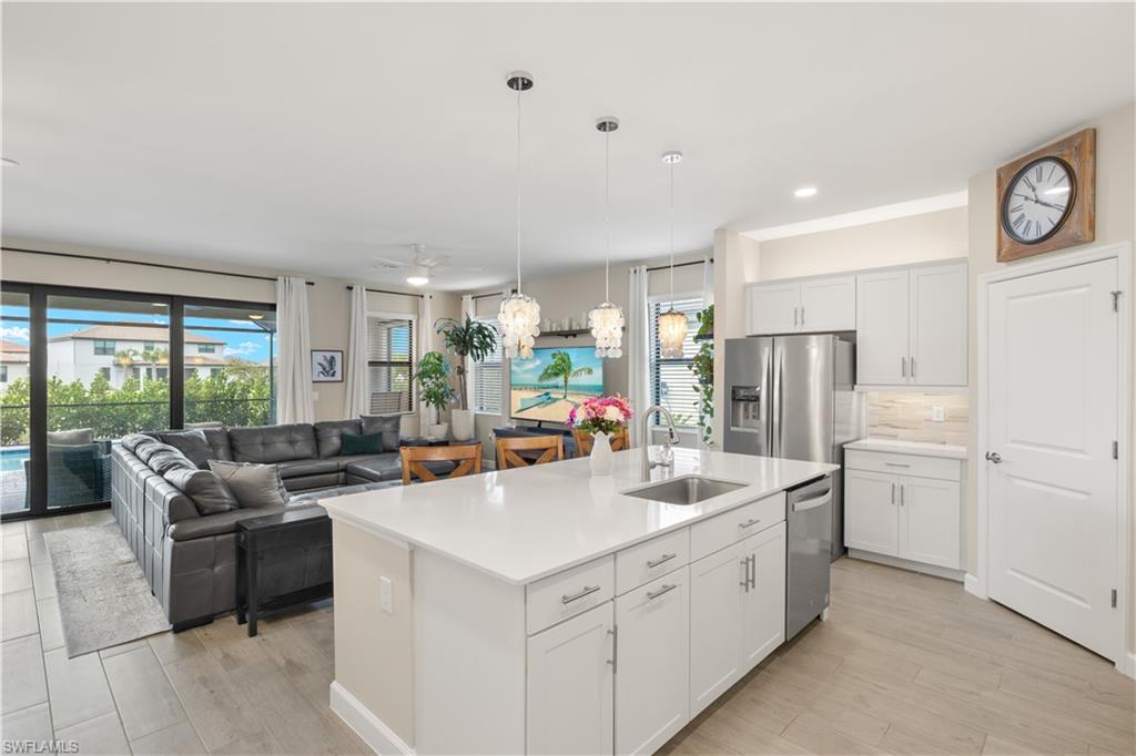 The highly upgraded pool home you've been waiting for! Custom Saltwater Pool in this Marsala 3/3 Bedroom + Den. Immediately enjoy the Verdana Village lifestyle!Don’t wait for new construction- MOVE-IN READY with $175,000 in post-closing upgrades. Impact windows and doors, whole-home 22KW gas generator and surge protection, custom pool with sun shelf and heater with optional "chiller" feature for hot Florida summers, professional landscaping package, custom interior paint, designer feature walls, designer light fixtures throughout, LED lighting, kitchen cabinet uplighting/under cabinet lighting, full outdoor kitchen with gas grill, whole house water filtration system, all new appliances replacing the builder-grade appliances, and overhead garage storage system. A light-filled great-room floorplan, family gathering spaces, 3 spacious en suite bedrooms including primary suite with his-n-her walk-in closets, and a dedicated home-office are the hallmark of this thoughtfully designed floorplan. The kitchen features a large center island, walk-in pantry and additional bar area, perfect for entertaining. Open the sliding doors to the outdoor living room, summer kitchen with gas grill, refrigerator, sink, storage and large-screen television. Watch the gorgeous sunsets in your private backyard oasis. No detail was overlooked in the customization of this home. Verdana Village offers state-of-the art amenities including diverse dining opportunities including a full-service restaurant and craft brewery, a resort-style pool with island-sunning platform and cabanas, playground, bocce courts, dog park and on-site Publix supermarket and shops. The Sports Complex offers a superior fitness experience with movement studio and locker rooms, indoor basketball, volleyball, tennis and pickleball courts! Stop by the the indoor pro shop or the Cafe for a refreshing snack. Outdoors you’ll enjoy 12 pickleball courts, 5 tennis courts, a practice court with a ball machine and pro shop.