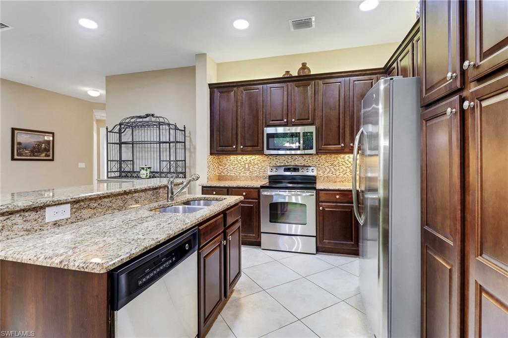Discover the highly desired community of Marbella Lakes, perfectly situated just minutes away from Downtown 5th Avenue, restaurants and shopping. This move in ready condo is centrally located allowing easy access to all areas of Naples. Currently it is the Only available 1st floor unit in Marbella Lakes. This Capri floorplan offers privacy with each bedroom separated by the kitchen and living area. The Open kitchen offers granite countertops, stainless steel appliances with a breakfast bar open to the living room. One car garage. Your private lanai offers a landscaped view and privacy wall. Accordion Hurricane Shutters are on all of the windows. There is a Dehumidifier in the Garage and a new garage opener. The community of Marbella Lakes offer a resort style pool, Clubhouse with Indoor Basketball Court, Social Room, Card Room, Outdoor Pickleball Court, Outdoor Basketball Court and Tennis Courts, Children's Playground and Children's Pool...Don't miss this great opportunity! Onsite Manager and Assistant.