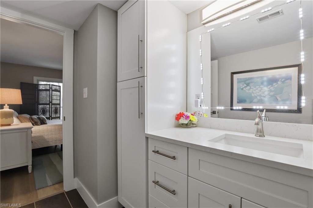 Welcome to your own slice of Southwest Florida serenity at Mira Vista, where style, comfort, and peaceful golf course living come together effortlessly. This second-floor end unit with elevator access is tucked away on a quiet dead-end road, offering both privacy and convenience in a beautifully maintained golfing community with optional membership—so you can enjoy the lifestyle on your terms. Step inside and you’ll immediately feel the difference. This home has been completely updated and is truly move-in ready. Wide 9-inch luxury vinyl plank flooring flows throughout, paired with a fresh, modern palette that makes the entire space feel light, open, and refined. The kitchen and bathrooms shine with quartz countertops, shaker-style soft-close cabinetry, and elevated finishes that carry seamlessly through to the custom shaker closet doors. Beyond the aesthetics, the big-ticket upgrades are already done for you: New hurricane impact windows throughout, Hurricane shutters on the lanai, New A/C (2021) with smart thermostat. Enjoy your morning coffee or evening unwind on the spacious lanai with southwest exposure, where you’ll be treated to peaceful golf course views and glowing sunset skies. As an end unit overlooking the pool, you get the best of both worlds—tranquil surroundings with easy access to community amenities including a scenic 3-mile walking loop, perfect for morning strolls or evening wind-downs. Ideally situated in a highly desirable central location, this property places you approximately 2 miles from the beach and surrounded by a wide variety of shopping and dining options. Everyday conveniences including Target, Publix, pharmacies, Costco, and Sam’s Club are all close by, along with an impressive selection of both casual and upscale dining—all within a 2-mile radius.