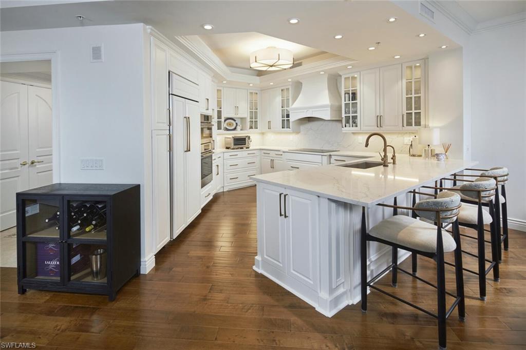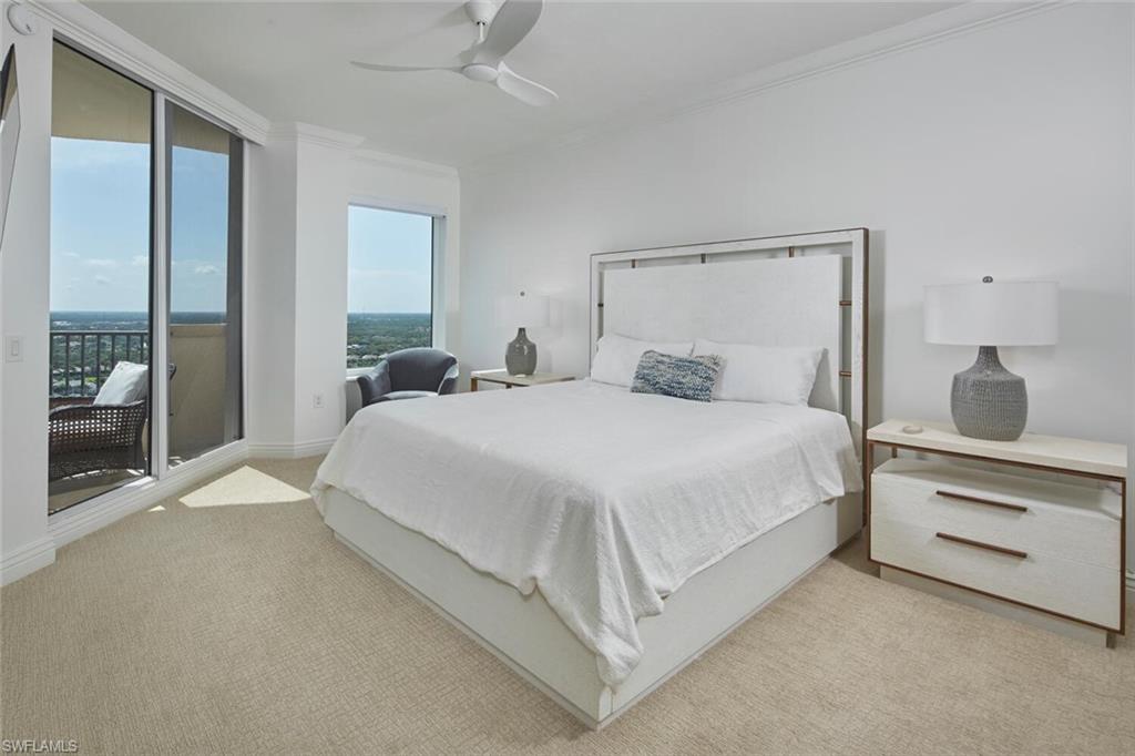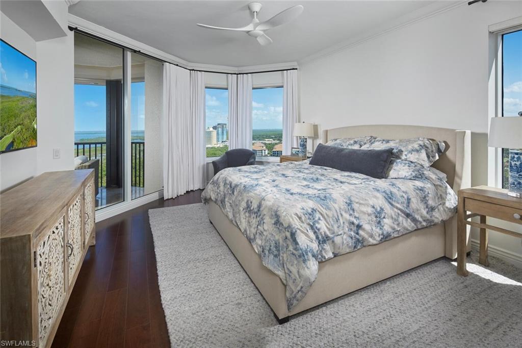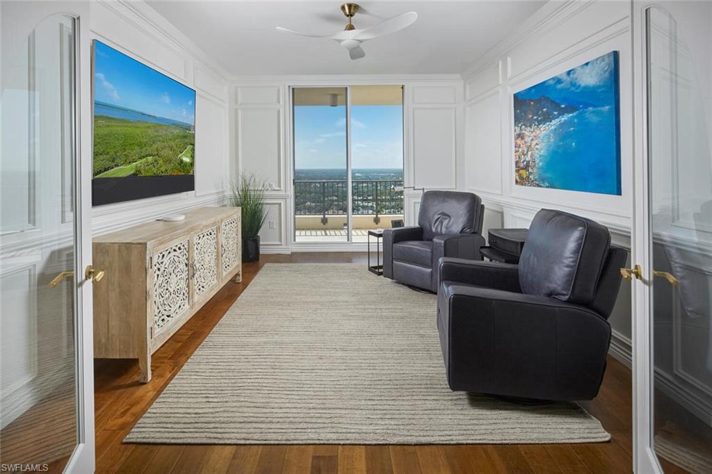 This rare end-unit residence offers an unparalleled perspective of the Gulf and the lush Estero Bay preserve. Spanning 2,661 square feet of meticulously designed living space, the interior is defined by floor-to-ceiling glass and high-end finishes that capture the natural beauty of the Florida landscape from every angle. The updated kitchen serves as the home’s centerpiece with its expansive waterfall-edge quartz island, white cabinetry, and designer gold accents that perfectly complement the rich hardwood flooring. In the master suite, walls of glass provide a serene backdrop, leading to the primary bathroom where a deep soaking tub is perfectly positioned against a picture window for the ultimate relaxation. This versatile floor plan includes three bedrooms plus a den and three full baths, ensuring ample space for both quiet retreats and sophisticated entertaining. The transition to outdoor living is seamless with a large screened lanai for breezy afternoons and sunset cocktails and two additional open terraces that provide the perfect vantage point for morning coffee. Every detail of this residence has been curated to offer a lifestyle of effortless luxury and breathtaking views. Florencia has a striking main lobby, social room, theater, fitness facility and pool. Privacy officer to greet you and your guests and live-in management. Community amenities include the Bay Club on Estero Bay with elegant dining and views, a 34-acre private island beach park and community/tennis center as well as a host of other court sports including pickle ball and bocce, sailing, canoe and kayaking, as well. Golf is optional.