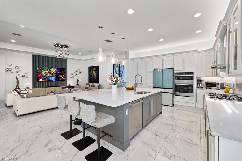 THIS IS IT! If you’ve been looking for your Florida lifelong friends to laugh, connect, and do life with—this is the neighborhood for you. This Move-In-Ready, rarely available Sunrise model is one of the largest homes available in Valencia Trails on one of the best lots. Known for its incredibly social, tight-knit atmosphere, this premier 55+ community offers a vibrant calendar filled with events, gatherings, and even a travel group that takes cruises together. From pickleball and tennis to a resort-style pool, on-site restaurant, cooking studio, and scenic walking trails, you’ll never run out of ways to stay active, engaged, and surrounded by amazing neighbors. And within this sought-after community, 12097 Eucalyptus Way stands out as one of the best values available—perfectly situated on one of the most private lots in the neighborhood, offering a peaceful retreat while still being at the heart of it all. This home also boasts one of the largest entertainment lanais in the community with coveted western exposure—perfect for taking in breathtaking sunset views each evening. Enjoy your own completely private oasis, tucked away with a preserve backdrop, on one of the few streets in Valencia Trails that is entirely backed by preserve for ultimate privacy and tranquility. Step inside and you’ll immediately feel the difference. This home showcases stunning, designer-inspired finishes that are truly second to none. Featuring a gas cooktop, custom refrigerator, gorgeous quartz countertops, and high-end lighting rarely seen in these models, every detail has been thoughtfully elevated to create a space that feels both luxurious and welcoming. This is more than just a home—it’s your invitation to an incredible lifestyle, amazing friendships, and everyday enjoyment in one of Naples’ most exciting communities. Incredible home, incredible neighbors, and unbeatable value—what more could you want?