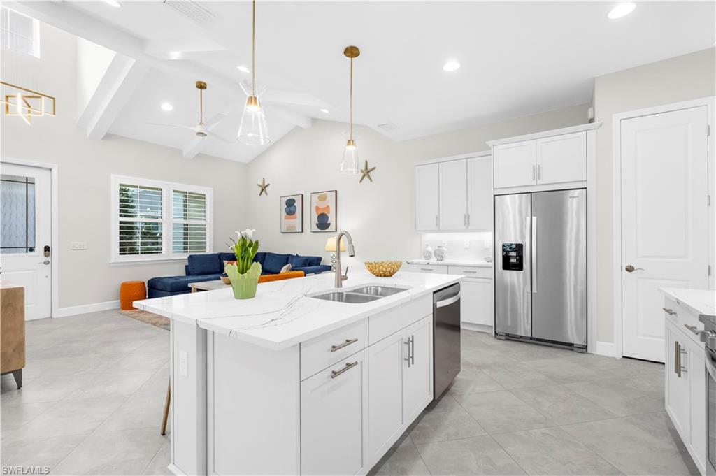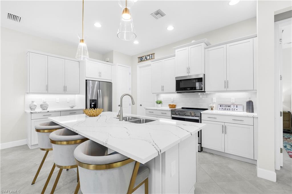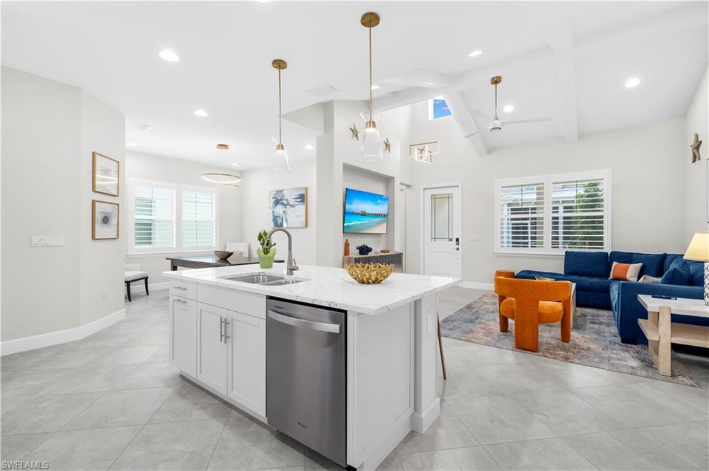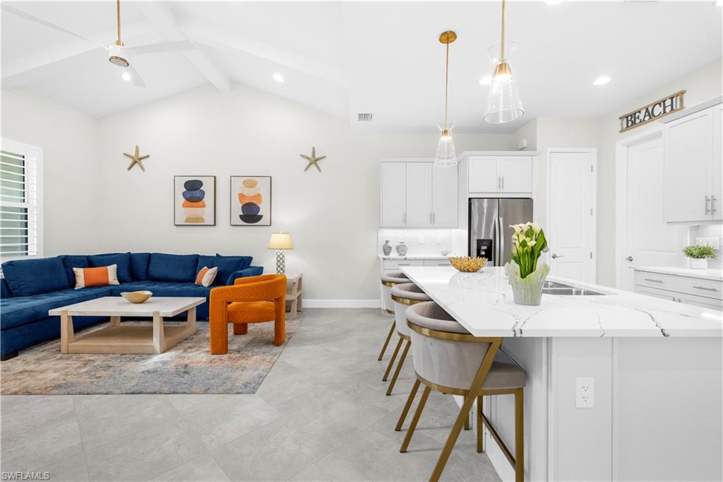 Experience coastal living at its finest in this exceptional Sanibel model cottage, nestled within the serene and highly sought-after gated community of The Isles of Collier Preserve. Nearly new and meticulously maintained, this residence boasts a range of upgrades and distinctive design elements that truly set it apart. The expansive open-concept living area features a spacious gourmet kitchen and formal dining space, creating an ideal setting for both relaxed everyday living and elegant entertaining. Light, bright, and beautifully airy, this coastal-inspired retreat seamlessly blends serenity with sophistication. The chef’s kitchen is equipped with upgraded soft-close cabinetry, sleek quartz countertops, a large storage pantry, an extended oversized island with 3-inch mitered edges, and premium stainless-steel appliances. Additional highlights include vaulted “wood” beam ceilings in the living room, impact-resistant doors and windows, large-format porcelain tile throughout, and custom plantation shutters. Designed with privacy in mind, the Sanibel floor plan has a split bedroom concept. To provide maximum privacy for guests, the primary suite and guest suite are on opposite sides of the home. Step outside to the screened lanai, perfect for morning coffee or evening beverages. The two-car garage with epoxy flooring provides plenty of space for cars and toys alike. The Isles of Collier offers a range of amenities, including an Old-World Florida Clubhouse, fitness center with the best equipment possible, resort-style heat pool, heated lap pool, spa, saunas, tennis and pickle-ball courts, bocce, hiking, biking, kayak launch, dog park. Enjoy an evening sunset cruise along the Cypress Waterway on the Isles’ own electric boat. Looking for social events, look no further than the weekly Isles social calendar. Visit the Isles’ private restaurant, The Overlook Bar & Grill for lunch, dinner, and evening entertainment without leaving the community. Just a short distance from all the Naples is known for: beaches, shopping and world class dining. Call us today to schedule your private tour.