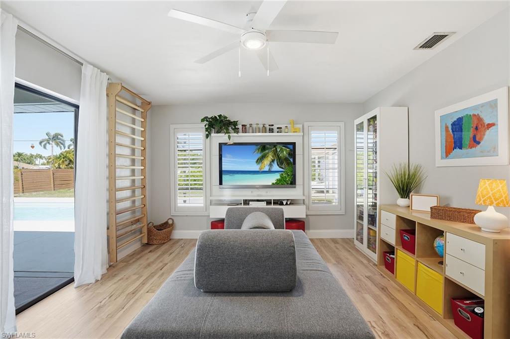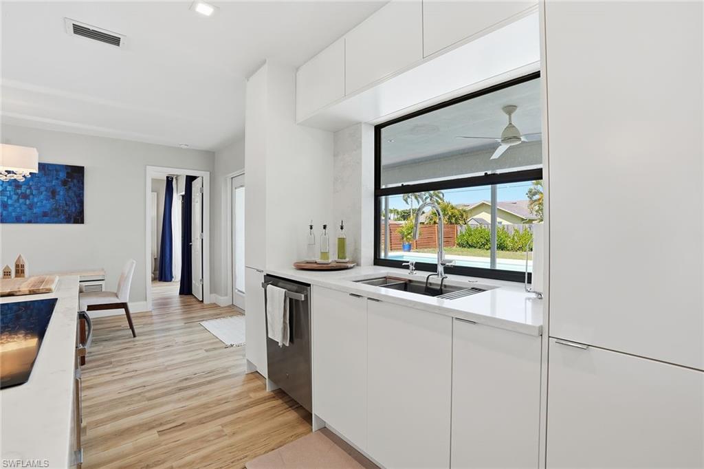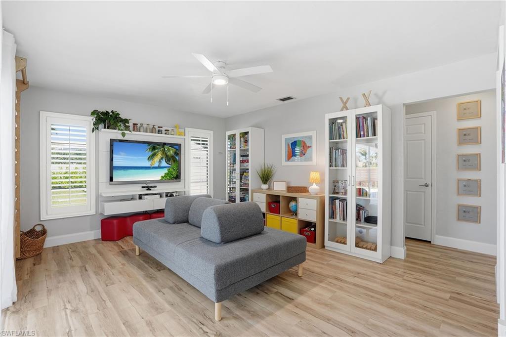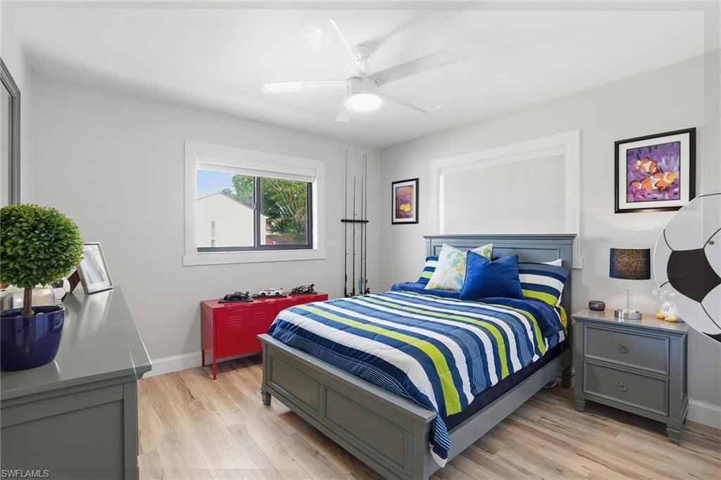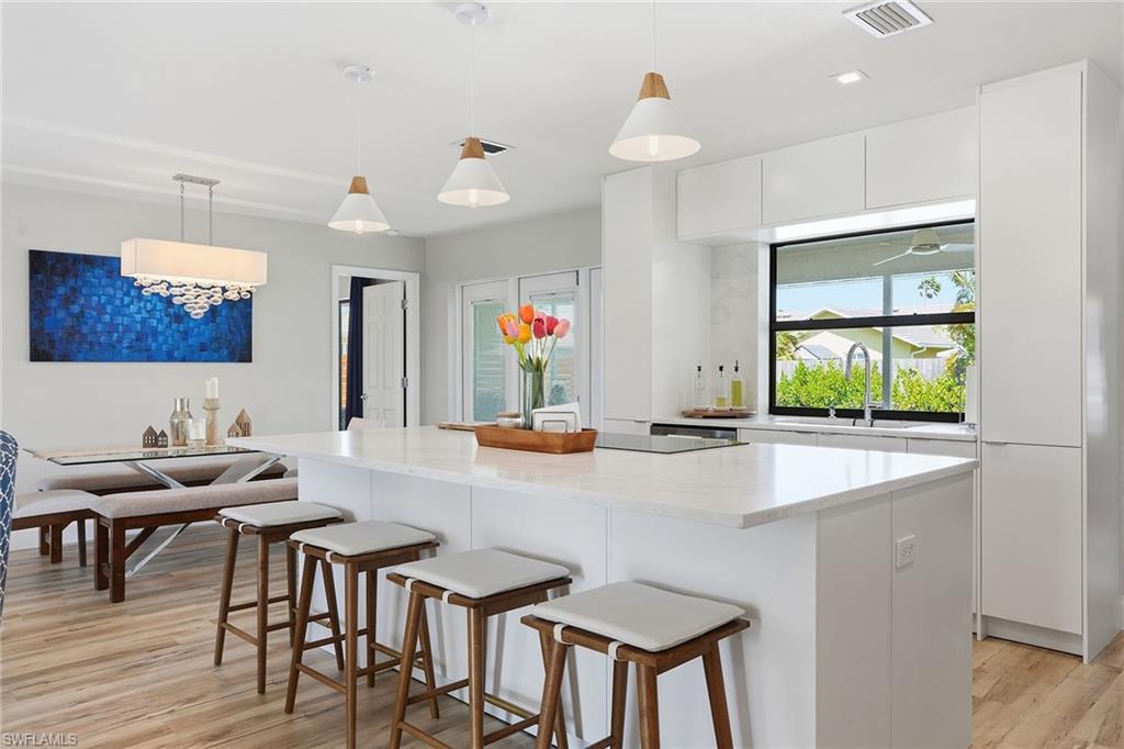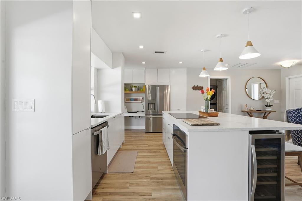 Welcome to this fully remodeled, meticulously kept residence offering thoughtfully designed living space on a .28-acre homesite in the desirable community of Willoughby Acres. This three-bedroom, two-bath home features luxury vinyl flooring throughout, abundant natural light, and an efficient floor plan that maximizes both comfort and functionality. A standout feature is the custom-built, 12x12 detached office/flex space, complete with its own split AC system - providing valuable additional air-conditioned square footage. Ideal for a home office, fitness studio, creative space, or guest overflow, this versatile structure offers the flexibility today’s buyers are searching for and truly sets this property apart. Every detail has been carefully considered, creating a cohesive, move-in-ready living experience. The kitchen is equipped with 2025 GE appliances, a wine refrigerator, and a center island with additional storage - perfect for both everyday living and effortless entertaining. Step outside to enjoy true Florida living with a saltwater pool completed in 2023 and a spacious, fenced backyard offering privacy and plenty of room to relax or gather. Additional highlights include a two-car garage and a prime location just minutes from Gulf beaches, shopping, dining, and within an A-rated school zone.