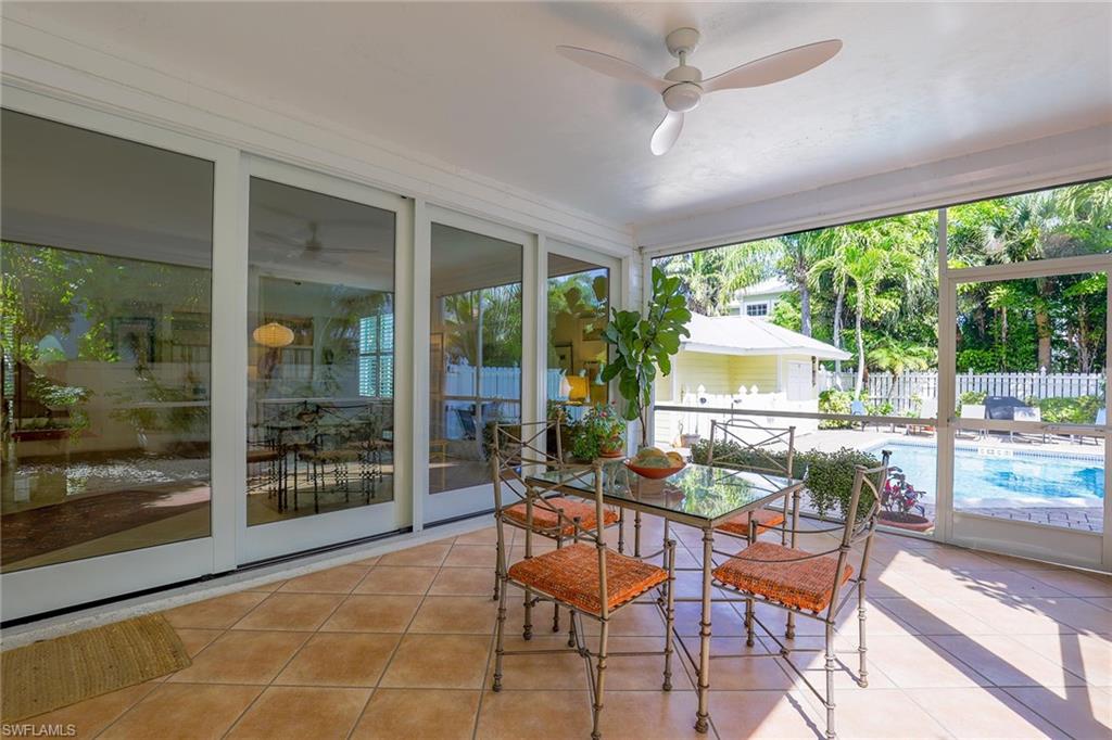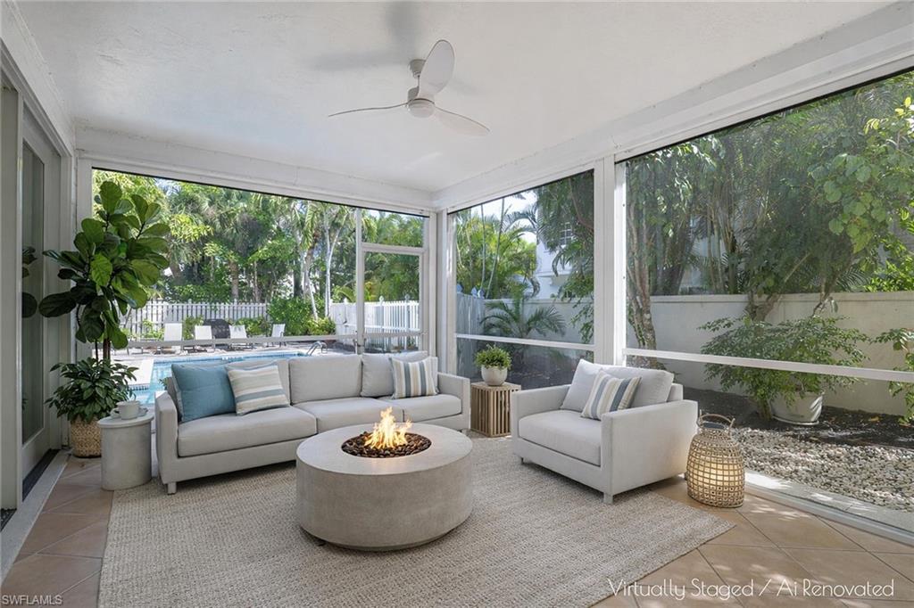 One or more photo(s) has been virtually staged, AI generated or rendered. Nestled in the heart of the highly sought-after Olde Naples neighborhood, this charming 3BR/2BA condo offers the ultimate Florida lifestyle. This spacious first-floor home is idyllically located WEST of 41, just two blocks from the vibrant 5th Avenue shopping and dining district and a short walk to the beach. One of only four units in the building, it provides a rare sense of privacy and serene living. Step out to the large lanai and enjoy direct access and tranquil views of the rarely used community pool—so close it feels like your own. With its warm ambiance and thoughtful layout, it feels like you have entered a single-family residence. Located in an X500 flood zone, this home has not experienced any water intrusion since this owner bought it in 2020. It is also equipped with impact windows and hurricane shutters. This property also comes with a detached one car garage. Arboresque condominiums do not hit the market very often and this property offers the best views of any unit in the building.