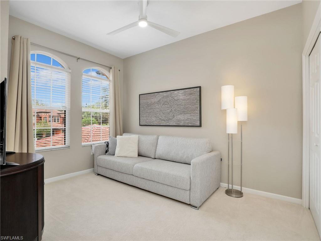 Welcome to The Meadows at Quail Creek Village, where comfort, privacy, and thoughtful upgrades come together in one of North Naples’ most well-located communities. Extensively updated and move-in ready, this second floor, three-bedroom, two-bathroom residence offers 1,547 square feet of living space and a long list of recent improvements. In 2021, the home underwent a comprehensive remodel, including a complete kitchen and bath refresh featuring new quartz countertops, sinks, and faucets, along with all-new high-quality stainless-steel appliances. Additional updates included full interior painting of the walls, ceilings, and doors, as well as new carpeting in all three bedrooms. New ceiling fans and lighting on dimmer switches were also installed throughout the home. A new HVAC system was installed in June 2023, providing energy efficiency and peace of mind for years to come. The community is also scheduled to receive new roofs in January 2027. Positioned on the second floor, the residence benefits from higher ceilings measuring approximately 9 feet 3 inches, creating a more open and airy feel compared to first-floor units. The spacious layout is complemented by a tiled lanai overlooking tranquil green space and water views with western exposure, offering the perfect setting to enjoy Naples’ renowned sunsets. Additional features include hurricane-impact glass for added protection and a detached, extra-long, one-car garage. The extended garage design includes a second door, ideal for a golf cart, additional storage, or flexible use. Located at the end of the street with no through traffic, the property provides a quiet, safe, and private setting. Residents of The Meadows enjoy access to the amenities of Quail Creek Village, including optional membership to a private golf course, along with a large variety of social and recreational offerings. Ideally situated in North Naples, this property offers convenient access to I-75, shopping, dining, healthcare facilities, and of course the Naples world-famous white-sand beaches that make the area so desirable.