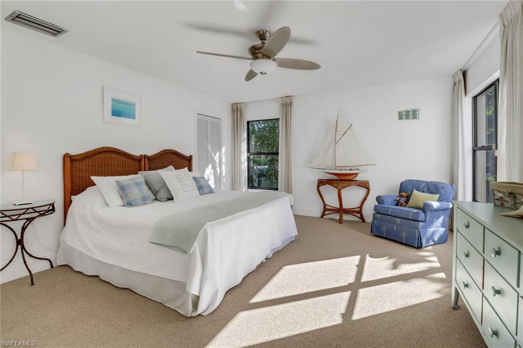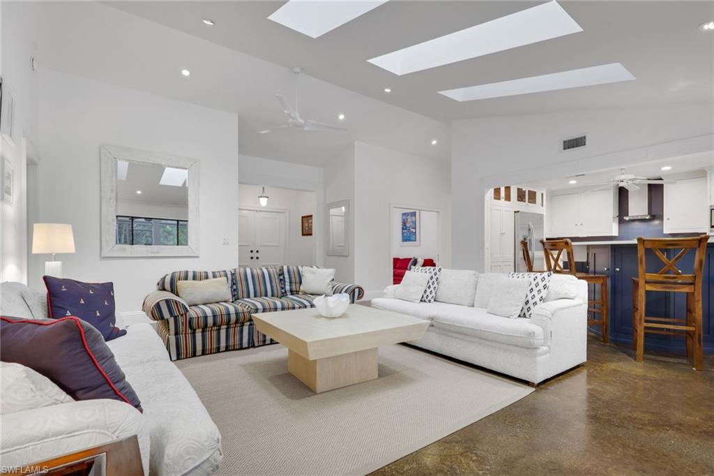 Beautifully remodeled residence outstanding floor plan has been reimagined to include a third bedroom. The residence is situated in the much sought after Woodland's neighborhood in Kings Lake, on the preserve. The Woodlands consist of 45 custom homes, just minutes away from Downtown Naples, 5th Ave South and Naples Pristine Beaches. The homes remodel was inspired by Julian's Interiors of Marco Island and features an impressive great room floor plan with an abundance of oversized windows and sliding glass doors. The vaulted ceilings, with magnificent 8ft. deep skylights flood the living space with natural light. The kitchen is a masterpiece of functionality and style with huge island at its center, perfect for entertaining. The cabinetry is of the highest quality with high end GE stainless steel appliances, deep quartz countertops and under cabinet lighting. There are two large, luxurious updated master suites, each with oversized walk-in closets. In addition, there is a third bedroom. Marble effect polished concrete flooring runs seamlessly throughout the living area of the house. The upgraded lighting incorporates accent lighting in each skylight recess and the floor level in key areas. There are new 7" baseboards throughout, striking millwork, a new impact resistant slider to the front of the house (2026), a new roof 2020 along with many other upgrades. The Sliders and French doors to the rear of the house open onto the oversized travertine tiled lanai which is perfect for relaxing and enjoying the Sunny Southern Exposure. The secluded garden leads directly to the Woodlands Heated Community Pool, a tranquil oasis enclosed by tropical plants and trees, just steps from the house. Residents of Kings Lake enjoy access to beautiful lakes, great walking, jogging and cycling paths, a tennis/pickleball court and mature landscaping. The location offers quick access to Publix Shopping Center, several popular restaurants and many other amenities.