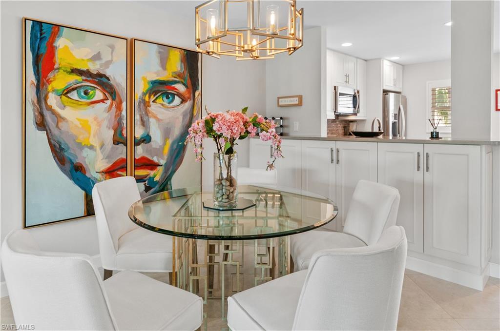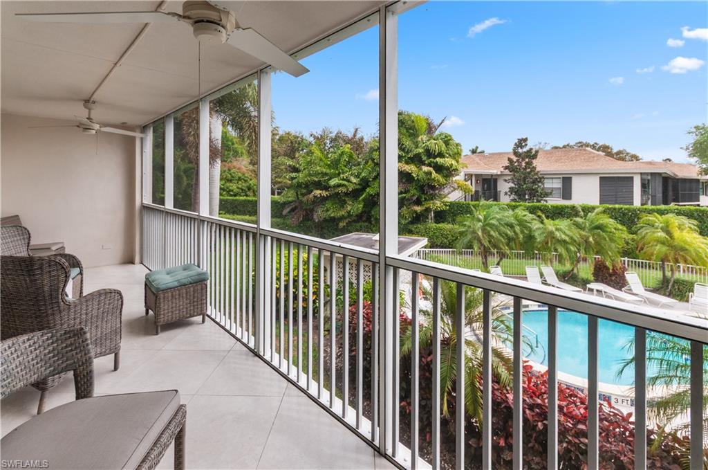 Welcome to Rivera at Moorings. This beautifully remodeled 2 bedroom 2 bathroom condo is updated and turnkey ready. The unit is finished with tile floors, hurricane impact windows and slider doors. The kitchen features solid wood cabinets with quartz counter tops, glass tile backsplash and stainless appliances. Enjoy the private screened in lanai with access from the living room and master bedroom, viewing the pool and lake. This 55+ community is centrally located in Naples and offers an optional membership to the private Moorings Beach. Only minutes from Venetian Village, Waterside shops and Downtown.