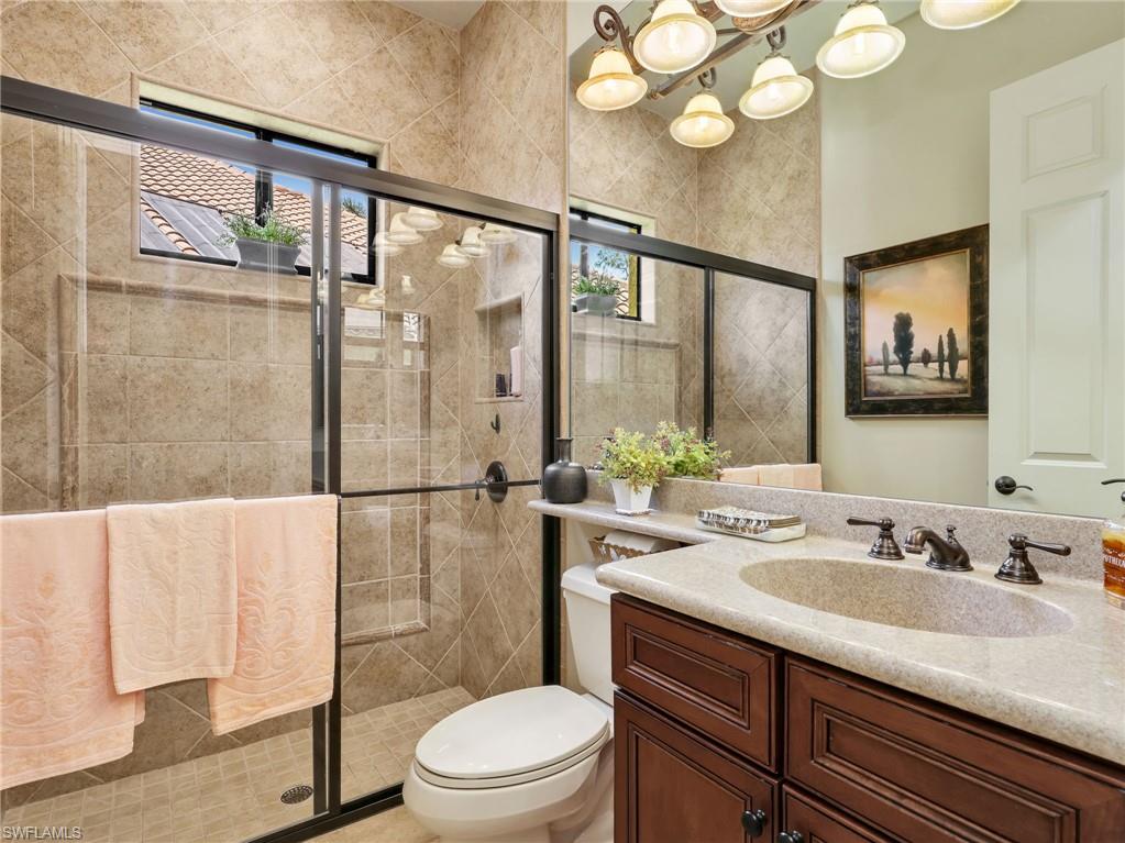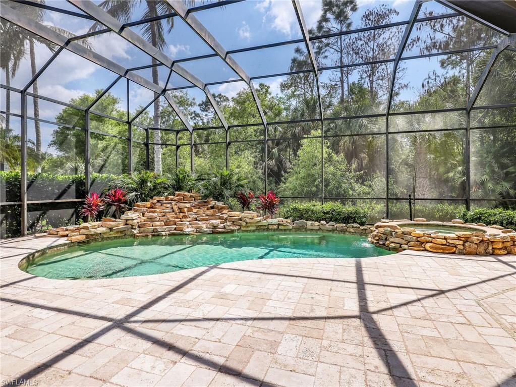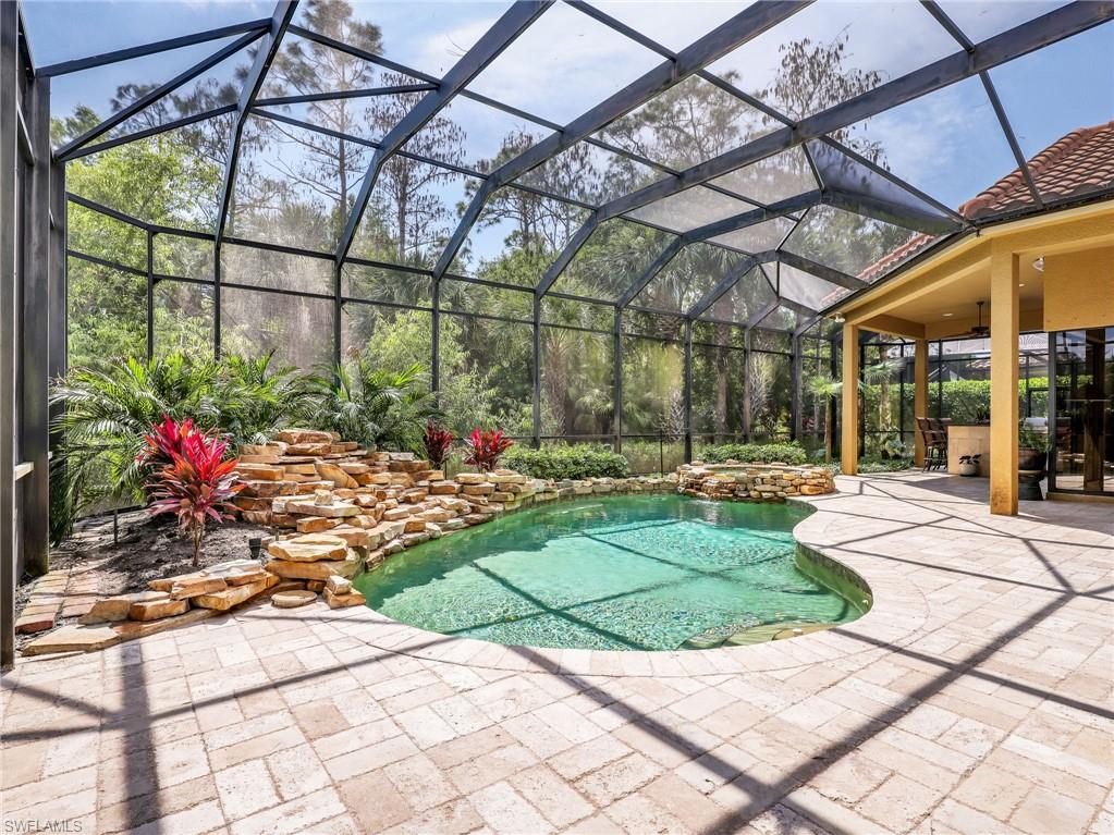 This exceptional Arthur Rutenberg estate home is ideally located within the prestigious Grande Estates at Grandezza, one of Estero’s most exclusive and rarely available subdivisions in the community. Offering a rare combination of privacy, elegance, and resort-style amenities, this residence also provides access to optional golf memberships for those seeking the full country club lifestyle. Spanning over 3,400 square feet, this thoughtfully designed home features 4 bedrooms plus a den, 3 full baths, and a spacious 3-car garage, perfectly suited for both everyday living and entertaining. From the moment you arrive, a grand arched entry with wood, iron, and glass creates a striking first impression, leading into an interior defined by timeless craftsmanship and refined finishes, including tumbled marble travertine flooring, crown molding, plantation shutters, custom built-ins, and detailed coffered ceilings. The open concept great room is both inviting and sophisticated, anchored by a fireplace and seamlessly connected to the gourmet kitchen. Designed to bring people together, the kitchen showcases a large granite island, stainless steel appliances, and a built-in desk, flowing effortlessly into the family room with rich cherry built-ins. Step outside through expansive pocketing sliders to your sun-drenched southern exposure lanai, where indoor and outdoor living come together in a truly resort-inspired setting. This private outdoor sanctuary is designed for both relaxation and unforgettable entertaining, featuring a stunning pool and spa with a cascading rock waterfall, surrounded by lush tropical landscaping that creates a serene and secluded atmosphere. At the center of it all is a fully equipped outdoor summer kitchen, complete with a Jenn-Air grill, refrigerator, sink, and granite countertops, allowing you to host elegant al fresco dinners or casual gatherings with ease. Whether enjoying quiet mornings by the pool, sunset cocktails, or evenings under the stars, this space offers a year-round experience of comfort and luxury. The primary suite is a private retreat, featuring a spa-inspired bath with a sunken Roman tub, glass-enclosed shower, and dual vanities. Guest bedrooms and baths are equally well-appointed, offering comfort and privacy for family and visitors. Situated on an oversized lot with tranquil preserve views, this home provides a rare sense of space and seclusion within a gated neighborhood known for its exceptional amenities, including a clubhouse, dining, fitness center, tennis, bocce, and an active social lifestyle. Furniture is negotiable with select exclusions, presenting a move-in-ready opportunity. Homes in Grande Estates at Grandezza rarely become available. This is your opportunity to own a refined estate property in one of Estero’s most sought-after luxury subdivisions.