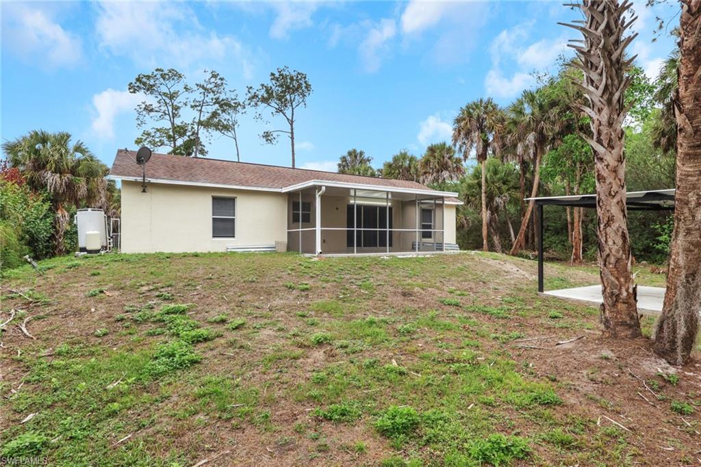 One or more photo(s) has been virtually staged, AI generated or rendered. Welcome to your private slice of paradise in Golden Gate Estates! Situated on 1.59 acres of serene, wooded land, this 3-bedroom, 2-bathroom home with a 2-car garage offers the perfect blend of space, privacy, and everyday comfort. NEW ROOF installed in 2020, providing peace of mind for years to come. Set back from the road with a long driveway and surrounded by natural Florida landscape, this property delivers the peaceful lifestyle buyers are searching for, while still being just a short drive to shopping, dining, and all that Naples has to offer. Inside, you’ll find a bright and functional layout featuring tile flooring throughout, a spacious living area, and a beautiful kitchen with granite countertops, plenty of cabinets, and a brand new refrigerator that was just installed. This home offers an open floor plan with split bedrooms for privacy, generous closet space, and plenty of natural light. Step outside to enjoy the screened-in lanai overlooking your expansive backyard, ideal for relaxing, entertaining, or adding a pool, there’s plenty of room for toys, a workshop, or future expansion. Whether you’re looking for space to spread out, room to grow, or a quiet retreat away from HOA restrictions, this property checks all the boxes. No rental restrictions. Don’t miss this opportunity to own acreage in one of Naples’ most desirable non-gated areas! One or more photo(s) has been virtually staged, AI generated or rendered.