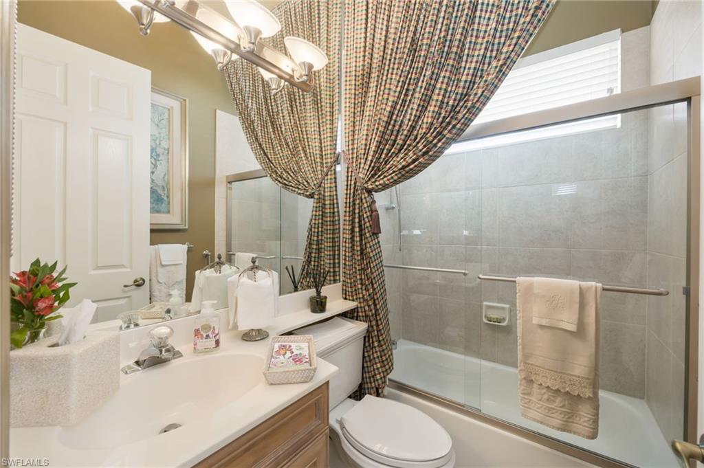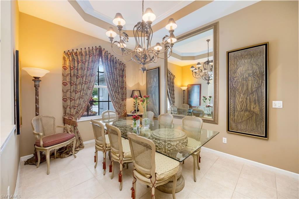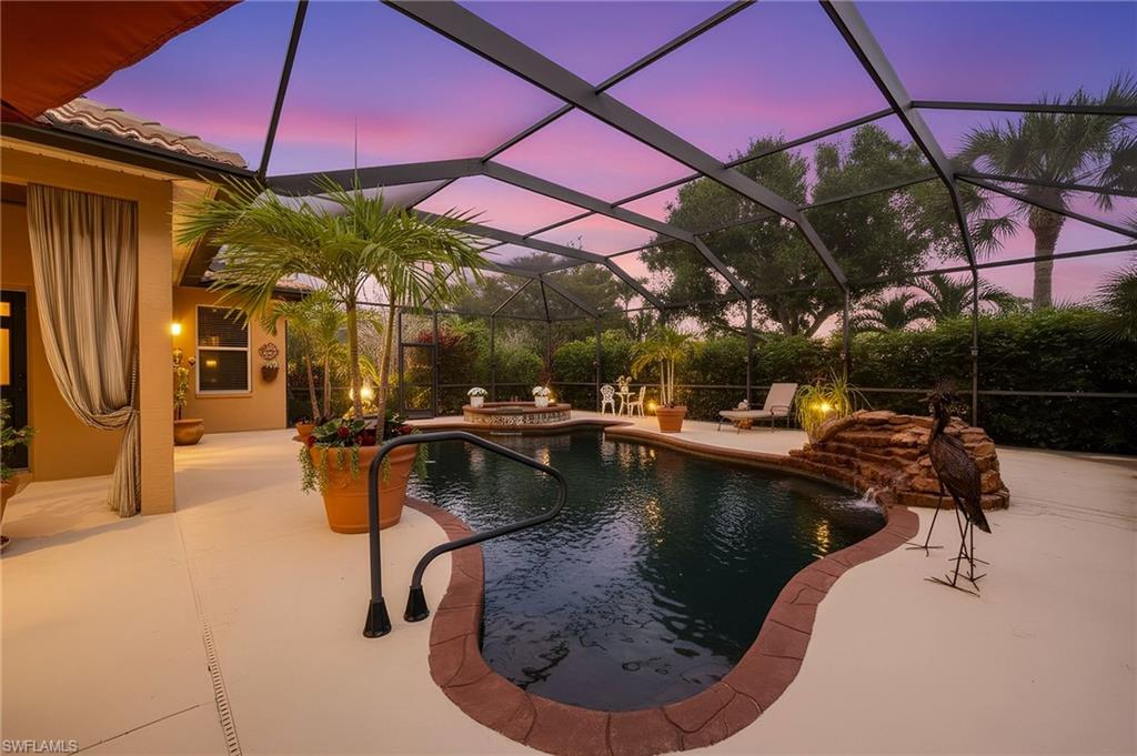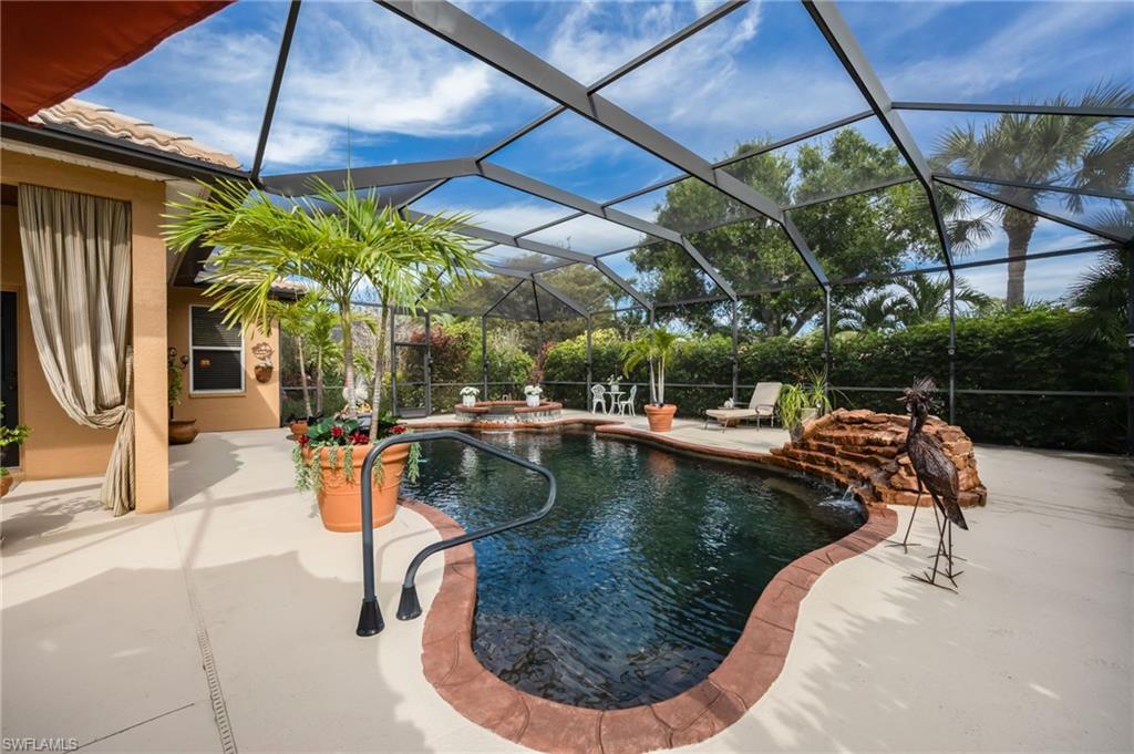 One or more photo(s) has been virtually staged, AI generated or rendered. This Estate Home offers Old World charm with every modern convenience in one of Naples' most sought-after luxury gated communities. The rarely-available Magnolia floor plan truly offers the ultimate in refined living --- with 4 spacious bedrooms and 3 full baths, family and guests will enjoy luxurious accommodations fit for royalty. At the heart of the home, the French-styled kitchen features rich granite countertops, stainless steel appliances, a gourmet prep island, and an adjacent breakfast nook for cozy coffee-time overlooking the pool and lanai. The kitchen overlooks a warm and casual family room, which flows seamlessly into the more formal living areas. The Living Room with fireplace has space for a grand piano, and the separate dining room will accommodate a banquet style dining table --- allowing the ultimate in elegant entertaining. What sets this home apart is the exceptional outdoor living space, adding another 1400 square feet to this estate home. You'll enjoy a gourmet outdoor kitchen and grill, and plenty of room for dining or lounging beside the beautiful saltwater pool and spa. The onyx-colored basin and rock garden waterfall, and surrounding mature trees, create the feeling you've stepped into a serene forest with your own private swimming pond fed by a natural spring. Beyond the lanai, landscaped paths lead to private green spaces on the banks of the lake--- perfect for gardening and relaxing, or watching the children or grandchildren play. (For a list of all the upgrades to this elegant estate home, check the Supplements.) Located within the gated community of Autumn Woods, residents enjoy access to a clubhouse, fitness center, resort-style pool, pickleball and tennis courts, basketball, playground, and more—all just minutes from top-rated schools, Gulf beaches, and premier shopping and dining at Mercato and Waterside Shops. This home offers a rare blend of luxury, convenience, and community amenities, in an unparalleled and beautiful natural setting. Don’t miss your chance to own this exceptional property in one of Naples’ most cherished neighborhoods. (The twilight exterior photos have been virtually staged, AI generated or rendered.)