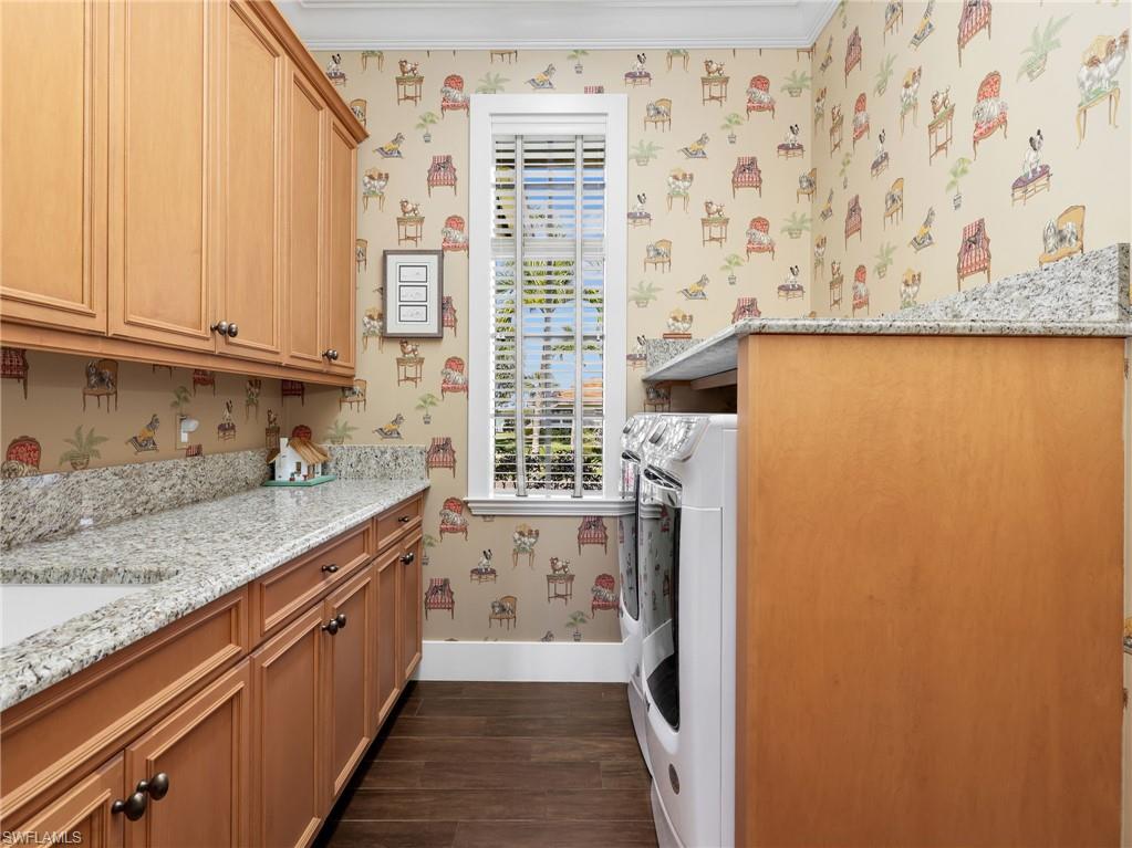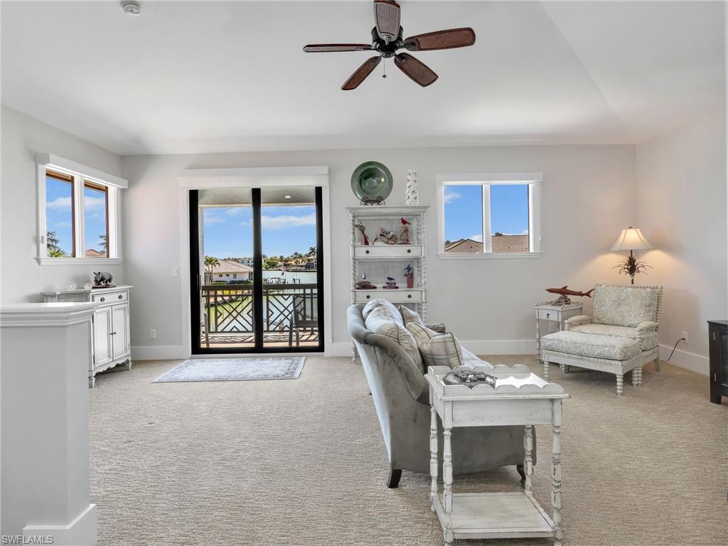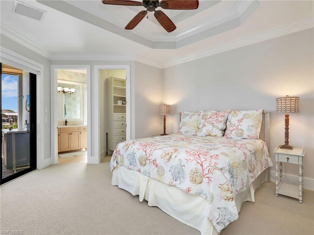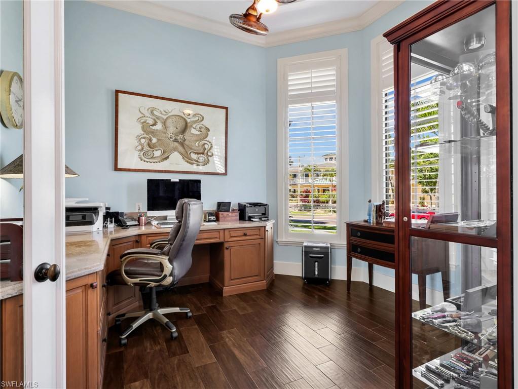 One or more photo(s) has been virtually staged, AI generated or rendered. Exquisite Waterfront Estate Direct Gulf Access and Southwest exposure. This lavish designer furnished waterfront residence offers panoramic wide water views with quick deep water access to the Gulf, no bridges required. A true boater's dream, this home delivers luxury, comfort, and coastal elegance in every detail, where dolphins, manatees, and tropical fish are your daily neighbors. Step through the grand double doors and be greeted by a dramatic wall of windows framing the sparkling heated pool and spa, blending the beauty of the bay beyond. The open concept design fills the home with natural light, custom Hunter Douglas programmable window shades. This 3-bed, 2 den/office, + flex room, 3.5-bath home with a huge 3-car garage is designed for island living. The chef's kitchen takes center stage with granite countertops, a spacious island, upgraded appliances, built-in desk, walk-in pantry, and breakfast bar are oriented to capture magnificent waterfront views. Every bedroom offers en-suite bath and walk-in closets, ensuring ample storage and comfort for family and guests. Entertain on the spectacular outdoor living area, perfect for al fresco dining, entertaining friends and family, or relaxing evenings watching the sunsets. Outside, the boater's amenities are second to none! With 75 ft of seawall, spacious dock, fish cleaning station, and 12,000 lb remote controlled boat lift, launch your boat for a day of fishing or a sunset cruise straight to the Gulf, no limits! Added highlights: remote-controlled hurricane shutters and electric roll down screens across the lanai, underground propane tank (500gal) servicing the new Generac generator, and Halo whole house water purifying system. The primary bedroom suite offers a private retreat with lanai access, a spa-inspired bath with dual sinks, soaking tub, walk-in shower, and his & hers closets. Upstairs your guests will enjoy incredible views from the private covered balcony, family room with wet bar, and spacious en-suite bedroom. 2nd Guest suite has gorgeous water views and has en-suite bath that can also be accessed from the lanai as a convenient pool bath. The laundry room features new WiFi Maytag washer and dryer, utility sink, and custom cabinets. The entire home has impact glass and electric roll down shutters on the front door, back lanai, and upstairs sliders. The huge 3 car garage features remote controlled garage screened doors, storage cabinets, refrigerator, and side door leading directly to the dock - perfect for storing fishing, beach/boating, or kayak gear, doubling as a flex space for your pets, hobby area, or garden workspace. This residence captures the very best of coastal Florida living!