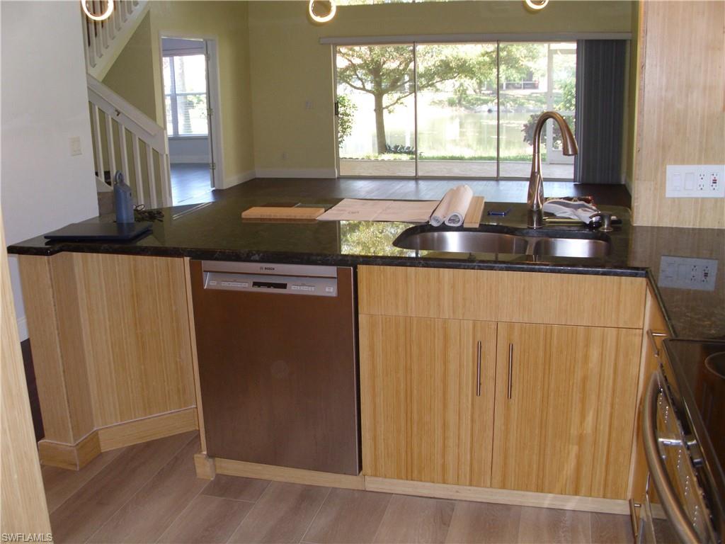 4833 Europa Drive at the World Tennis Club (WTC) is a single family home on its own lakefront lot in a tranquil location. Featuring 15 tennis courts, and 4 pickleball courts, 2 pools, hot tub, sauna and Cafe, all about a 5-10 minute walk. This thoughtfully updated home features a fully modern kitchen with Volga Blue granite countertops, surrounded by abundant storage. The custom cabinets and drawers are crafted from natural colored, and distinctive grained bamboo, with birch interiors and Blum soft-close hinges and drawer glides. Well located, newer appliances save steps. There is kitchen access from both the front entry door, and the attached 2 car garage. Adjacent to the kitchen is a laundry room with wall and pantry cabinets for more storage. Aside the laundry room is a half bath with bamboo walls, red granite countertop and silvery appearing textured framed old styled mirror, providing warmth to the room. Everyone's complexion looks better in it's light. The kitchen commands a westward view through the vaulted-ceilinged great room with dining and leisure areas to the spacious "picture window" screened lanai. The Lanai is shadowed by the sterile "Shady Lady" olive tree, (Sorry, no fruit) then leading to the lake beyond where turtles bask along the shoreline, on sunny days. Find your inner peace and calm your mind, with or without a beverage. Completing the downstairs, the generously-sized master bedroom suite with a lake view are two separate California Closets. One is a large walk-in. The Master bath features a walk-in shower, wheel chair accessibility and a 48x12 bench seat, topped with an exotic blue quartz, matching the double vanity. The southern exposure of the translucent window positively glows on a sunny day, highlighting 5 different glass textures in the geometric pattern. More warm ambiance for your soul! Upstairs finds two more bedrooms, sharing a "Jack and Jill" full bathroom. View sunrises in one bedroom, and sunsets in the other. The bathroom features an exquisitely patterned "Rain Forest" marble countertop plus a frameless glass sliding door atop the new tub. Bronze-toned hardware, an intricately patterned mirror, and wall tile that complements the countertop, and bronze motif. The warm lighting is augmented by small south-facing translucent casement window for adding natural light to the room. Relaxation! Fairly priced for immediate occupancy.