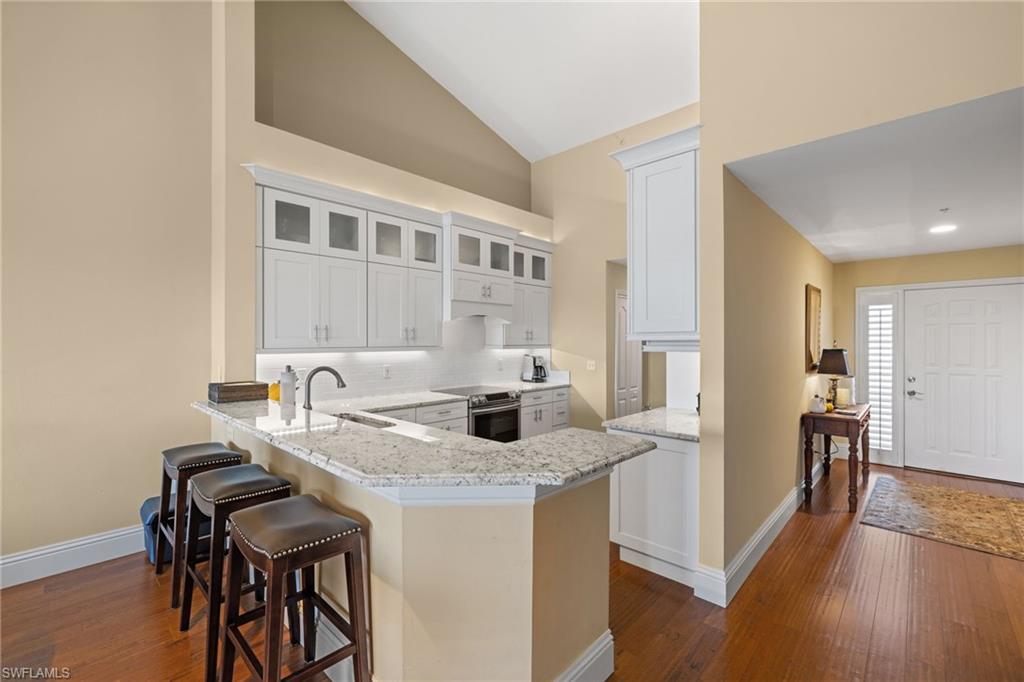 Immediate Full Golf Membership to Windstar on Naples Bay available with purchase! (Separate fee) Beautifully updated 2-bedroom + den, 2-bath top-floor condo in Windward Cay at Windstar on Naples Bay, offering exceptional views of Windstar’s 7th fairway and desirable southwest exposure. This spacious residence features soaring ceilings, rich wood flooring throughout, and a stunning renovated kitchen with high-end appliances, crisp white shaker cabinetry, and granite countertops. Both bathrooms have been tastefully updated with modern finishes, creating a refined coastal aesthetic throughout. Offered furnished for a seamless, move-in-ready experience. The private single car garage provides added convenience and valuable storage. Windward Cay offers community elevators, a sparkling pool with a large sun deck, well-maintained buildings, and lush tropical landscaping. Windstar offers exceptional amenities including a Tom Fazio–designed golf course, newly redesigned clubhouse with sweeping views of Naples Bay, 72-slip deep-water marina with direct Gulf access in under ten minutes, clay tennis courts, bocce ball, state-of-the-art fitness center, and private Windstar boat shuttle to Keewaydin Island’s white sandy beach featuring a shaded pavilion, restrooms, kayaks, and exceptional shelling & fishing!