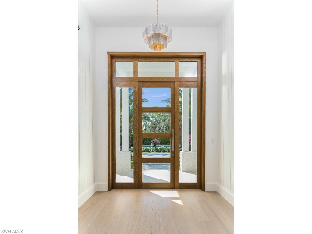 Nestled on one of the most desirable and least-traveled streets in Coquina Sands, this newly completed residence expertly constructed by Coleman Companies offers a rare opportunity to own a refined, single-level estate in the heart of Naples. Set on a substantial homesite, one of the hallmarks of this coveted neighborhood, the property delivers both privacy and expansive indoor-outdoor living. Spanning approximately 5,047 square feet under air, the home features four bedrooms plus a club room/den, all thoughtfully designed on one level. Architectural elements such as tabby mortar, extensive millwork and wood detail, wide-plank wood flooring, and transom windows complement the home’s clean lines and abundant natural light. The great room serves as the centerpiece, seamlessly connecting to the outdoors and creating an effortless flow for entertaining. The well-appointed kitchen features dual islands, Ruffino cabinetry, and is complemented by a large butler’s pantry with impressive supplemental refrigeration, appliances and storage, ideal for hosting. Outdoor living is equally impressive, with a covered lanai featuring a fireplace, outdoor kitchen and bar, and a spacious dining area. The expansive backyard includes an extraordinarily large pool, abundant deck area for outdoor activities, a firepit, and lush green space, offering a truly private retreat. Additional highly sought after highlights include four garage bays, generator, circular driveway, dual washer/dryer laundry room, outdoor shower, and a finished floor elevation of 14’ (per elevation certificate). Ideally located near the beaches of Naples and Lowdermilk Park, as well as the dining, shopping, and cultural offerings of downtown Naples, and in close proximity to the Four Seasons Resort Naples Beach Club, this residence embodies the very best of the Naples lifestyle.