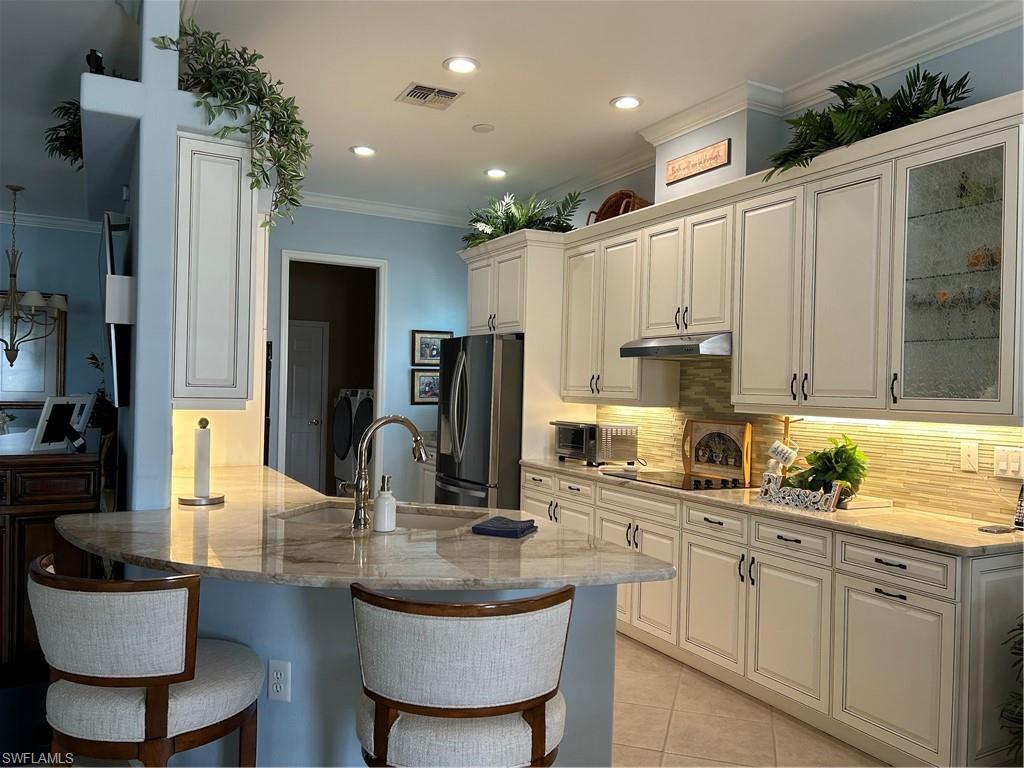 Lovely home completely updated! New Anderson high impact windows in 2023, Kitchen all done with new cabinets and counter tops, washer and dryer 1 year old. Hurricane electric roll down shutters on lanai, surround sound, master bedroom has shelving and cabinets, Crown molding through-out. New roof in 2019, garage has cabinets for storage. Garage flooring being painted. Partly furnished. The home has had a maintenance agreement on since they purchased it. Completely move-in ready !!! Located in Cypress Woods Golf Country Club where you can meet lovely people and have fun at the Clubhouse!