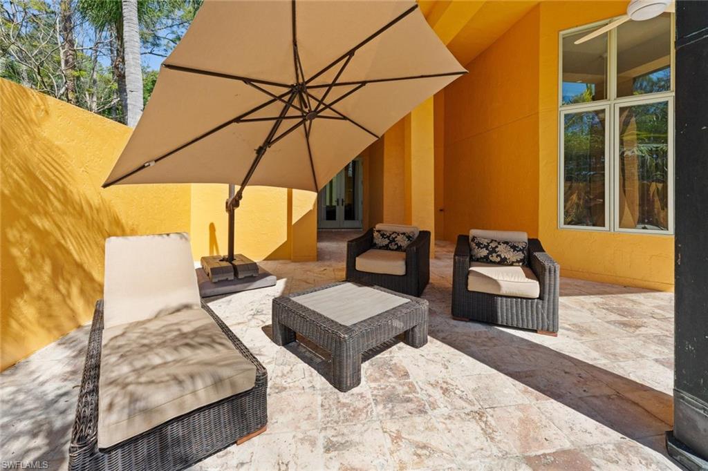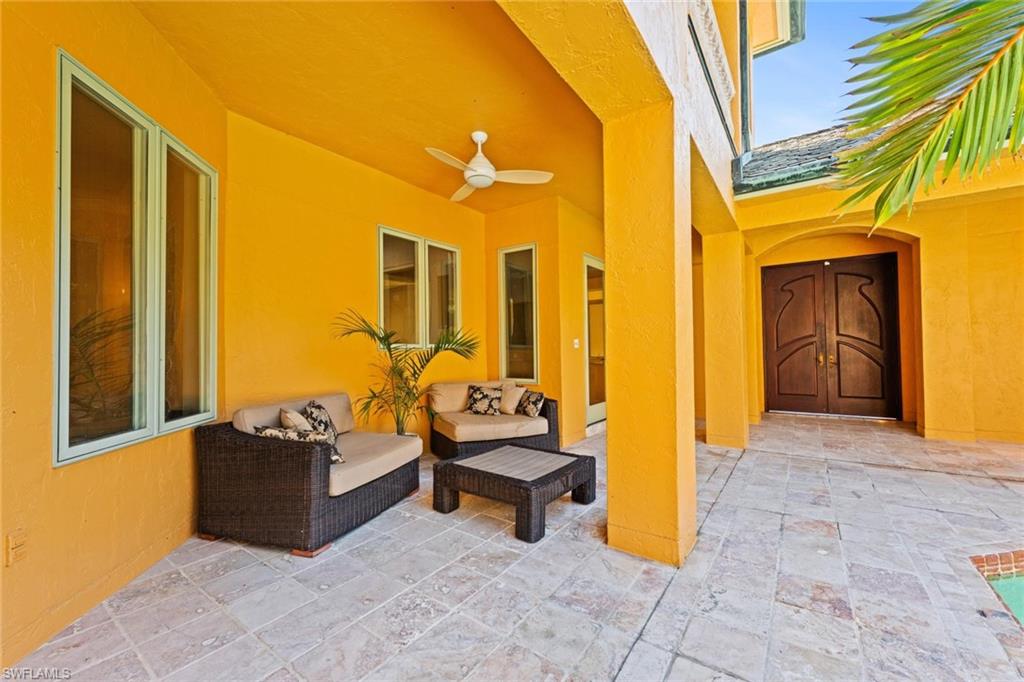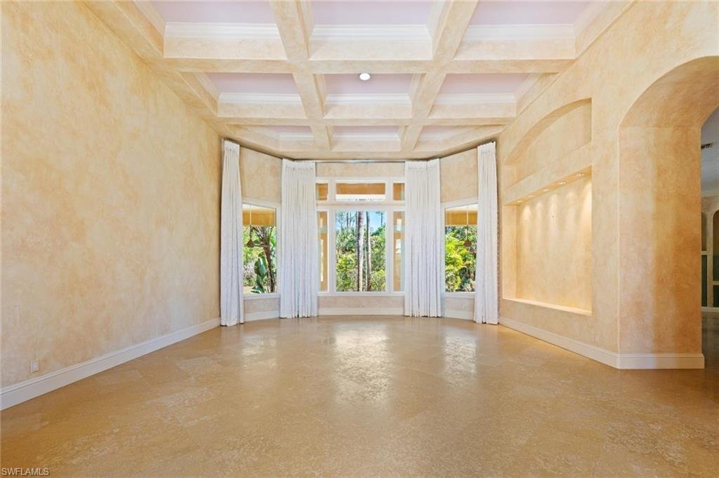 There are homes you visit, and then there are estates that quietly feel like an escape from the ordinary. Set behind lush tropical landscaping on three private acres, this Mediterranean inspired residence offers an exceptional blend of space, privacy, and the relaxed elegance that defines Southwest Florida living; surrounded by 150 palm trees and a raised garden bed. Expectations build as you peruse down the private road leading to this exceptional estate. Spanning approximately 7,600 square feet, the two-story home welcomes you with dramatic 15-foot ceilings, classic architectural details, and interiors filled with natural light. Travertine flooring runs throughout the main living areas, reflecting the sunlight that pours in through oversized windows and glass doors, creating a warm and inviting atmosphere throughout the home. The residence offers four generously sized bedrooms, four bathrooms, a private office, and an additional flex room that can easily serve as a fitness space, media room, or guest retreat. Every space has been designed to provide comfort, flexibility, and the ability to accommodate both quiet everyday living and larger gatherings with ease. The main living areas flow naturally toward the outdoor living spaces, where the home truly captures the spirit of Florida living. A separate casita flows around the pool area and feels like a private resort, surrounded by mature landscaping and open skies. It is a place for long afternoons in the sun, evening dinners outdoors, and peaceful mornings when the only sounds are rustling palms and distant breezes. While the setting feels private and secluded, the property is located only fifteen minutes from the white sand beaches and turquoise waters of the Gulf. Residents enjoy the rare advantage of estate style living while remaining close to Naples' renowned beaches, restaurants, shopping, and cultural attractions. Additional features include a three car garage and a full house Generac generator, providing comfort and peace of mind throughout the year. For buyers arriving from colder climates or from abroad, this home represents something truly special. It offers space to breathe, sunlight throughout the year, and the lifestyle that draws so many people to Southwest Florida. intentionally positioned below market expectations for an estate of this size, acreage, and location. There are no governing HOA or deed restrictions. It represents a rare opportunity to acquire a luxurious Naples property that combines privacy, scale, and proximity to the Gulf. This is Naples living at its most refined, where space, light, and tropical surroundings come together to create a home that feels both elegant and welcoming.