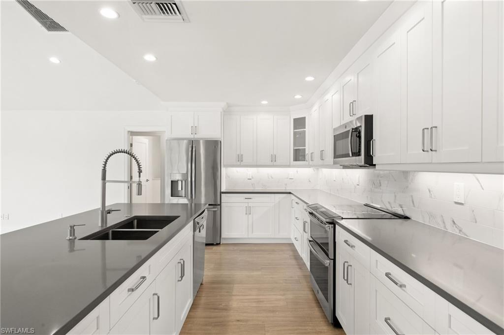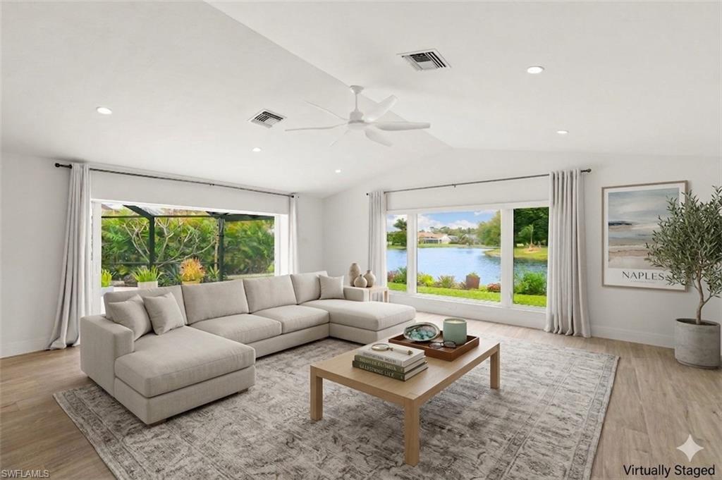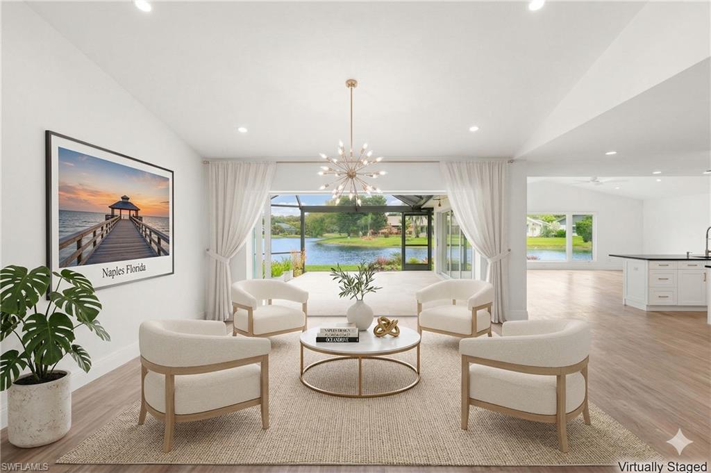 One or more photo(s) has been virtually staged, AI generated or rendered. Consider this the "chef’s kiss" of Naples coastal living—a perfectly executed blend of modern luxury and tranquil serenity at 2178 Pine Woods Circle. This masterfully remodeled single-family home blends high-end architectural details with the ultimate "lock-and-leave" security. From the iconic red front door to the glistening long lake views, every inch of this property radiates a fresh, contemporary energy. The open-concept floor plan is anchored by vaulted ceilings and flooded with natural light from an abundance of new hurricane impact windows. The chef-inspired kitchen flows seamlessly into the living areas, making it an entertainer’s dream. The Primary Suite is a true sanctuary featuring a spa-grade ensuite with a separate soaking tub and steam shower. Every closet is outfitted with custom wood shelving, and the oversized two-car garage features fresh epoxy floors. Outside, enjoy the Florida breeze under your new 2024 screen enclosure with a portrait screen for unobstructed, panoramic lake vistas. The exterior is a "tranquil escape," featuring a paver circular driveway, twin palms, and a curated succulent garden. Located in the sought-after Pinewoods neighborhood, you are minutes from top-rated Naples schools and luxury shopping at Waterside Shoppes, and Vanderbilt Shoppes. This home offers rare financial and structural advantages: New 2024 Roof & Full Hurricane Impact Protection a whole home surge protector and generator transfer switch (generator included). And High-Value Ownership: Low HOA fees and located in a No Flood Insurance zone. Come see why this is the most compelling real estate opportunity in Central Naples. *One or more photo(s) has been virtually staged, AI generated or rendered.