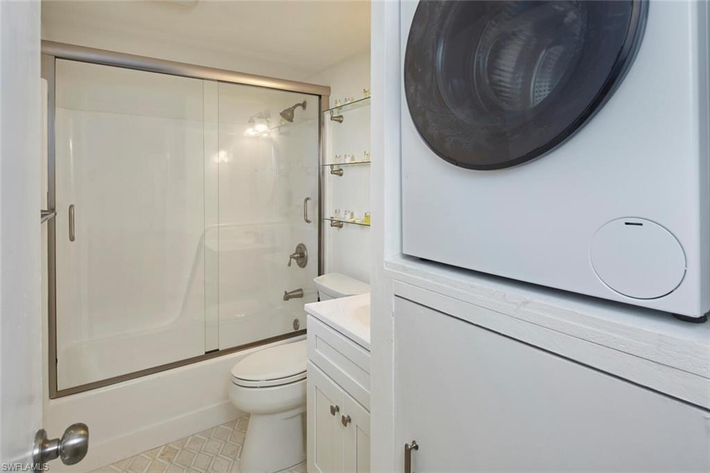 Experience coastal living at its finest in this beautifully updated 10th-floor studio efficiency across the street from Bonita Beach. Boasting stunning northwest-facing views, this top floor unit captures breathtaking sunsets over the Gulf of America and peaceful serene views of Fish Trap Bay. This turnkey residence has been thoughtfully upgraded, featuring hurricane-impact windows and slider door for peace of mind, along with a newer A/C and water heater (just 2 years old). Inside, you’ll find stylish vinyl Peruvian Walnut flooring, fresh paint throughout, and a bright, modern feel. The kitchen is equipped with new appliances, granite countertop and white shaker soft close cabinets. While the updated bathroom includes a new vanity and floor tile for a clean, contemporary look. Rounding out of the list of upgrades include new ceiling fans, shelving systems in the closets, plus a convenient in-unit washer/dryer combo adds to your everyday ease. Building modifications have been in full swing with new roofs, complete concrete restoration, freshly painted exterior, new generators and more! Amazing location just steps from the beach and several restaurants, shops and parks at yor fingertips. Whether you’re looking for a beachside retreat, investment property, or low-maintenance getaway, this move-in-ready condo offers comfort, style, and unbeatable views from high in the sky in a prime location!