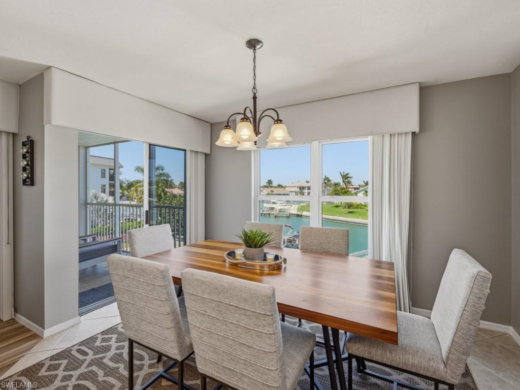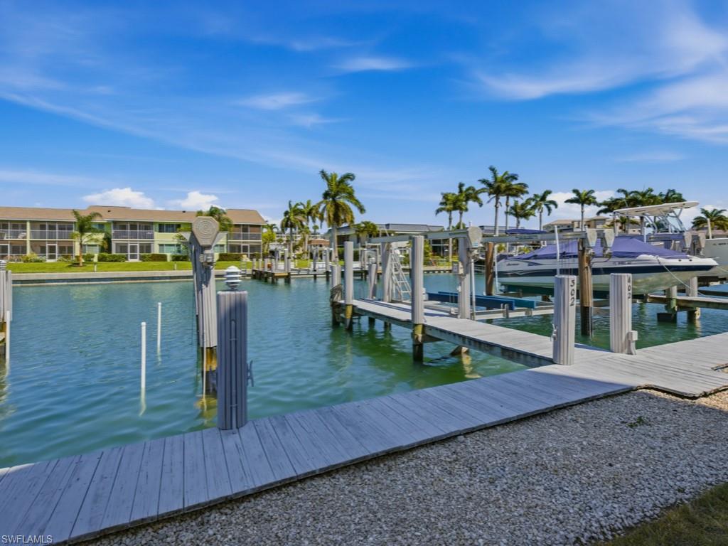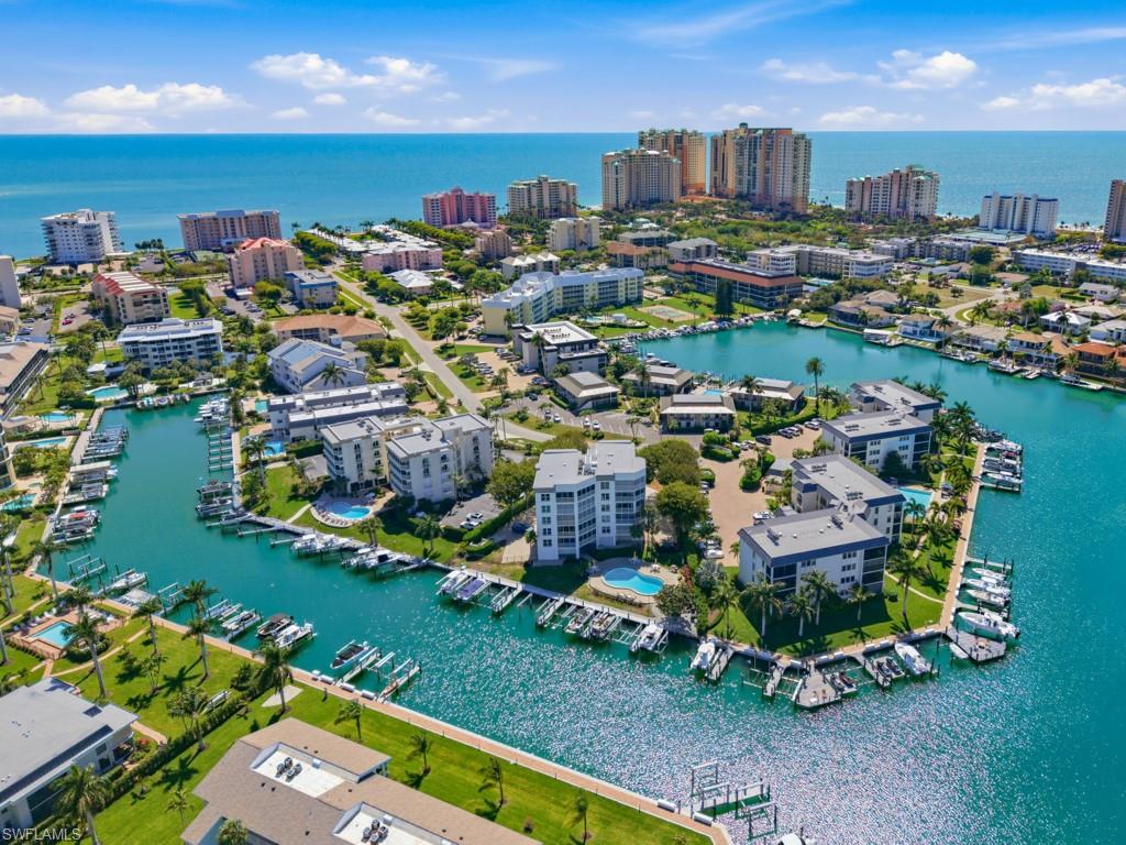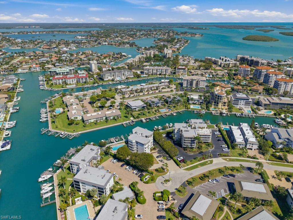 SUPER CLOSE TO THE BEACH! DOCK! 3 BEDROOMS! Beautifully maintained three-bedroom condo on the quiet end of a cul-de-sac near Marco’s desirable South Beach. Includes an assigned dock, extra storage and covered parking, plus intersecting canal views from the preferred south side of the building. The open floor plan offers wrap-around lanai access from multiple sliders, with space to dine and relax over the water. Upscale furnishings and neutral décor throughout. Updated kitchen with newer appliances, granite counters and generous storage. Approx. 1-year-old A/C and brand-new washer/dryer. All bedrooms feature plush bedding and a balcony. Recent updates include roof and exterior paint (2 years) and pool/decking/landscaping redone after Ian (no water the building from Ian). SIRS and Milestone inspections are complete, and the driveway has new pavers. Come see it and start your Marco lifestyle.