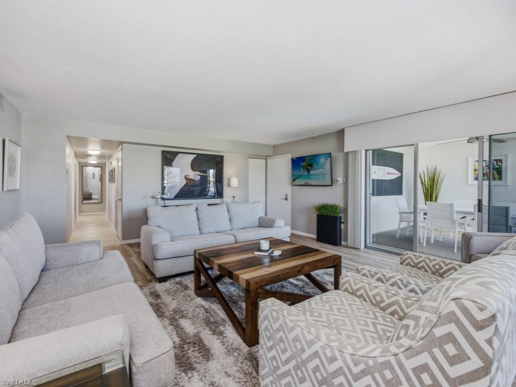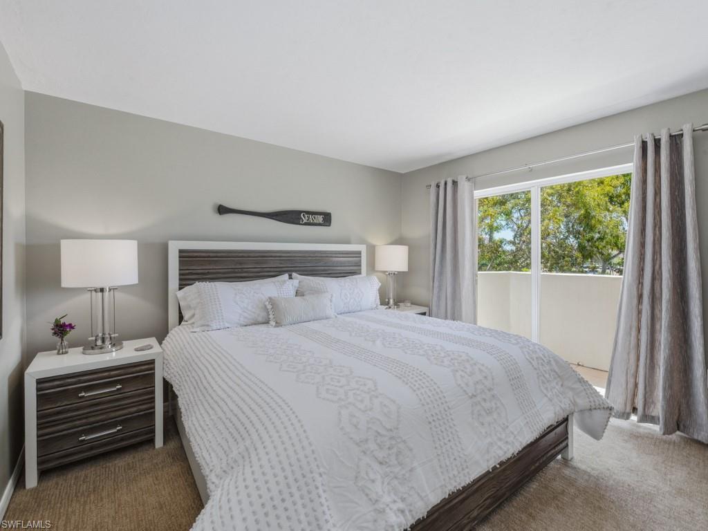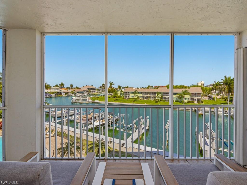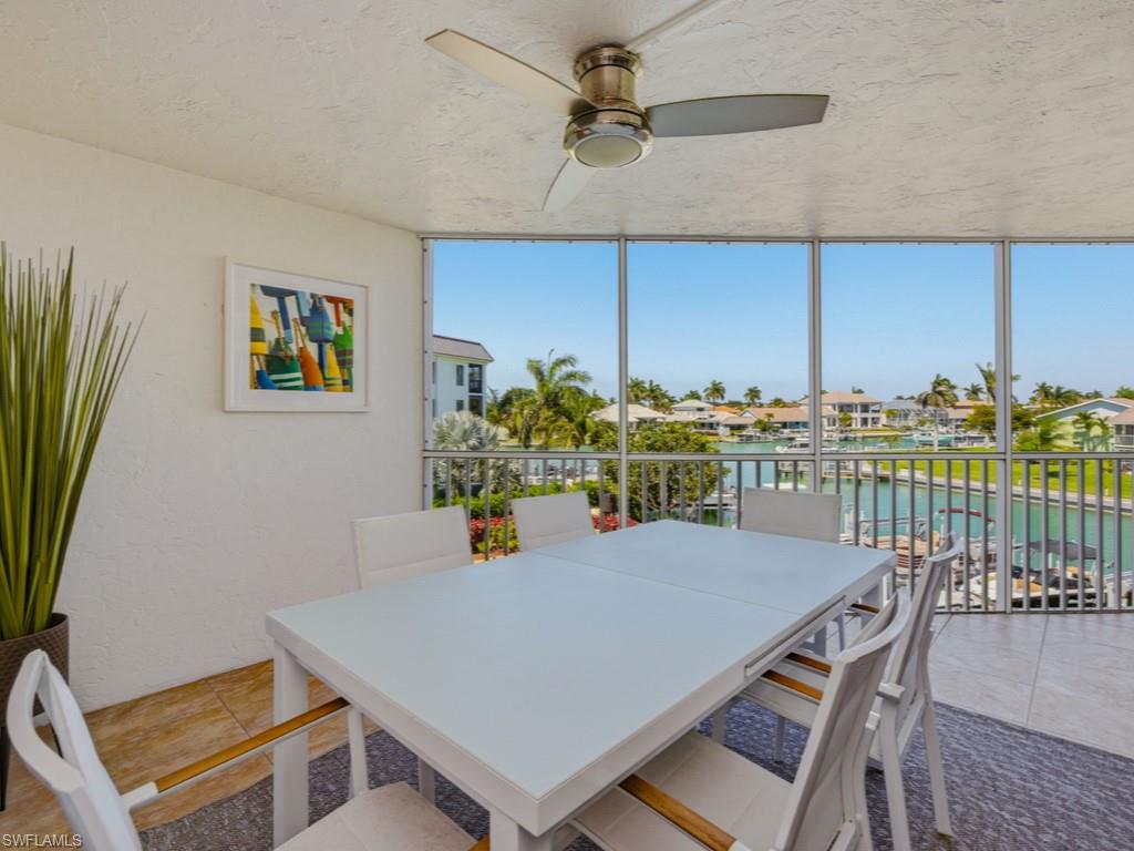 SUPER CLOSE TO THE BEACH! DOCK! 3 BEDROOMS! Beautifully maintained three-bedroom condo on the quiet end of a cul-de-sac near Marco’s desirable South Beach. Includes an assigned dock, extra storage and covered parking, plus intersecting canal views from the preferred south side of the building. The open floor plan offers wrap-around lanai access from multiple sliders, with space to dine and relax over the water. Upscale furnishings and neutral décor throughout. Updated kitchen with newer appliances, granite counters and generous storage. Approx. 1-year-old A/C and brand-new washer/dryer. All bedrooms feature plush bedding and a balcony. Recent updates include roof and exterior paint (2 years) and pool/decking/landscaping redone after Ian (no water the building from Ian). SIRS and Milestone inspections are complete, and the driveway has new pavers. Come see it and start your Marco lifestyle.