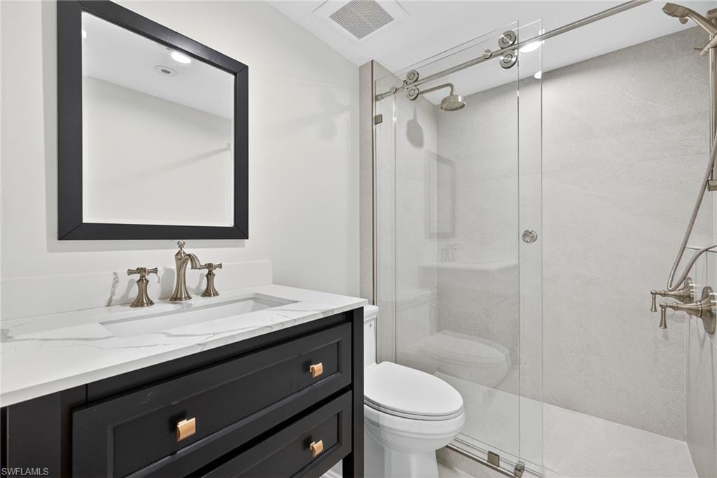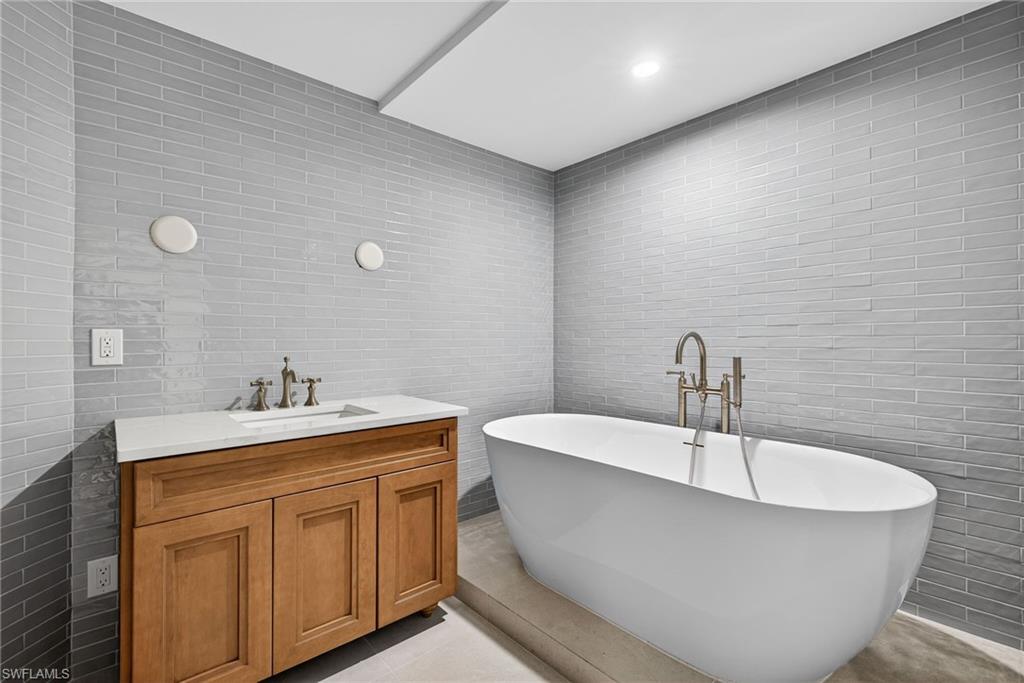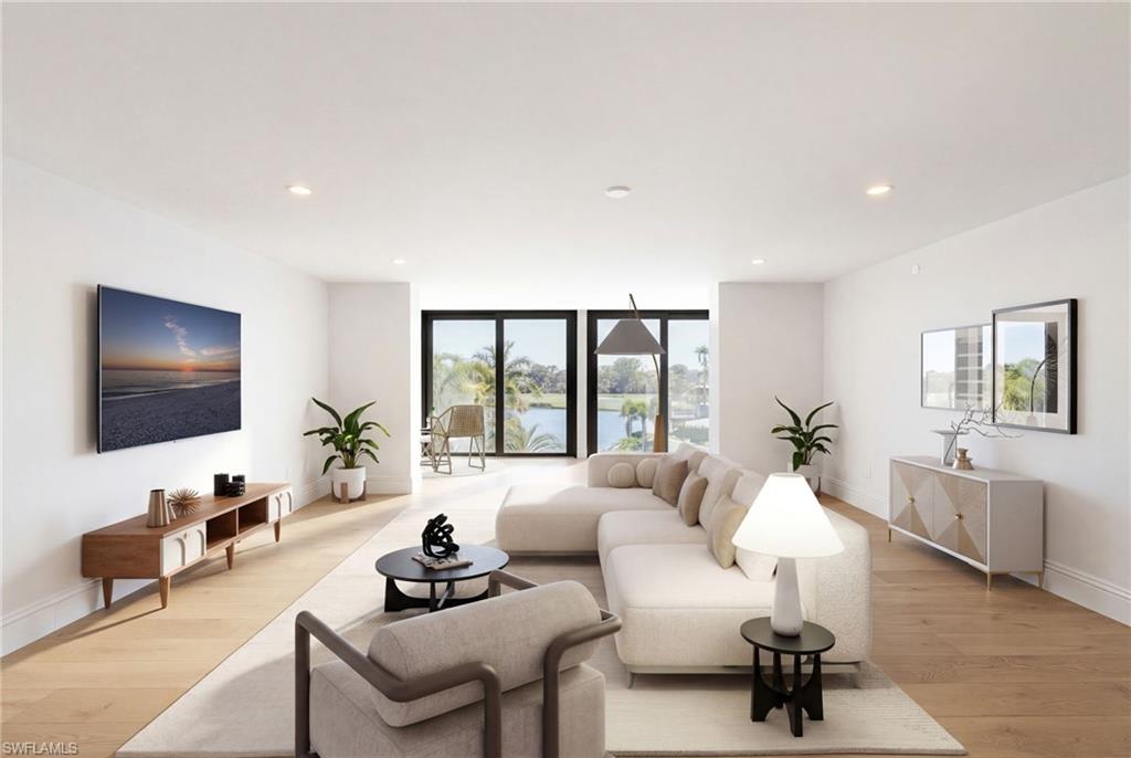 One or more photo(s) has been virtually staged, AI generated or rendered. Completely reimagined from the framing inward, this exceptional residence in Chateaumere at Pelican Bay offers a rare opportunity to own a fully rebuilt interior in one of Naples’ most desirable communities. Over $500,000 has been invested to create a modern coastal retreat with high-end finishes and upgraded infrastructure throughout. The renovation included full interior demolition, new drywall and insulation, rebuilt subfloor systems, and comprehensive mechanical, electrical, and plumbing updates. A SpacePak high-pressure HVAC system with new ductwork and whole-home PEX plumbing provide modern efficiency and reliability. The kitchen features Omega custom cabinetry with 1-inch doors, built-in appliances, and Pompeii Lincoln quartz countertops. DeChateau wood flooring runs throughout, complemented by large-format Italian porcelain tile. Bathrooms are fully rebuilt with tiled showers, Schluter waterproofing, and frameless glass enclosures. Additional highlights include 17 solid-core doors, LED lighting throughout, and a whole-home Sonos sound system. A turnkey, design-forward residence offering quality, comfort, and the best of the Pelican Bay lifestyle.