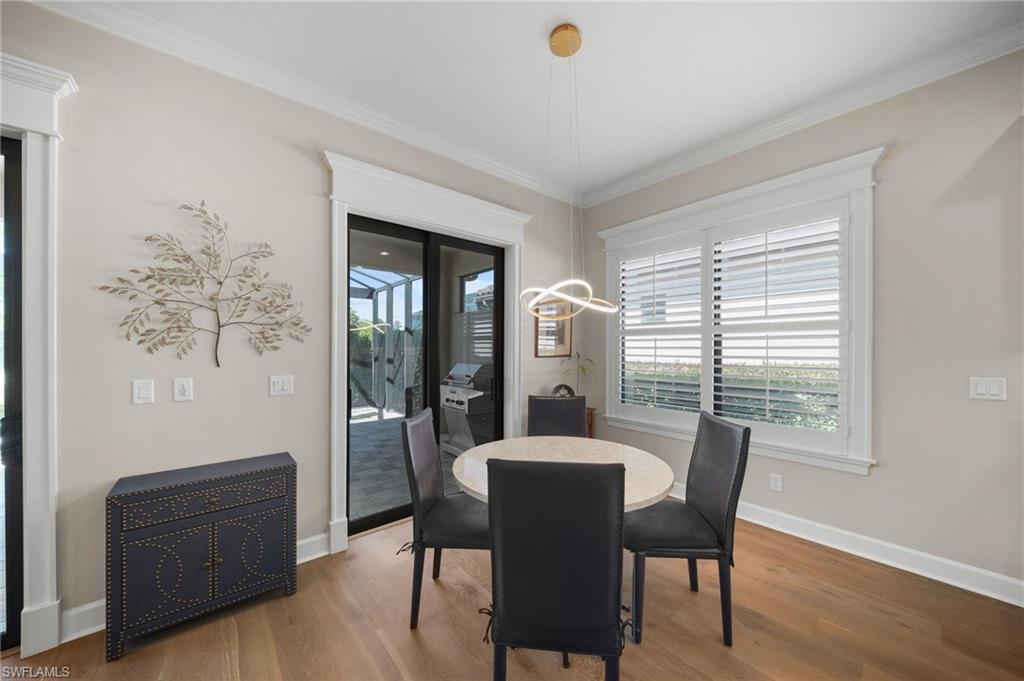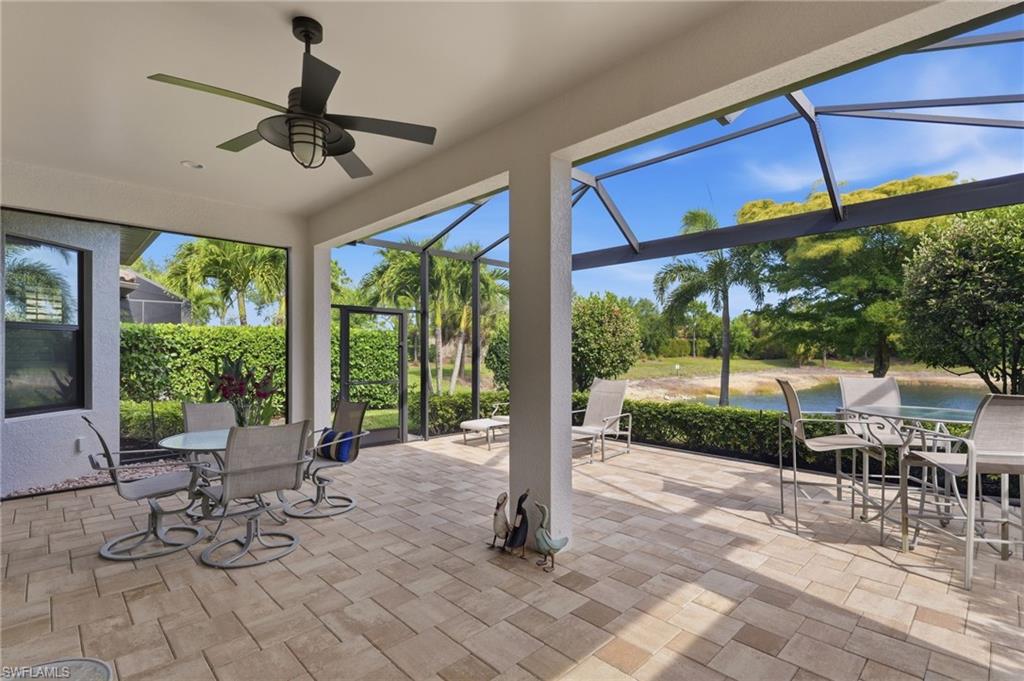 IT’S ALL ABOUT THE VIEW - LIVE A VACATION LIFESTYLE IN ESPLANADE! This highly upgraded and very well appointed “Farnese” is situated on a quiet cul-de-sac street overlooking the lake with no other homes across the way. Inside, you will find 2 en-suite bedrooms plus an additional powder room, den, and 2,100 sq ft of open concept living space. From the moment you walk in the door, you are greeted with rich glued down engineered wood floors that run throughout the entire home and two sliding glass doors that lead you to the covered lanai complimented with an extended screened lanai. Crown molding, plantation shutters, wainscoting, rich window detail molding, and upgraded door casings enhance the elegant feel of this quality built home. The kitchen features shaker style cabinetry, quartz countertops, and upgraded GE Cafe appliances including a GAS cooktop, wall oven, & wall convection microwave. The bathrooms feature top of the line tile, walk in showers with rain shower, upgraded cabinetry, quartz countertops, square sinks, and upgraded toilets. Other fine appointments include: HURRICANE IMPACT WINDOWS & DOORS; extended two car garage (20’x24’); solid core interior doors; plantation shutters on all windows; closet built-ins; extra widen driveway; glass front door with matching sidelight; outdoor kitchen pre-plumb; future pool prewire; freshly painted exterior; and more! This property comes with a Club/Sports Membership, granting full access to all the amenities of Esplanade Golf & Country Club (limited golf opportunities all year round!). These include the resort pool with cabanas and a poolside Bahama Bar, tennis and pickleball courts, bocce, a Koquina Day Spa, a fitness center, and a dog park. There are also 14 miles of trails and an 18-hole private golf course. On-site dining options include a restaurant, bar, wine tasting room, and a Starbucks-style café. The total quarterly fee of just $2,577 include property landscaping maintenance and full access to all the resort-style living amenities at Esplanade. COMING SOON TO ESPLANADE (2026): Fully renovated and expanded poolside Bahama Bar; expanded outdoor bar at the Barrel House; expanded golf practice range; and an AIR CONDITIONED INDOOR PICKLEBALL COMPLEX with four indoor courts.