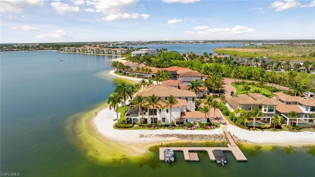One or more photo(s) has been virtually staged, AI generated or rendered. One or more photo(s) has been virtually staged, AI generated or rendered. Experience elevated waterfront living in this spectacular corner-lot residence in Costa Amalfi at Miromar Lakes. Showcasing stunning wrap-around views of the lake and sandy beach, this home is perfectly positioned to capture breathtaking sunsets with its coveted southwest exposure. The spacious floor plan features a luxurious first-floor primary suite, an open-concept kitchen and living area with high-end finishes, a sophisticated wet bar, and a private guest suite with en-suite bath. Upstairs, accessible by elevator, you’ll find two additional en-suite bedrooms, a versatile loft, and an expansive balcony overlooking the water. Designed for both comfort and entertaining, this home offers the best of indoor-outdoor Florida living. Located within the award-winning Miromar Lakes Beach & Golf Club, residents enjoy 700 acres of freshwater lakes, a 10,000-square-foot zero-entry infinity pool, three miles of private white-sand beach, boating, tennis, pickleball, spa, fitness center, and waterfront dining. A rare opportunity to own a stunning piece of paradise in one of Southwest Florida’s most sought-after luxury communities.