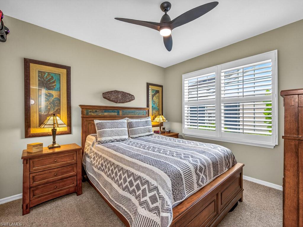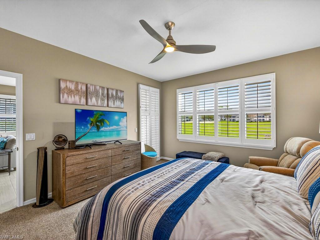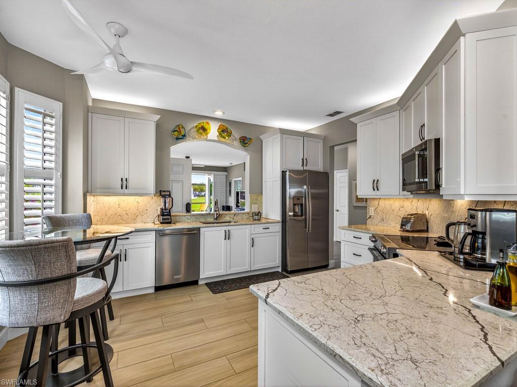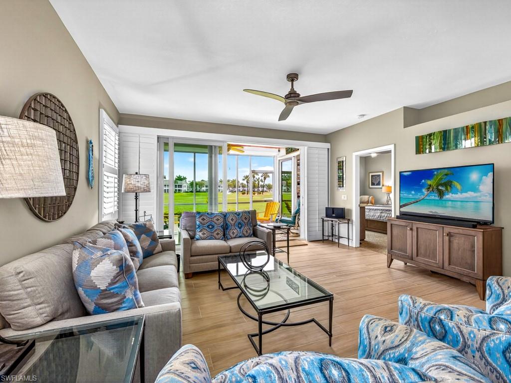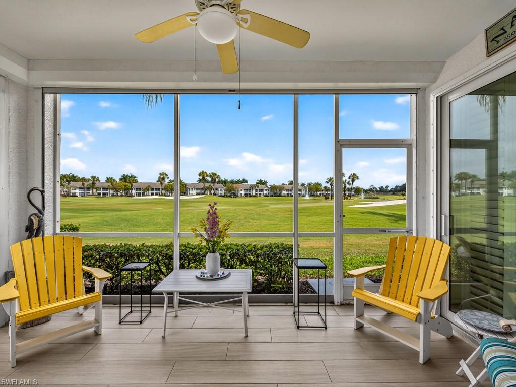Welcome to this extensively updated first-floor END UNIT in Wedgewood at The Strand. This unit is a rare find. Hurricane rated windows, sliders and electric storm shutters on the lanai. The roofs in Wedgewood are newer for peace of mind. This unique offering boasts a clean, contemporary and neutral palate that is evident throughout. The kitchen cabinets have all been replaced. The primary shower has been nicely updated. Both bathroom vanities are new, and complement the kitchen's fresh look, with newer stainless steel appliances and light toned granite counters. There is tile flooring throughout the main living areas and on the lanai. Classic white plantation shutters have been installed on all of the homes windows. Enjoy an active country club lifestyle, complete with 3 beautifully maintained 9-hole golf courses, tennis, pickleball, all new state of the art fitness center, an impressive pool with lap lanes, newer bocce courts, as well as a recently added croquet center and Island Bar for residents to enjoy. The recently renovated main clubhouse next door to the Jr. Olympic pool houses two upscale restaurants: Fine dining on the upper level, and the Tavern 59 restaurant opens into botanical garden/outdoor wedding venue location. The Strand is conveniently located within close proximity to many dining/shopping options, and the famous sugar sand beaches of the Gulf are just a straight shot down Immokalee Rd.