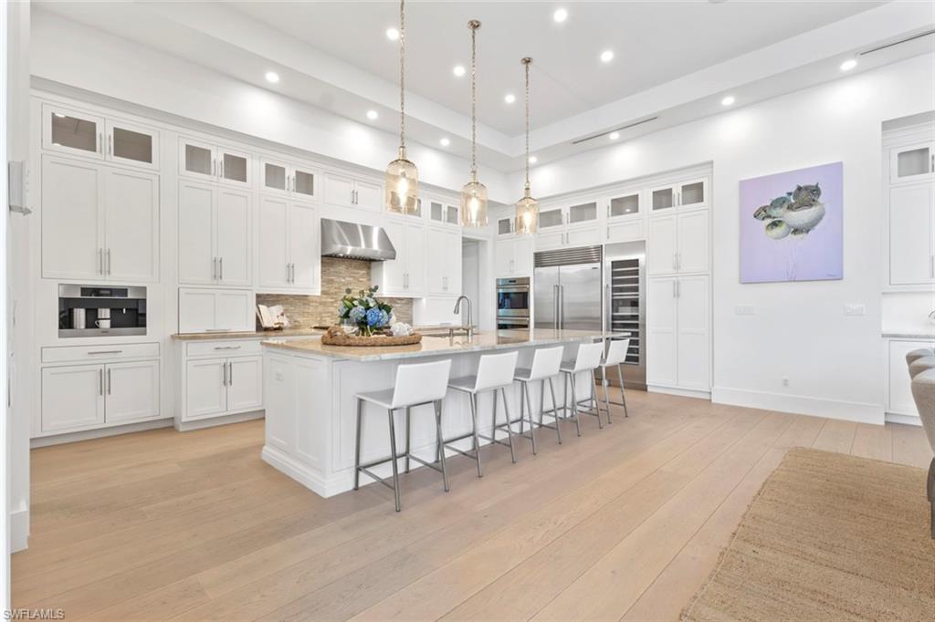 A thoughtfully designed waterfront residence created for comfortable everyday living and memorable entertaining. This like-new home offers 4 bedrooms plus a den, 3 full bathrooms, and a half bath, with a functional and flexible layout that easily adapts to a variety of lifestyles. The outdoor living space is a true highlight, featuring an infinity-edge lap pool, expansive composite decking, and a spacious covered lanai designed for year-round enjoyment. The fully equipped outdoor kitchen includes a Wolf grill, beverage refrigerator, and ice maker, while the adjacent den opens with sliding glass doors on two sides, creating an ideal space for relaxing or hosting guests. Boating enthusiasts will appreciate the private dock with a 14,000-lb lift and dedicated gear storage, making access to the water easy. Inside, the home is clean, refined, and filled with natural light, enhanced by an abundance of transom windows throughout. The kitchen is outfitted with Sub-Zero and Wolf appliances along with a wine refrigerator, and upgrades such as motorized shades add everyday convenience and comfort to the living spaces. The den offers flexibility as an additional living area, clubroom, or private office. Additional features include a 3-car garage with organized fishing gear closet, a fully decked attic for extra storage, and a portable generator. With direct Gulf access and no bridges, this property is ideal for boaters who want the convenience of being just minutes from the restaurants, shops, and vibrant lifestyle of downtown.