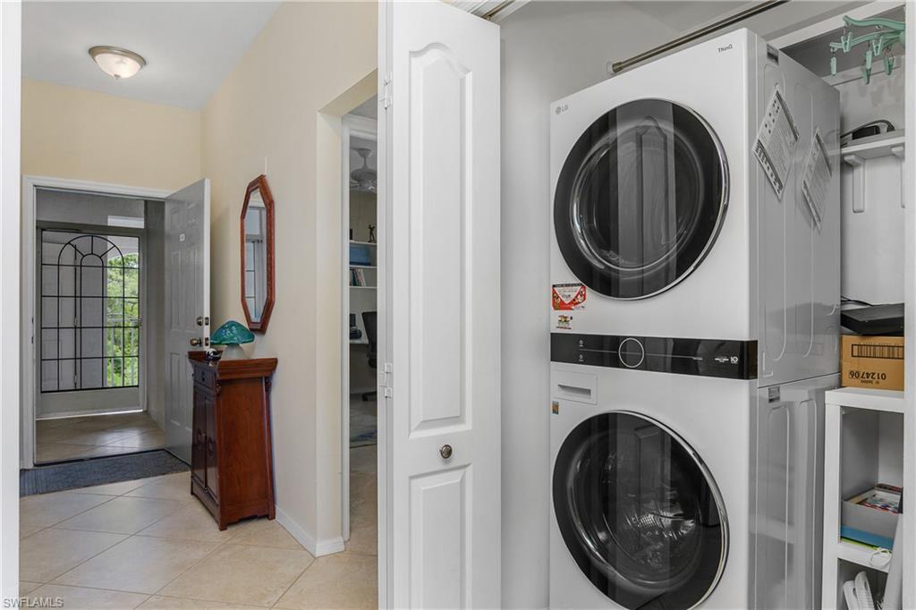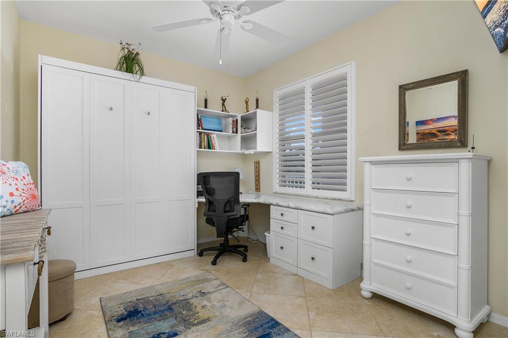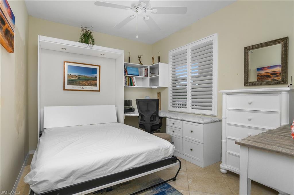 BUNDLED GOLF MEMBERSHIP INCLUDED and PRICED TO SELL! This pristine top floor TURNKEY 2 bed/2 bath condo has everything you need to move right in. Sip your favorite evening beverage on your western-facing tiled lanai, overlooking the picturesque par-3 7th hole. This meticulously maintained property has been heavily updated - Quartz Kitchen and bathroom counters, stainless appliances, plantation shutters, tile throughout, and well-appointed furnishings. The guest bedroom includes a Murphy bed for when your guests come into town, and a built-in desk to get your work done when they’re not. Even the laundry closet has been redesigned to allow for maximum storage efficiency. Pickleball & Tennis courts, as well as a community pool, are only steps away from the condo. In addition to an 18-hole championship golf course, Naples Heritage Golf & Country Club’s long list of amenities include a full-service restaurant and bar, poolside cabana bar, fitness center with massage treatment rooms, tennis & pickleball courts, and much more. Don't miss your opportunity to own this incredible condo, it's stunning view, and all the amenities that come with it!