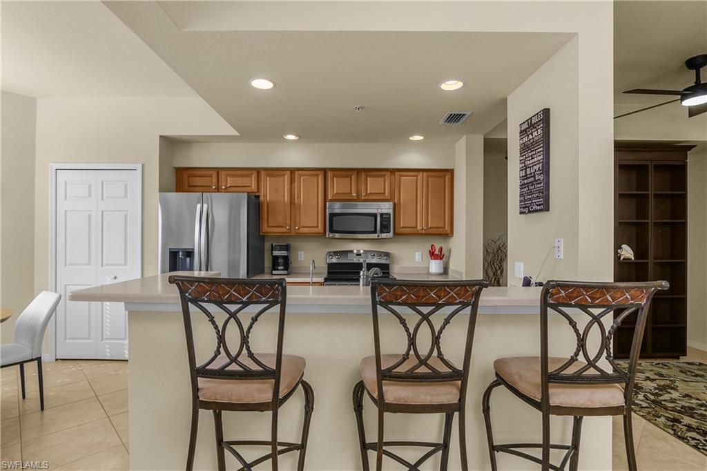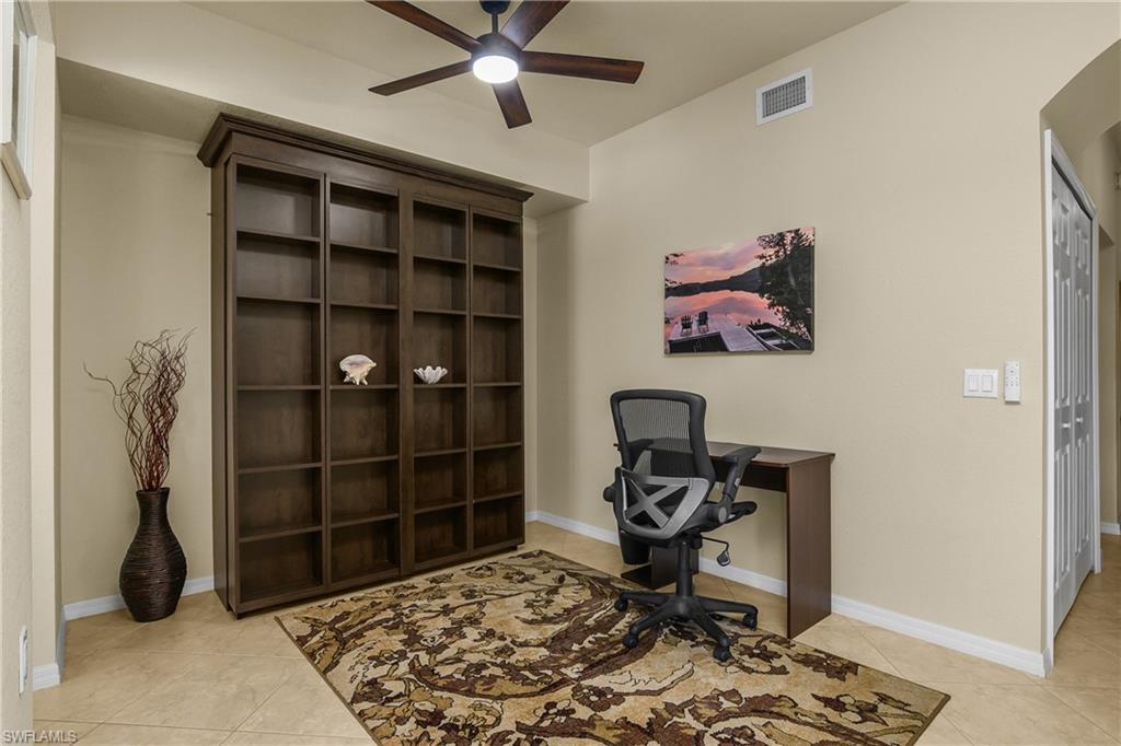Bundled golf membership included. Enjoy lake, golf course, and preserve views overlooking Cypress 15 from this turnkey-furnished Brookside residence at Heritage Bay Golf & Country Club, offering a sought-after Naples lifestyle in a gated, amenity-rich community. This 2-bedroom, 2-bath condo with a flexible office area features a comfortable layout, abundant natural light, and a private lanai designed to capture the surrounding scenery. The tiled lanai provides an ideal setting to take in peaceful water views and the surrounding golf course, perfect for morning coffee or relaxing at the end of the day. Inside, the open-concept living and dining areas connect seamlessly to the outdoor space, creating an easy flow for everyday living or hosting guests. The kitchen is equipped with newer LG stainless steel appliances, including a refrigerator and dishwasher (2025), along with a new heavy-duty stainless steel garbage disposal. The adjacent laundry area features a GE Profile washer and dryer (2024). Water quality enhancements include a reverse osmosis system for drinking water and a whole-house filtration system. The office area offers a flexible workspace or guest accommodation with a queen-size Murphy bed. The primary suite includes a king-size bed with a high-quality mattress and an en-suite bath featuring a newly renovated shower. Additional improvements include new ceiling fans throughout and a screened front entry, which allows for natural light and cross-breezes, enhancing the indoor-outdoor feel of the home. Major systems have been maintained, with the air conditioning system replaced in 2019 and serviced annually, and a hot water heater installed in 2018. A radon mitigation system provides peace of mind. Located near one of the community’s satellite pools, this residence provides access to Heritage Bay’s extensive amenities, including 27 holes of golf, tennis, pickleball, a fitness center, resort-style pool, bocce courts, dining venues, and a full calendar of activities, all included with ownership. This property presents an ideal opportunity for those seeking a seasonal retreat, full-time residence, or investment property in Southwest Florida.