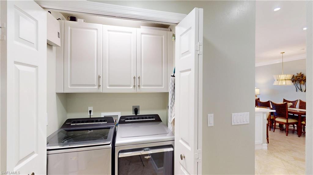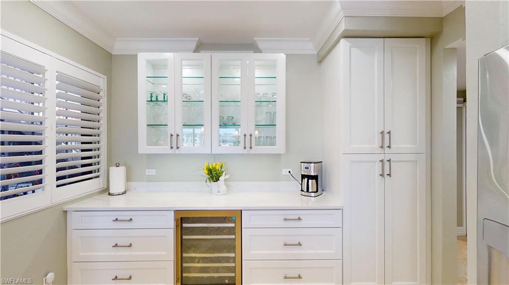 Paradise is calling from this stunning 3-bedroom, 2-bath waterfront condo on Marco Island! Experience breathtaking daily sunsets from your first-floor retreat complete with the rare convenience of a private 1-car garage and deeded boat lift. Beautifully and tastefully remodeled, this coastal-inspired residence is light, bright, and move-in ready. Enjoy tile flooring throughout, an open-concept kitchen featuring quartz countertops, a beverage center with wine fridge, and the ease of a full-size washer and dryer. Electric storm shutters provide added peace of mind. Wake up each morning and step right outside your door to catch vibrant sunrises painting the sky--offering the best of both worlds, sunrise and sunset views. Located within a peaceful, gated community, residents enjoy resort-style amenities including a renovated pool and clubhouse, spa, sauna, tennis with pickleball courts and a newly added bocce ball--perfect for both relaxation and an active lifestyle. Take tranquil daily walks or hop on your bike and explore all that Marco Island has to offer, including nearby Resident's Beach and local favorites. Pet-friendly with approval, this property truly checks all the boxes. A waterfront 3-bedroom condo with a garage, boat lift, and pet approval is a rare find on Marco Island, don't miss this exceptional opportunity!