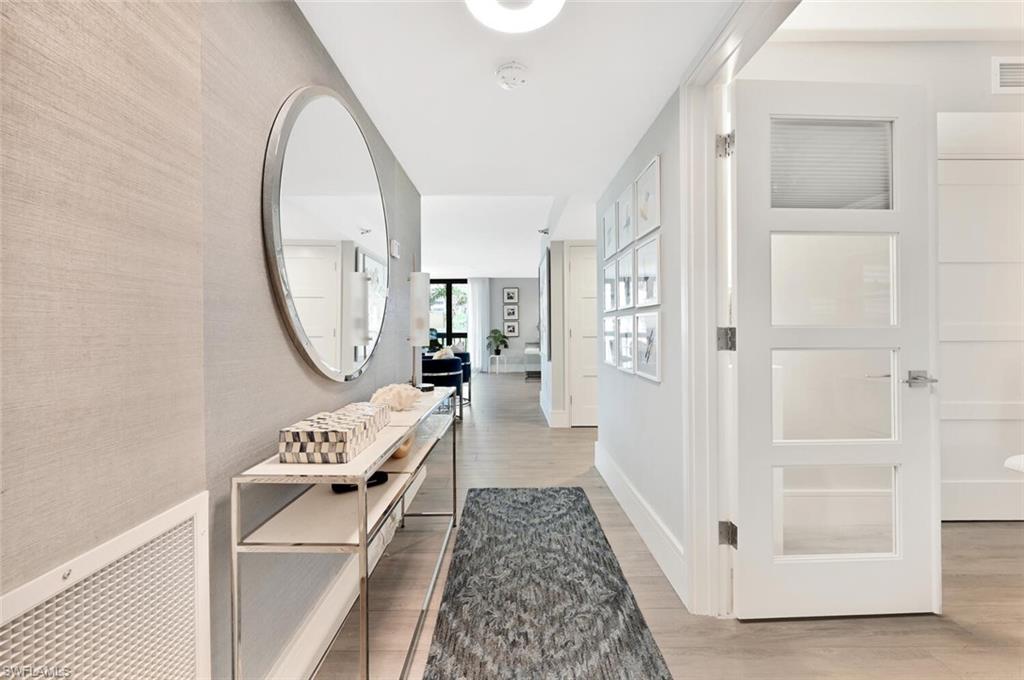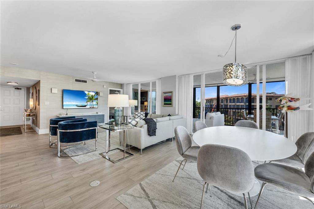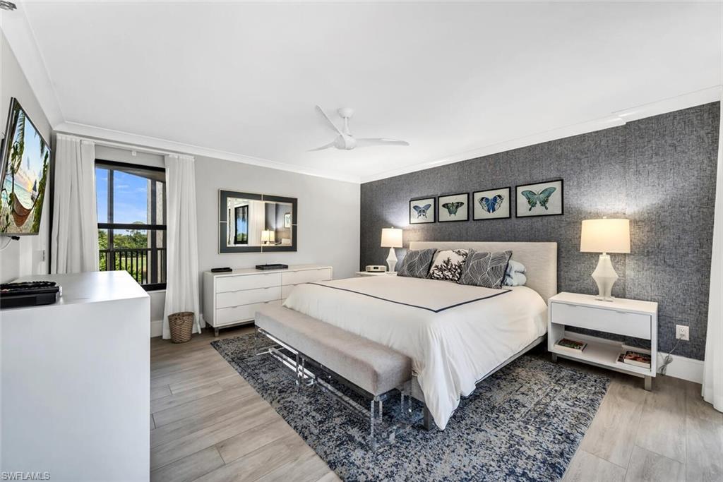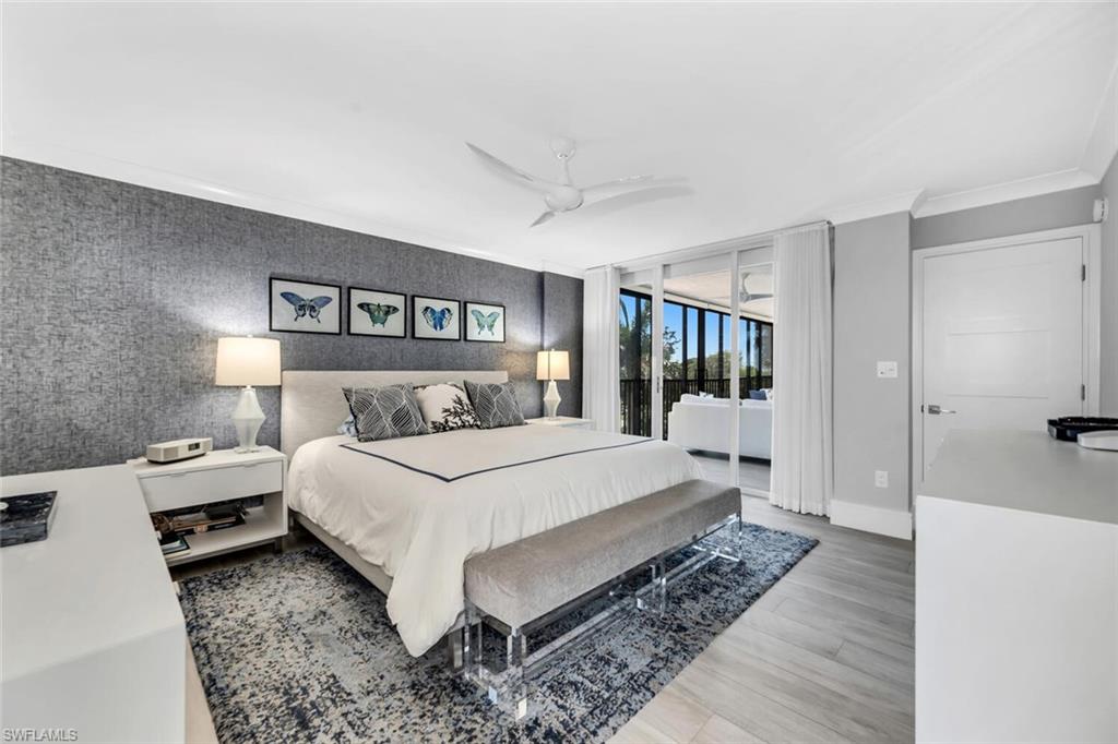 Meticulously updated and furnished Chateaumere Royale condominium designed by DAVID FRUSCIONE Republic of Design. Just steps from The Commons, beach transportation and renowned Tennis Facility. This contemporary residence featuring wood-look porcelain flooring, and a neutral color palette that creates a bright and airy ambiance. The sleek kitchen offers Fisher & Paykel stainless steel appliances and Induction cooktop, Eurocraft custom European cabinetry, and quartz countertops. The two living areas provide ample space for entertaining guests. Large impact resistant windows and doors w/remote operated blinds. Both master suite w/walk-in closet and an en-suite bathroom & 2nd bedroom w/murphy bed have been tastefully renovated. Amenities include 3 swimming pools, a fitness center, tennis courts, and exclusive beach access w/ chair and umbrella service. Conveniently located, this property provides easy access to upscale shopping, fine dining establishments, and cultural attractions. The nearby Pelican Bay Golf Club offers an elite golfing experience. Experience the epitome of luxury, sophistication, and an unmatched lifestyle within the esteemed Pelican Bay community.