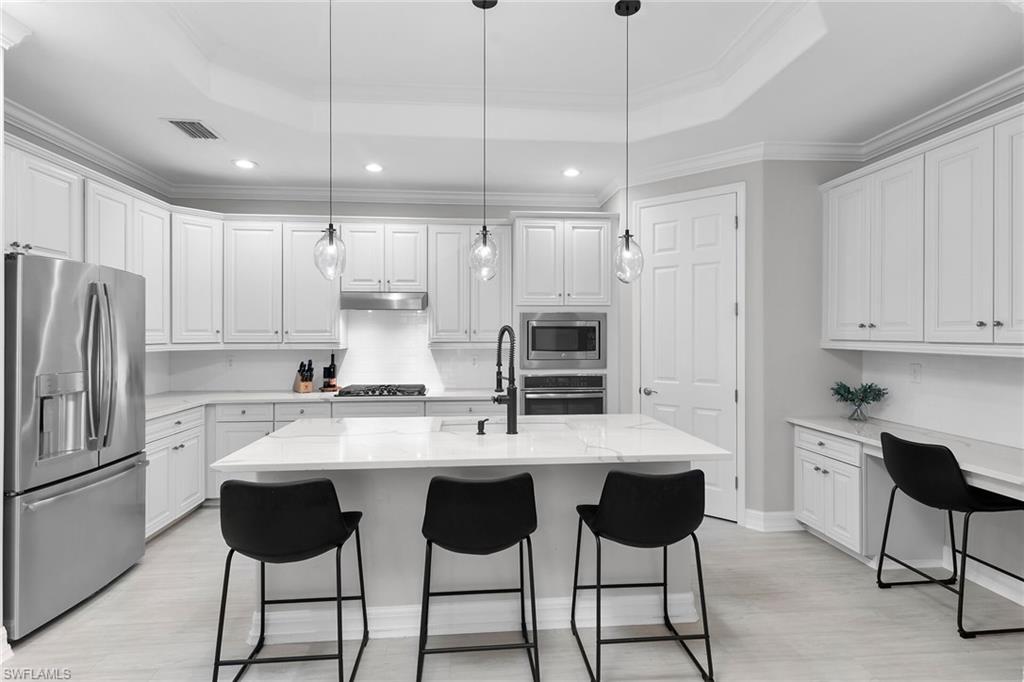 MUST SEE – PRICED TO SELL!! CDD Capital balance paid in Full! BEAUTIFUL 4 BEDROOM, 3 FULL BATH RANCH HOME, RENOVATED IN 2022 WITH NEW FLOORING THROUGHOUT THE ENTIRE HOME. NEW QUARTZ COUNTERTOPS, NEW BACKSPLASH, AND A NEW POCKET SLIDING GLASS DOOR LEADING TO THE LANAI. THE LANAI FEATURES NEW NO-SEE-UM SCREENS, AN AWNING, AND A BEAUTIFUL OUTDOOR KITCHEN COMPLETE WITH DOUBLE EXHAUST FAN, BLAZE INFRARED BURNER, ICE MAKER, AND PREMIUM APPLIANCES (OVER $8,000 IN UPGRADES). NEWER POOL/SPA HEATER AND PUMP FOR THE SALTWATER POOL. NEWER WASHER AND DRYER. LANDSCAPE LIGHTING SURROUNDS THE HOME, SHOWCASING THE UPGRADED AND METICULOUSLY MAINTAINED LANDSCAPING. UNDERMOUNT LIGHTING IN THE KITCHEN. SWAT BUG REPELLENT SYSTEM. MYQ SMART HOME ACCESS SYSTEM TO CONTROL AND MONITOR YOUR GARAGE DOOR REMOTELY. LOCATED IN THE PRESTIGIOUS COMMUNITY OF MILLBROOK WITHIN THE GATED, RESORT-STYLE COMMUNITY OF FIDDLER’S CREEK. RESIDENTS ENJOY A RESORT-STYLE POOL, GATOR GRILL DINING, FITNESS CENTER, TENNIS, 10 PICKLEBALL COURTS, SPA SERVICES, AND A FULL SOCIAL CALENDAR. OPTIONAL MEMBERSHIPS AVAILABLE FOR THE CHAMPIONSHIP GOLF COURSE, MARINA, AND PRIVATE BEACH CLUB.