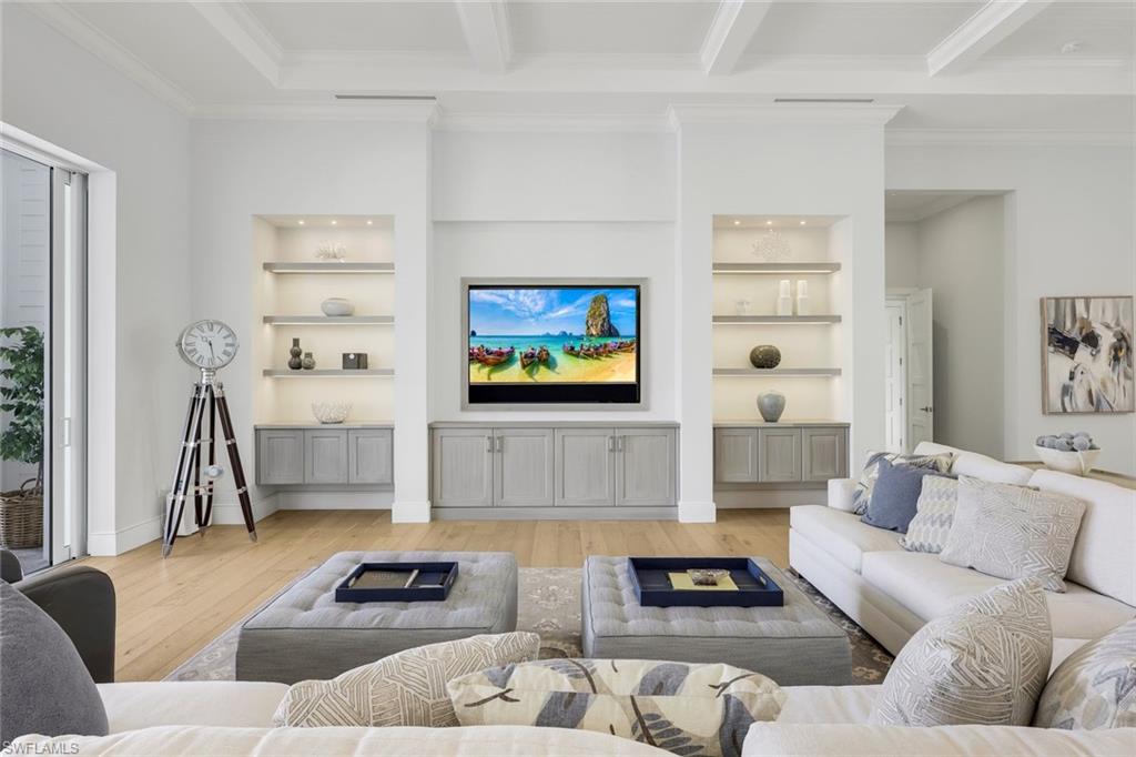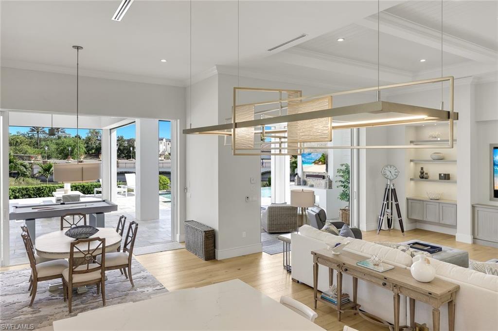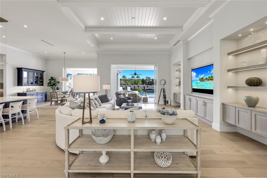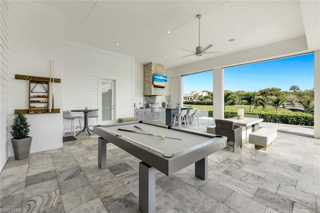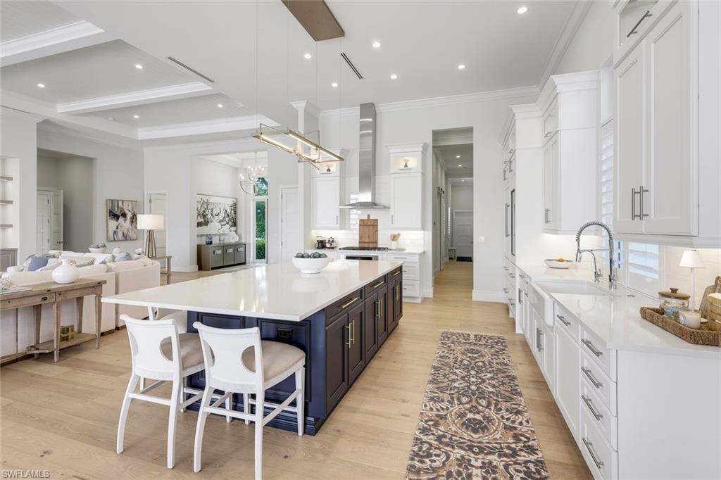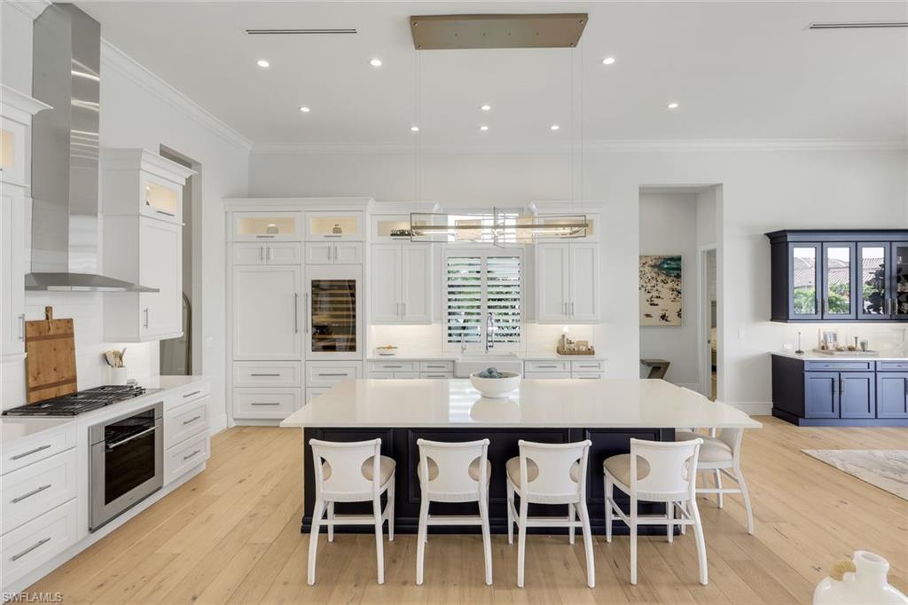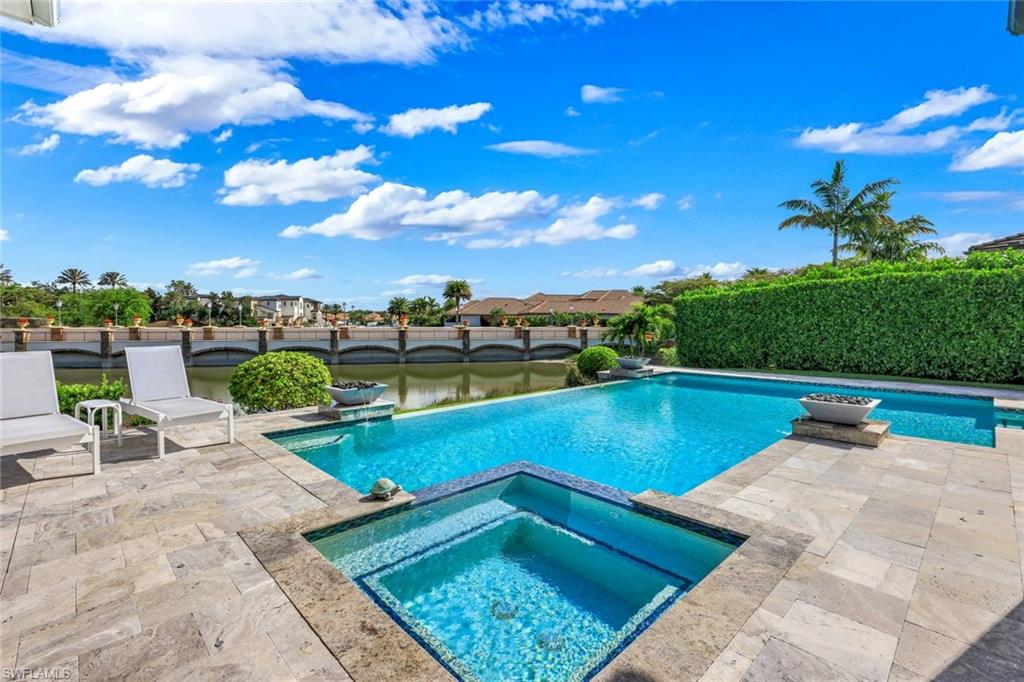 Immediate golf membership available—an exceptional opportunity to experience the prestigious lifestyle of Talis Park from day one. Welcome to a truly remarkable estate in the coveted Seneca neighborhood, where refined coastal elegance meets some of the most enchanting panoramic views in the community. This beautifully appointed 4-bedroom, 4 full bath, and 1 half bath residence is perfectly positioned to capture sweeping lake, golf course, and illuminated ridge views—creating a stunning, ever-changing backdrop for everyday living. The outdoor living space is nothing short of extraordinary—an expansive, thoughtfully designed lanai that truly lives like a private resort. Anchored by one of the largest heated saltwater pools in Talis Park, the space features an infinity-edge design, integrated spa, and striking gas fire features that create an unforgettable ambiance both day and night. The fully equipped outdoor kitchen has been elevated with a new grill and refrigerator, offering a seamless and stylish setup for hosting. With generous lounge and dining areas, this lanai effortlessly accommodates everything from intimate evenings to large-scale entertaining, all set against a breathtaking natural backdrop. Wide-open sliders create a seamless transition between indoor and outdoor living, allowing the main living areas to flow beautifully into this exceptional space. Inside, the home exudes a sophisticated coastal aesthetic with rich wood flooring, designer tray ceilings, and integrated surround sound throughout. The open-concept great room flows into a dedicated dining space with its own sliding glass doors, enhancing natural light and connection to the outdoors. At the heart of the home, the chef’s kitchen is a true statement—featuring a large center island, high-end Wolf appliances, gas cooktop, designer refrigerator, farmhouse sink, and elevated finishes that blend style with function. The primary suite is a serene retreat, highlighted by a striking vaulted ceiling and direct lanai access. The spa-like bath showcases an expansive walk-in shower with no tub, offering a clean, modern aesthetic. Each guest bedroom features its own en-suite bath, ensuring comfort and privacy, while a well-appointed pool bath adds convenience for outdoor living. Additional highlights include a durable metal roof, a spacious three-car garage, and a beautifully paved driveway that enhances the home’s curb appeal. This is luxury living at its finest in one of Naples’ most prestigious communities—where impeccable design, breathtaking views, and exceptional indoor-outdoor living come together to create an extraordinary lifestyle.