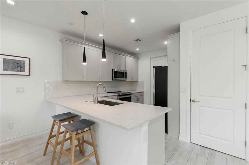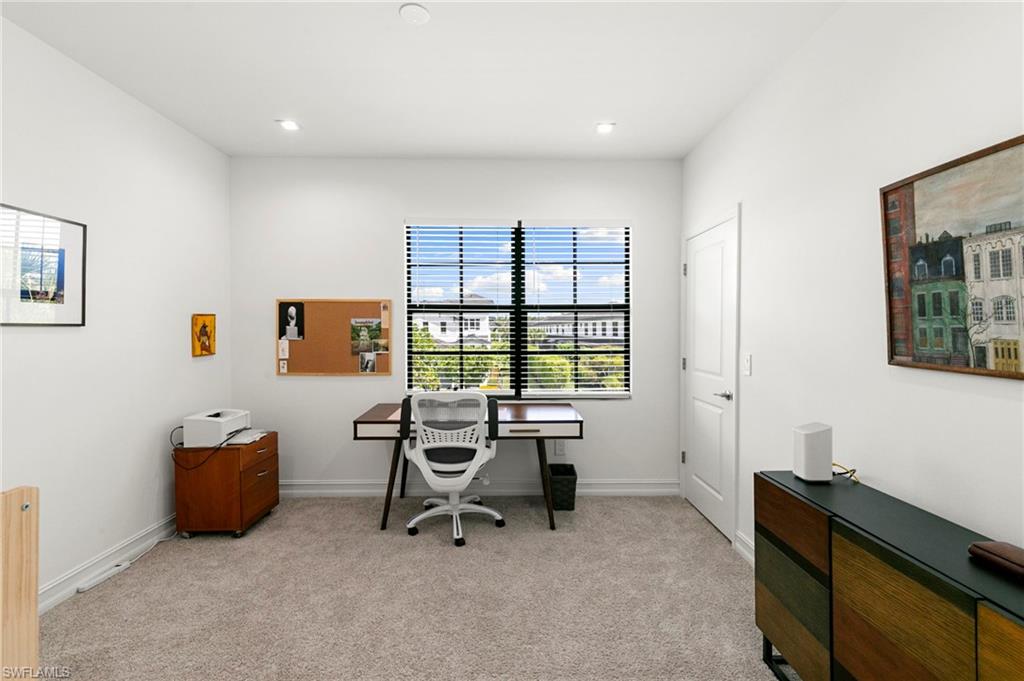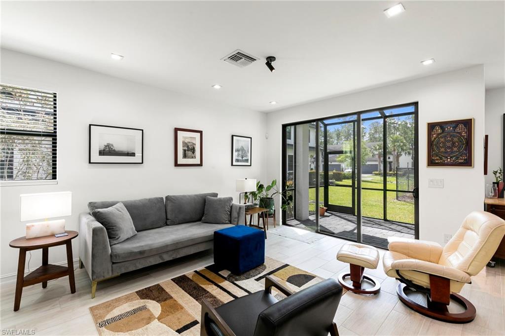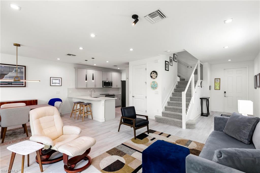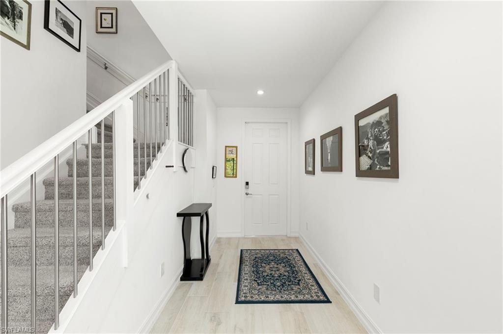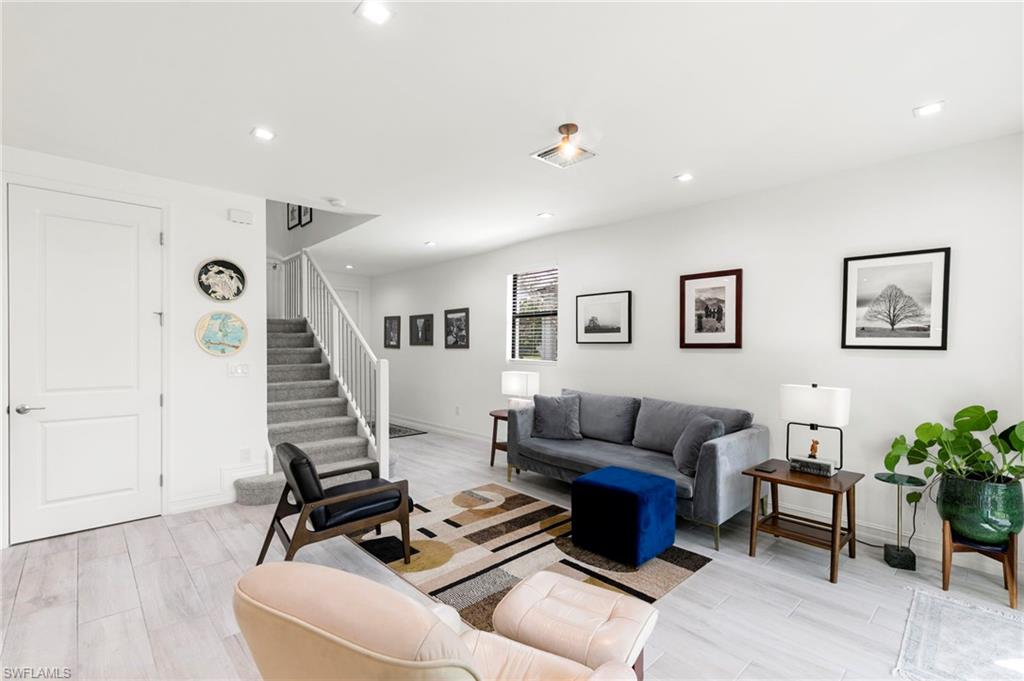 Perfectly positioned in the highly desirable North Naples area, this gently lived in 3-bedroom, 2.5-bath END UNIT townhome offers a seamless blend of style, comfort, and functionality. The open-concept floor plan is enhanced by neutral tones, tile flooring, and abundant natural light, creating a bright and inviting living space. The kitchen features upgraded countertops, modern appliances, and matching cabinetry that continues throughout the home, complemented by additional recessed lighting on both levels. Impact windows and doors provide peace of mind, energy efficiency, and security. Upstairs, you’ll find all three bedrooms, each with walk-in closets and ceiling fans. The primary suite and guest baths are tastefully updated, including a frameless glass shower door. Stainless steel stair spindles and plush, high-end carpet padding add a touch of luxury as you transition to the second floor. Enjoy the privacy with preserve views and no future construction behind the home. This property is ideal for a full-time residence, seasonal retreat, or investment property. Additional highlights include internet, cable, and WiFi included in the HOA, access to A+ rated schools, flood zone X (no flood insurance required), less than 30 minutes to RSW Airport, 15 minutes to Naples beaches & Mercato, minutes from grocery stores, and dining!